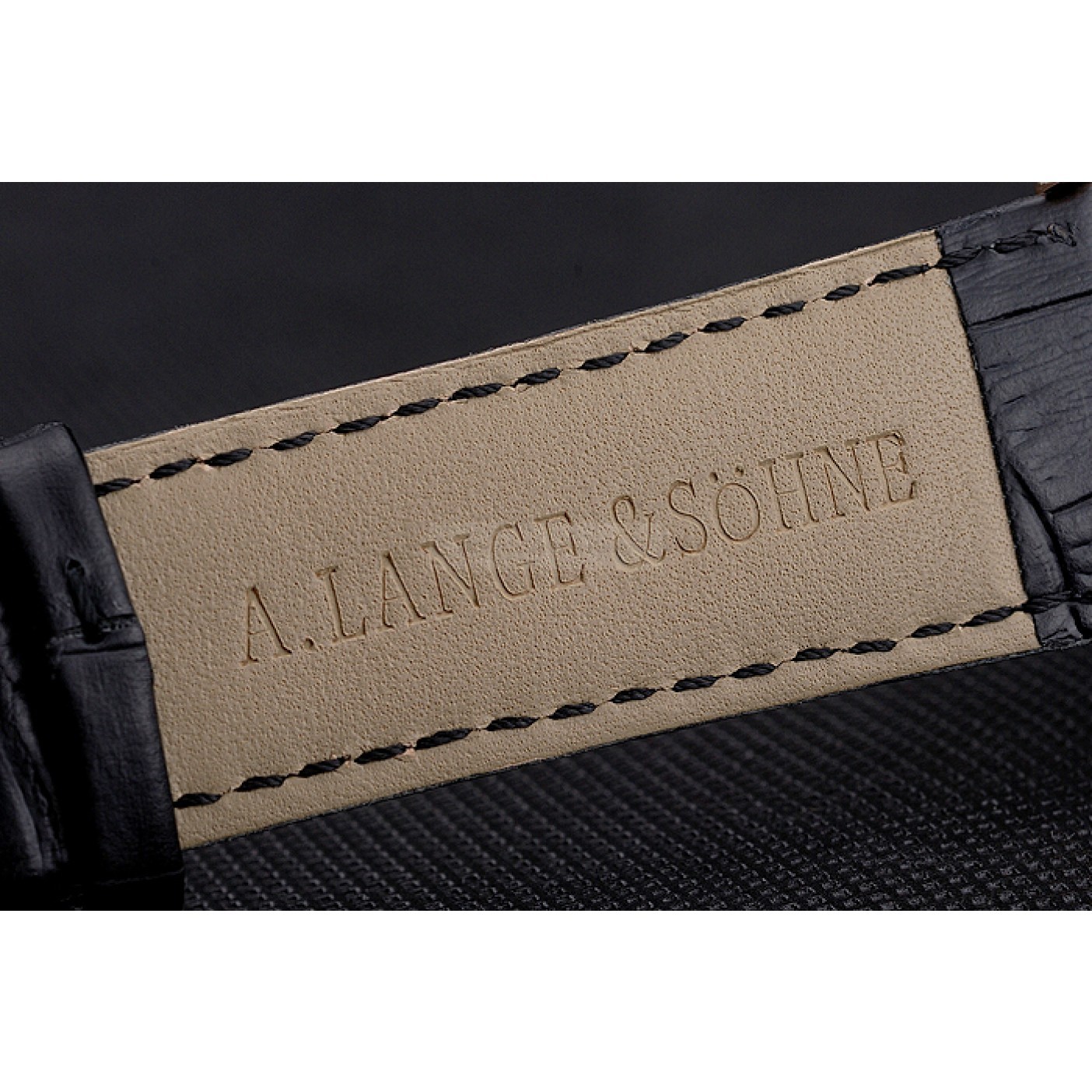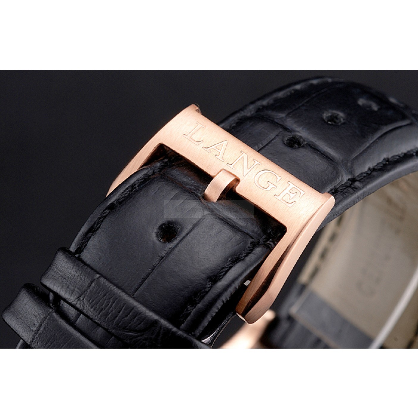 Bracelet A. Lange & Sohne heat embossed black crocodile leather strap with Lange engraved 18k rose-gold plated hook-buckle clasp