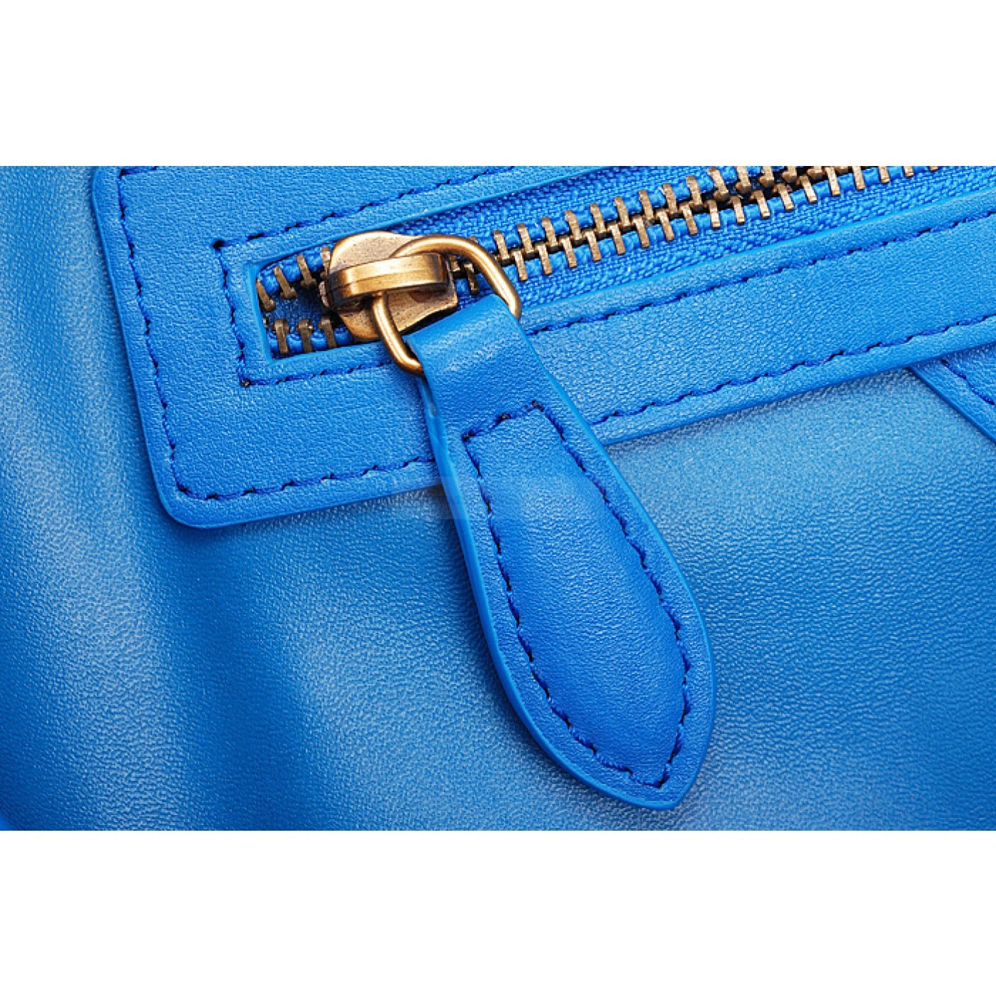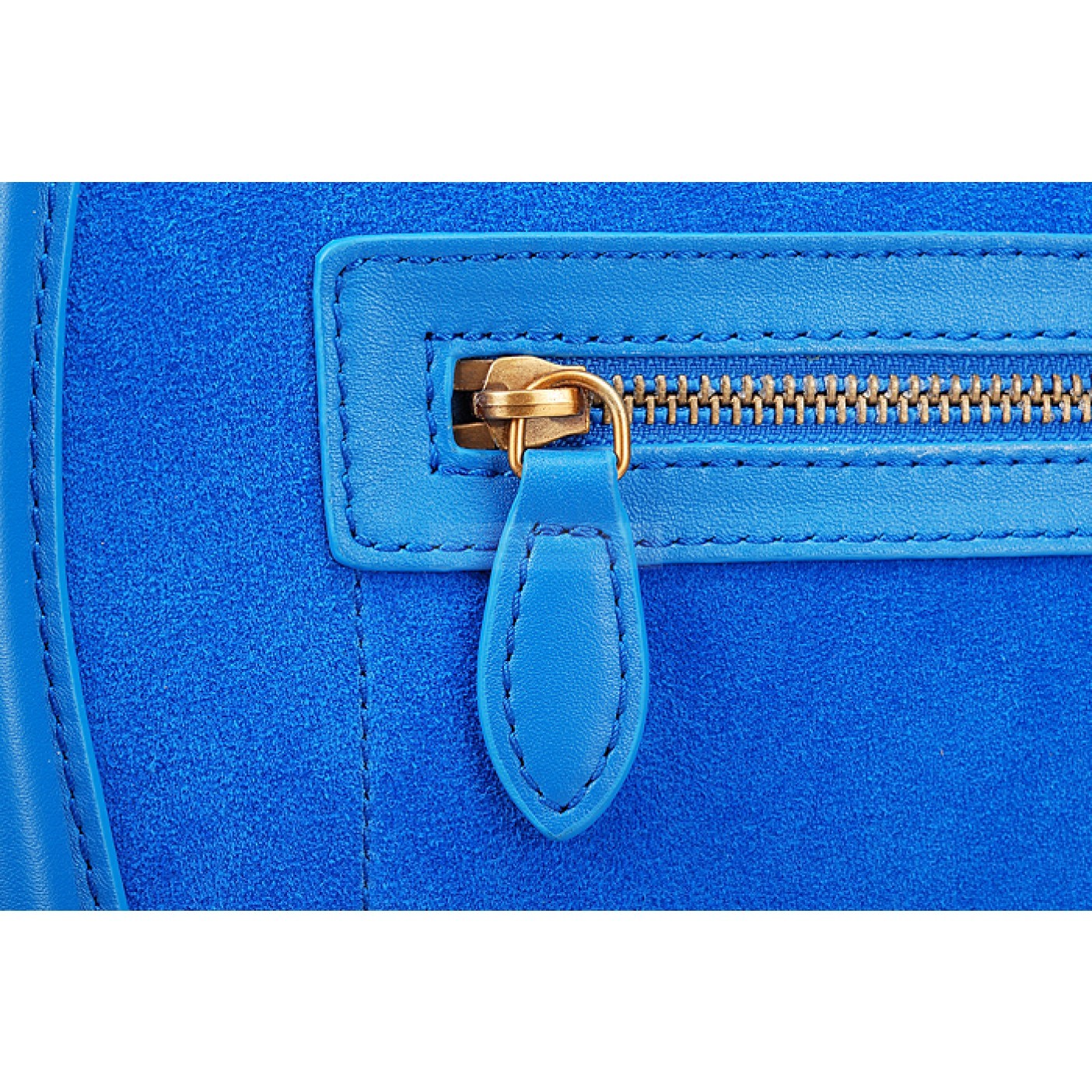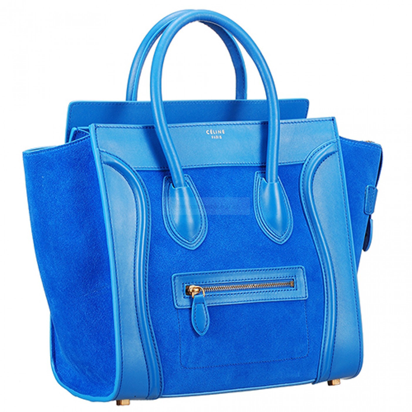 Description Blue suede leather provides an attractive touch to the calfskin leather exterior of this city bag