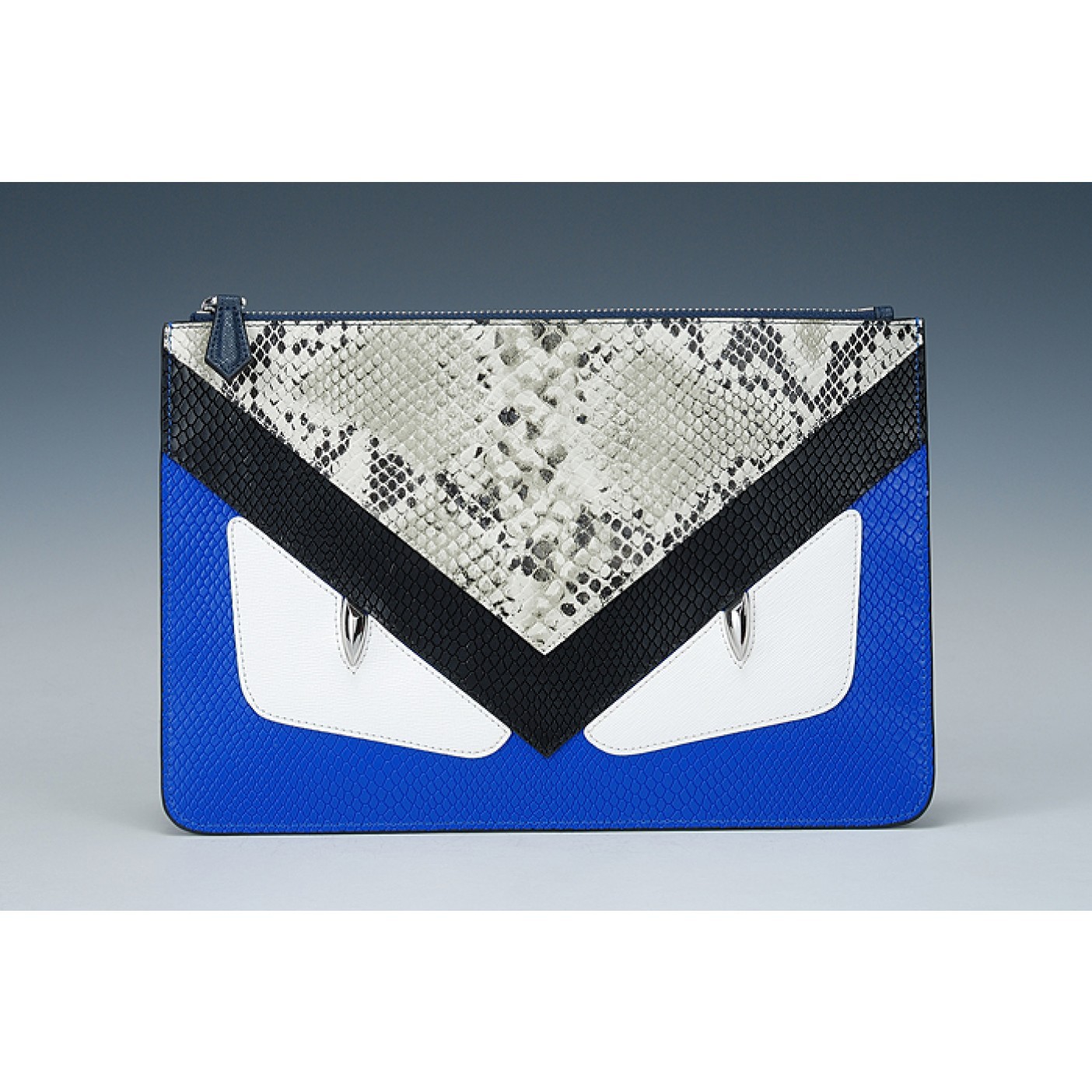 Fendi Bag Bugs Blue And Elaphe Leather Flat Pouch 18927337