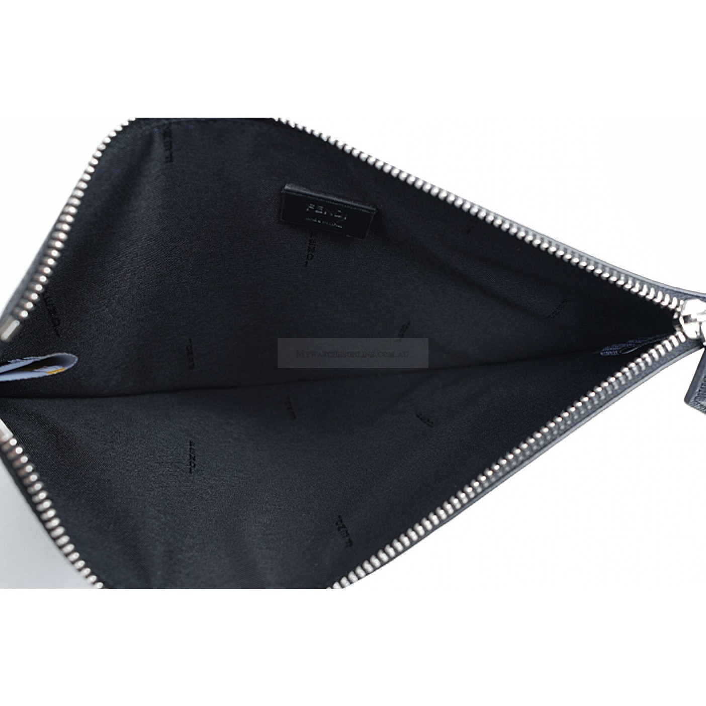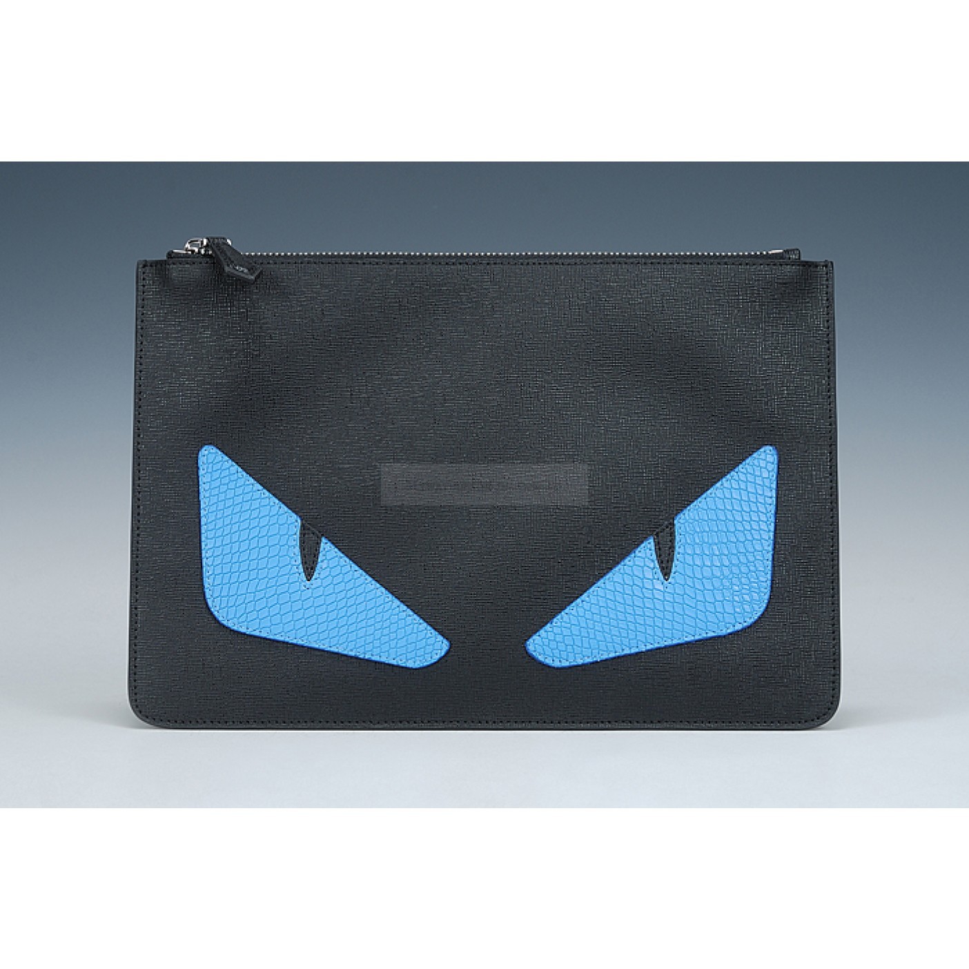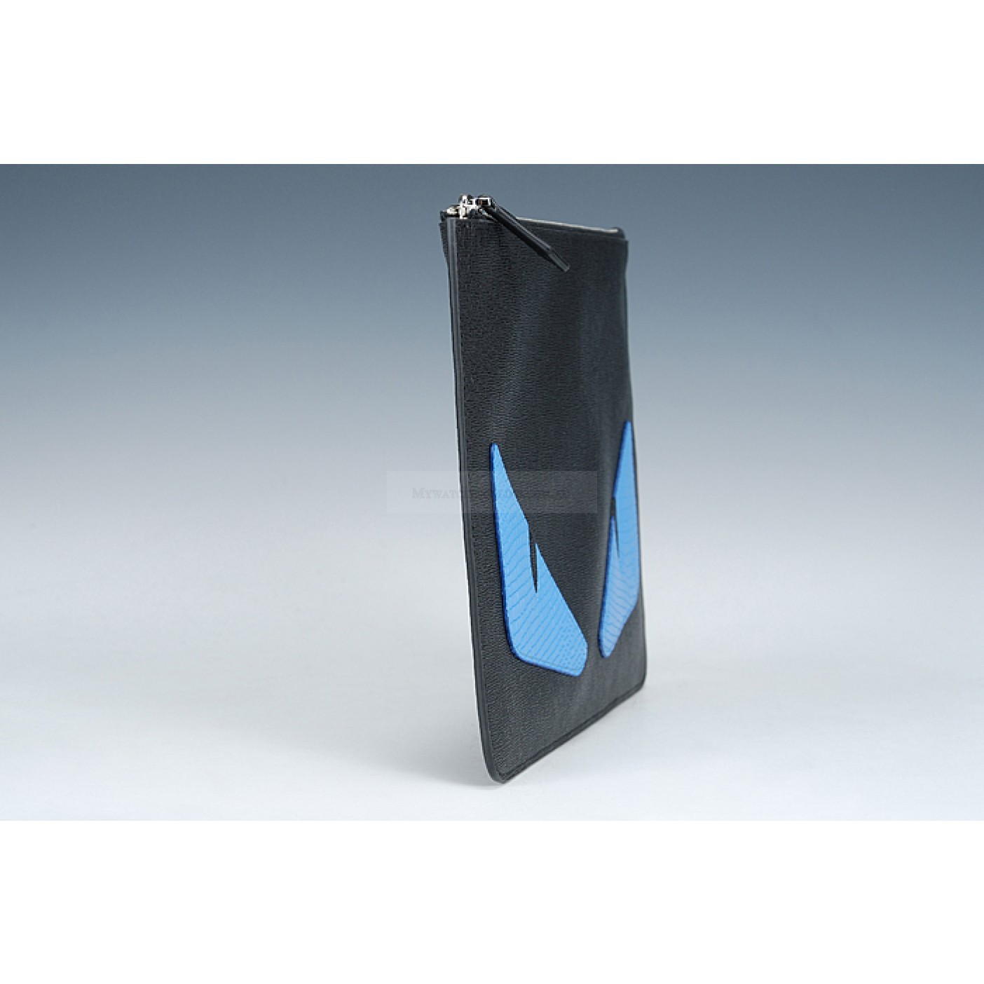 Fendi Bag Bugs Motif Blue Phyton and Black Leather Flat Pouch 18927333