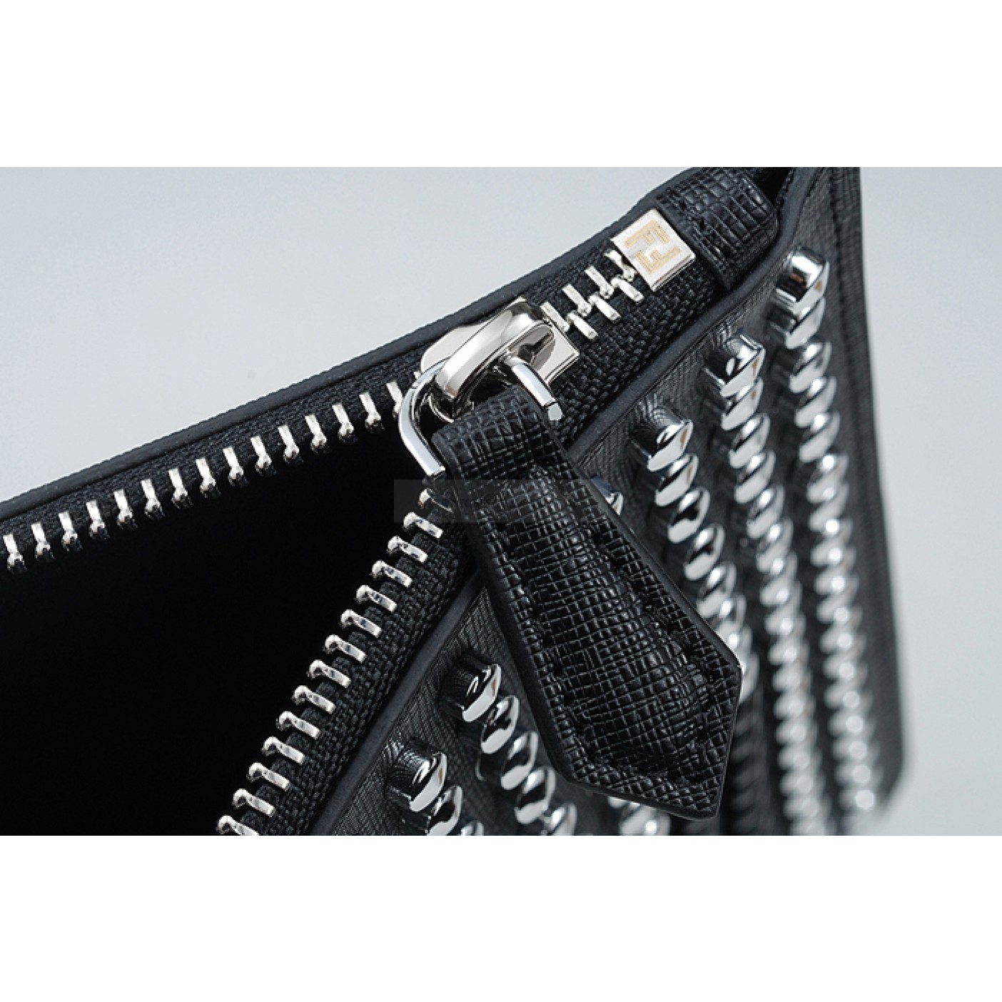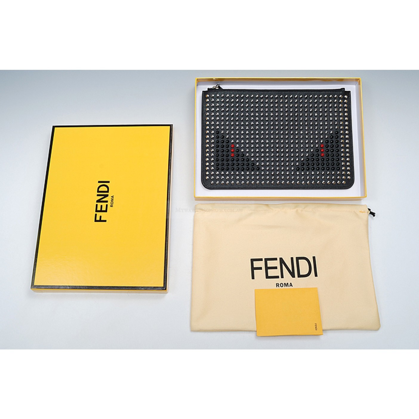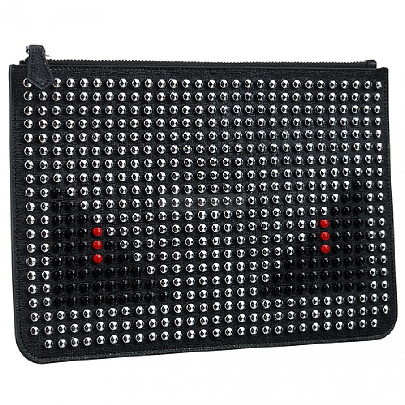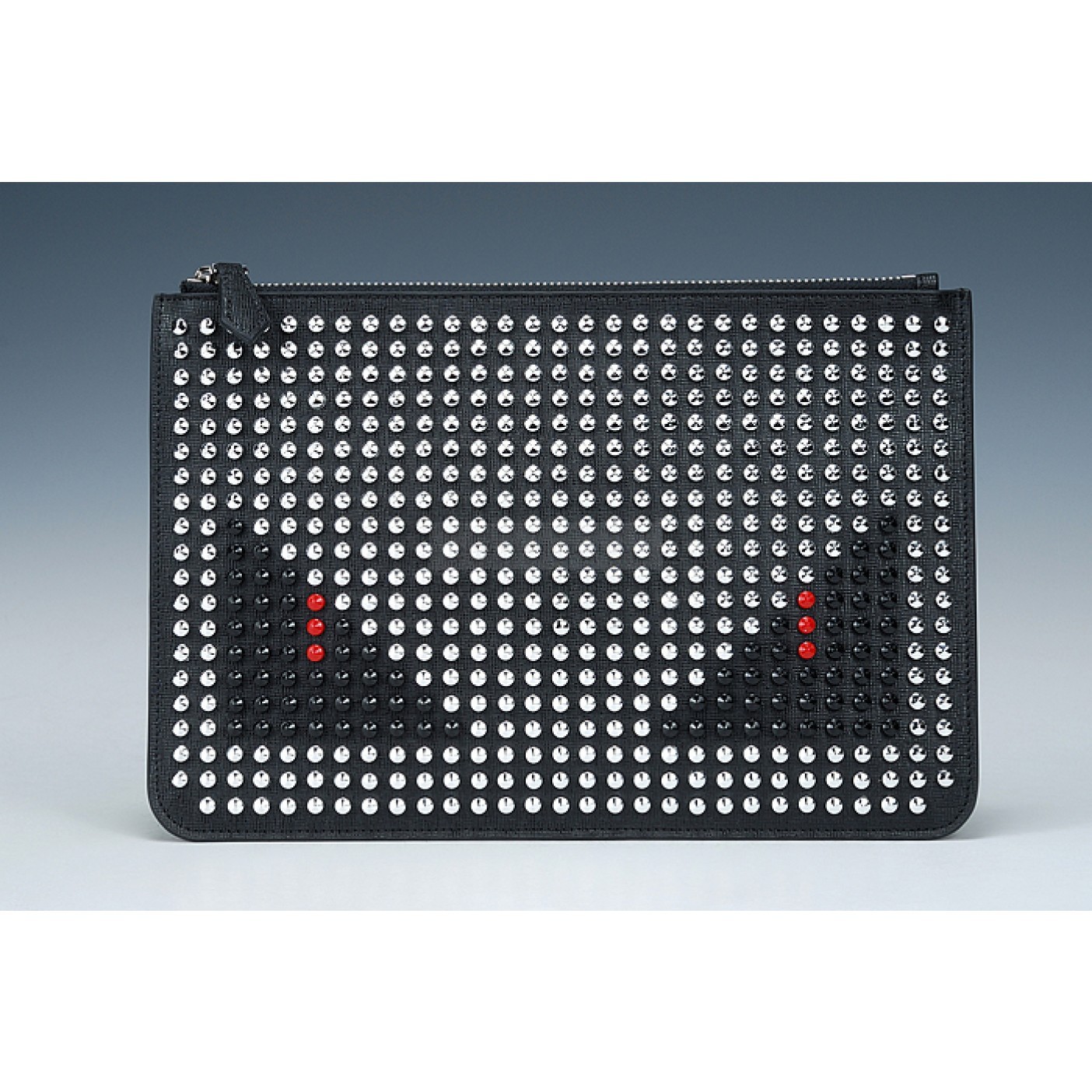 Fendi Bag Bugs Studded Black And White Leather Flat Pouch 18927335