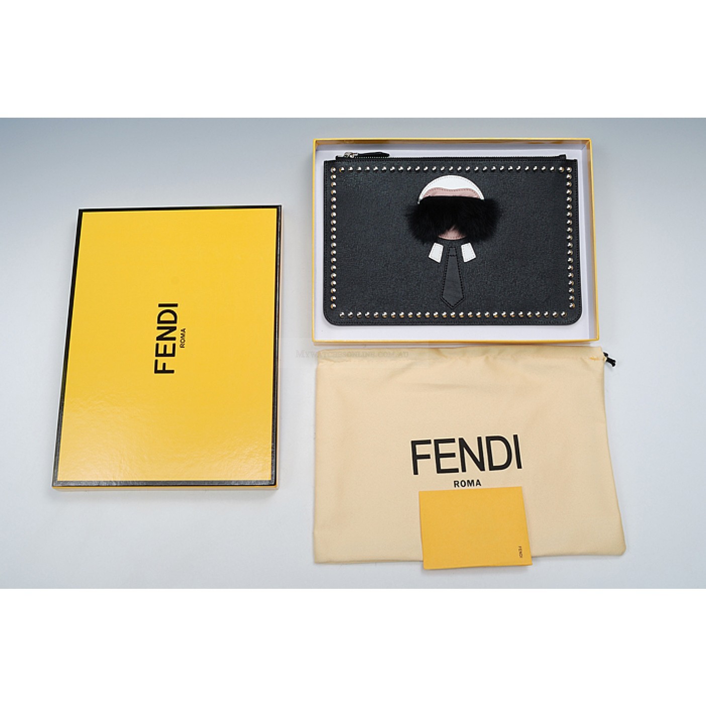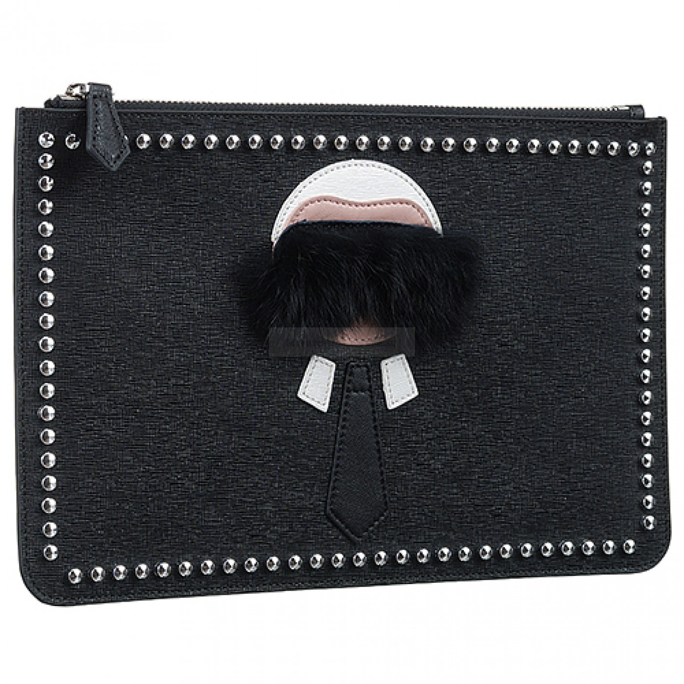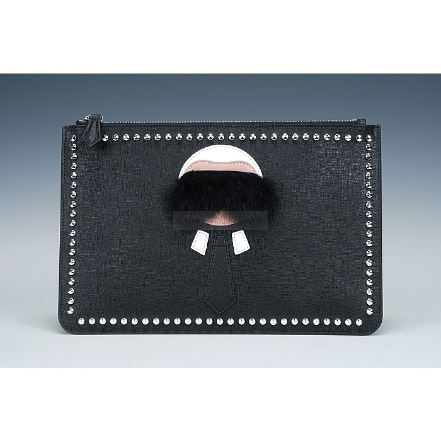 Fendi Karlito Black Leather Flat Pouch 18927330
