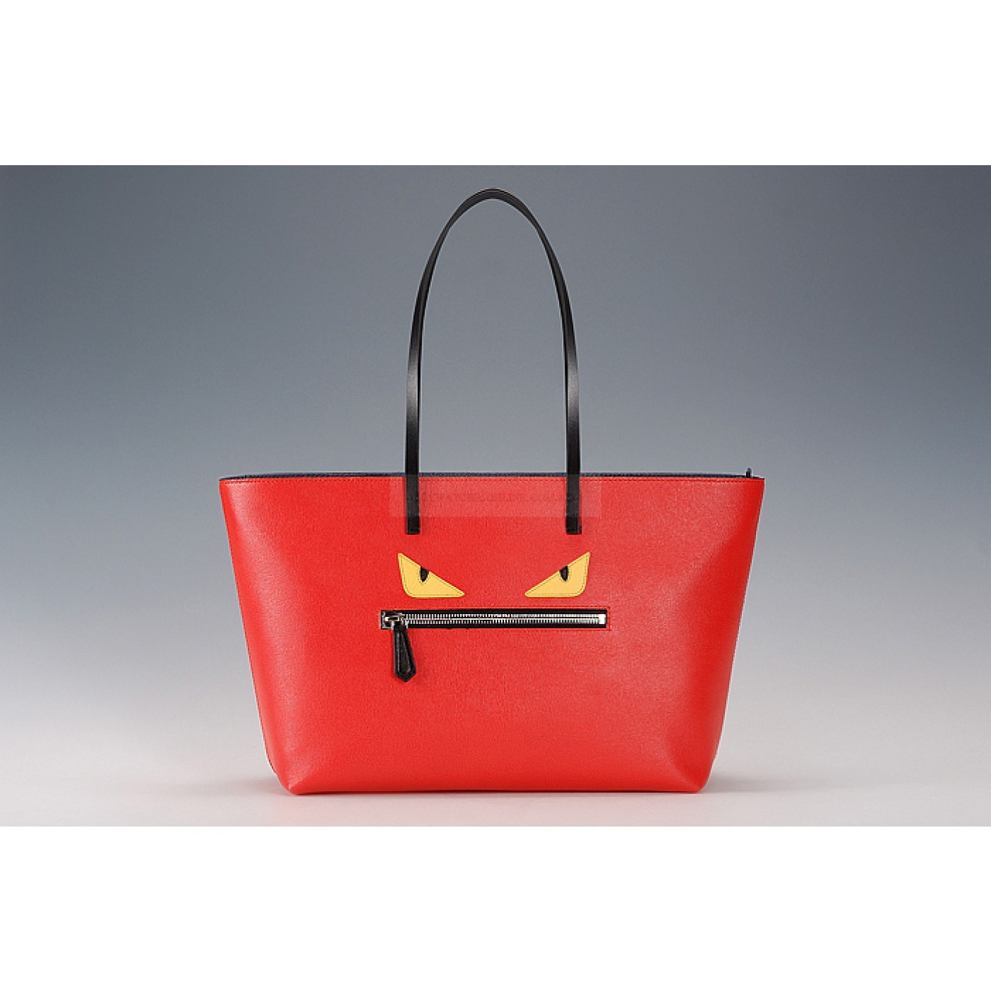 Description The black leather straps and yellow monster eyes offer a brilliant contrasting touch to this bright dark orange color Fendi tote