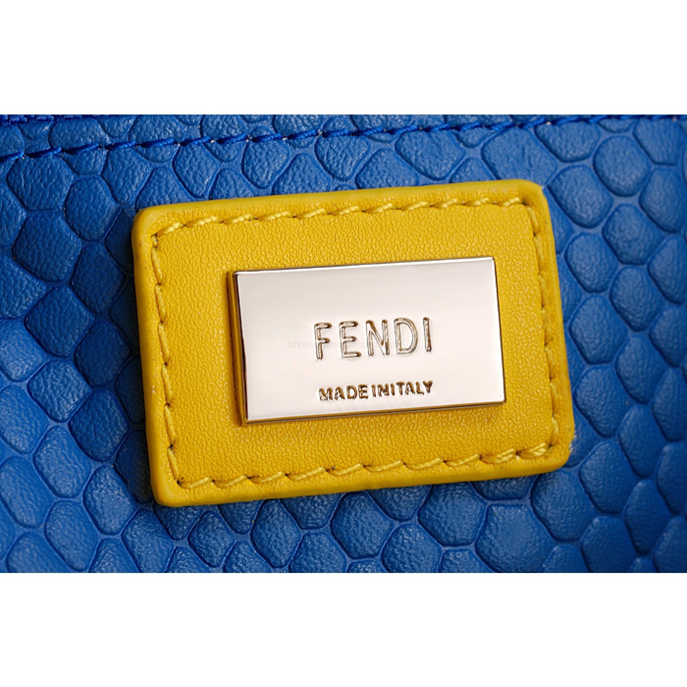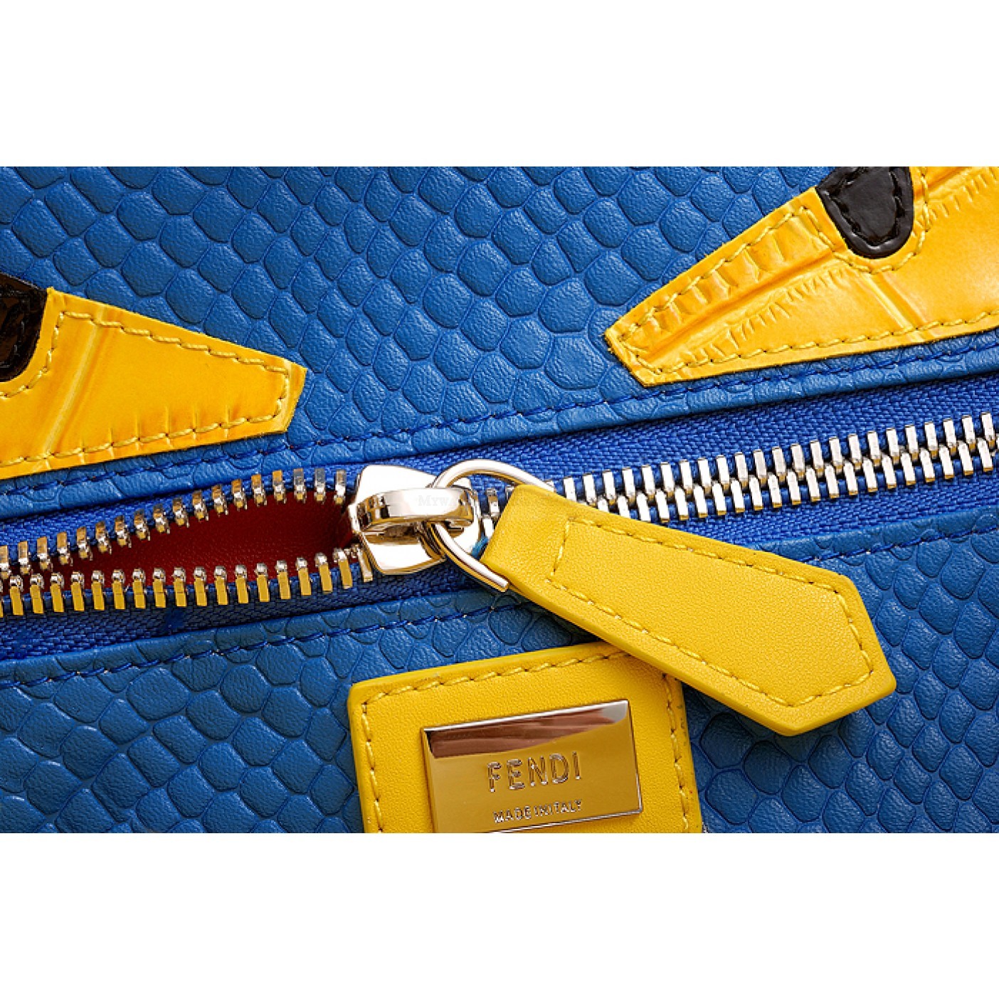 Interior A one side textured and one side plain leather lining with cat-eye leather trim and Made in Italy Fendi engraved polished brass tab leather trim