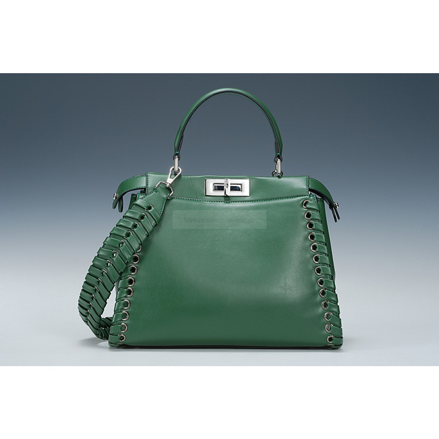 Fendi Peekaboo Whipstitch Green Leather Bag  18927312