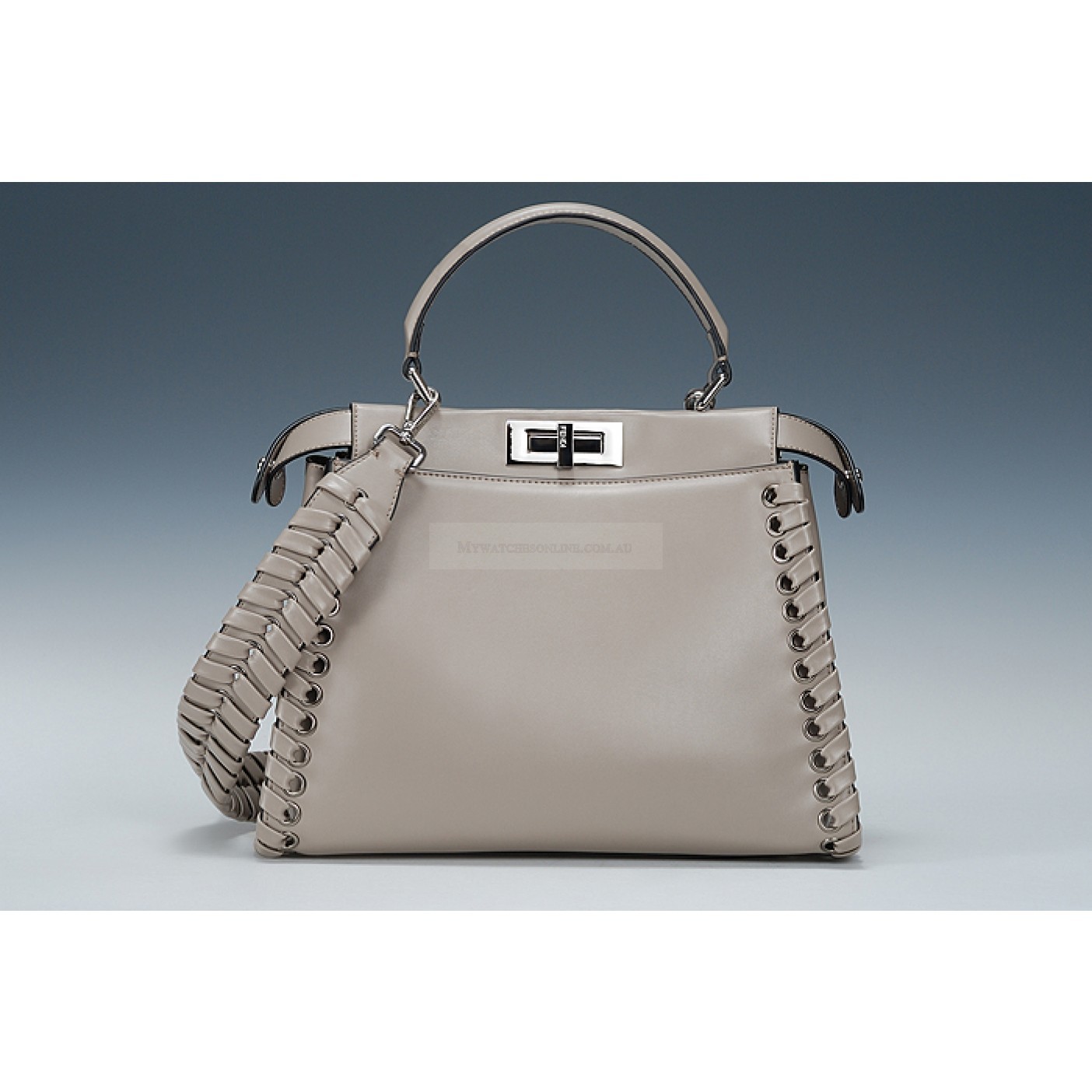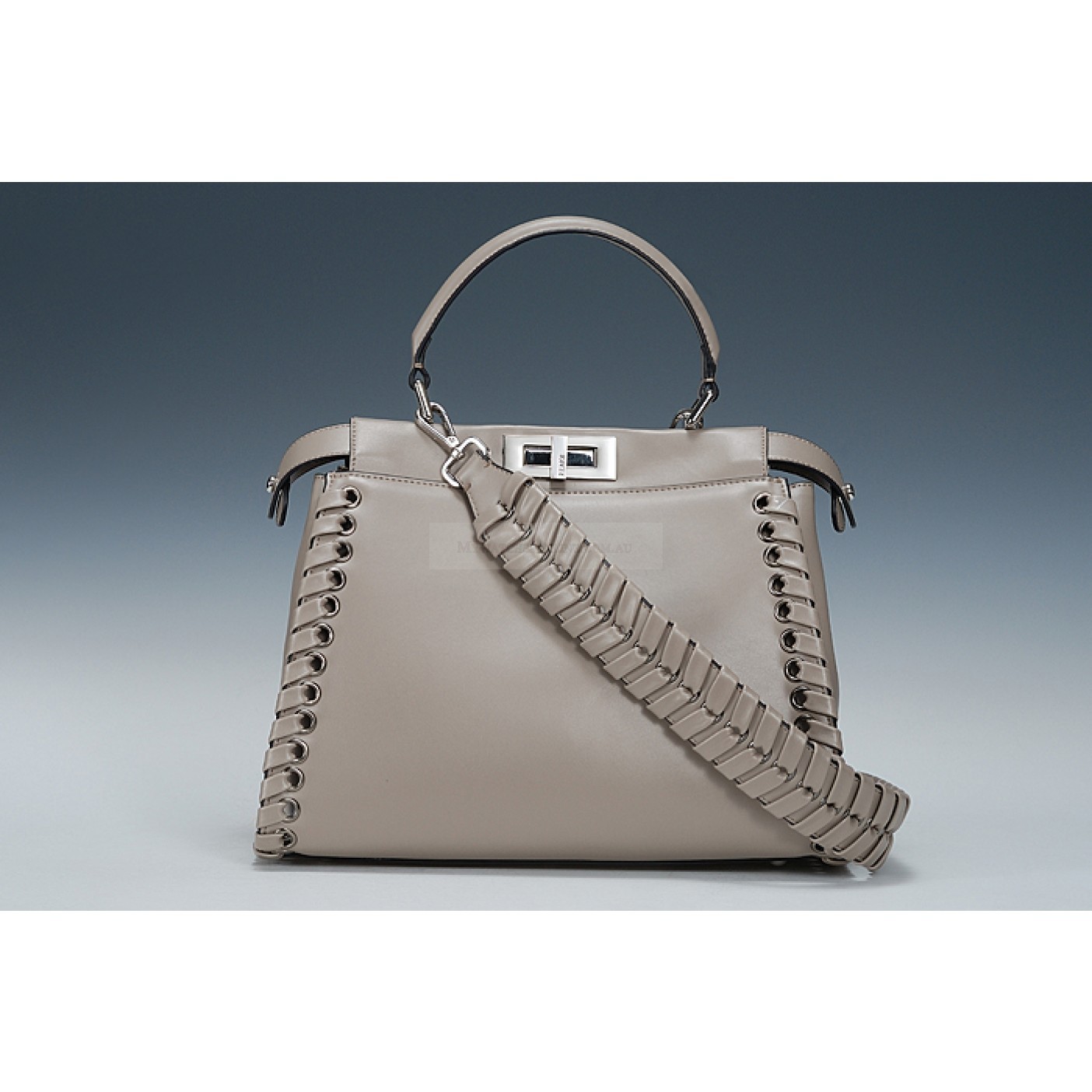 Fendi Peekaboo Whipstitch Grey Leather Bag  18927310