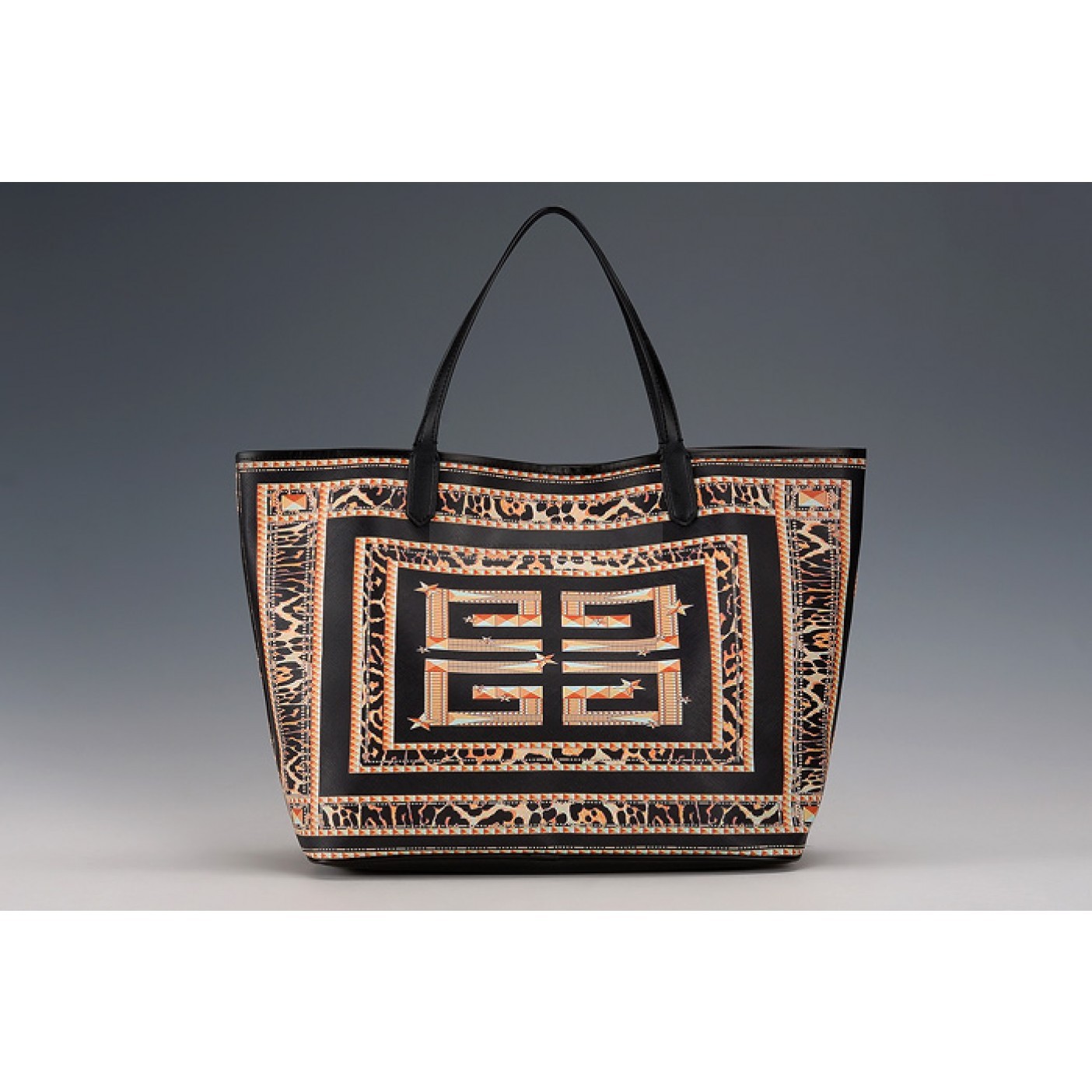 Description An intricate geometric pattern offers glamour to this spacious Givenchy tote