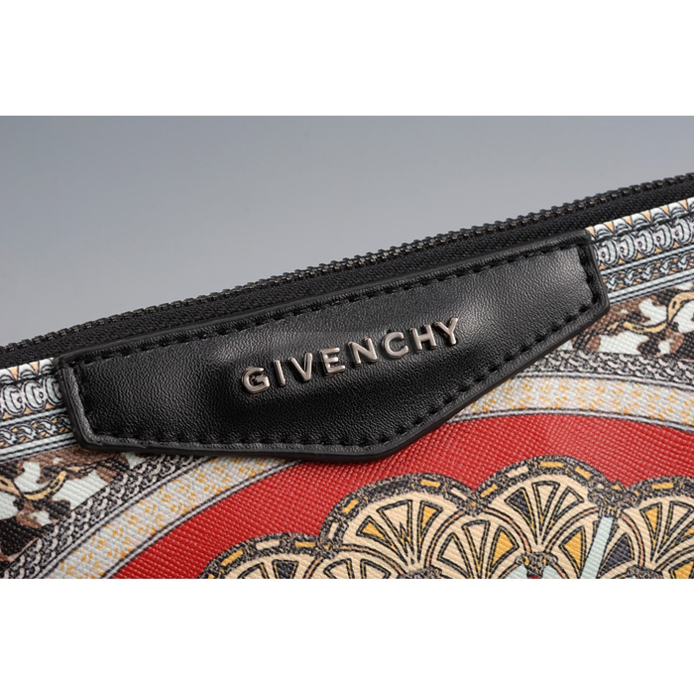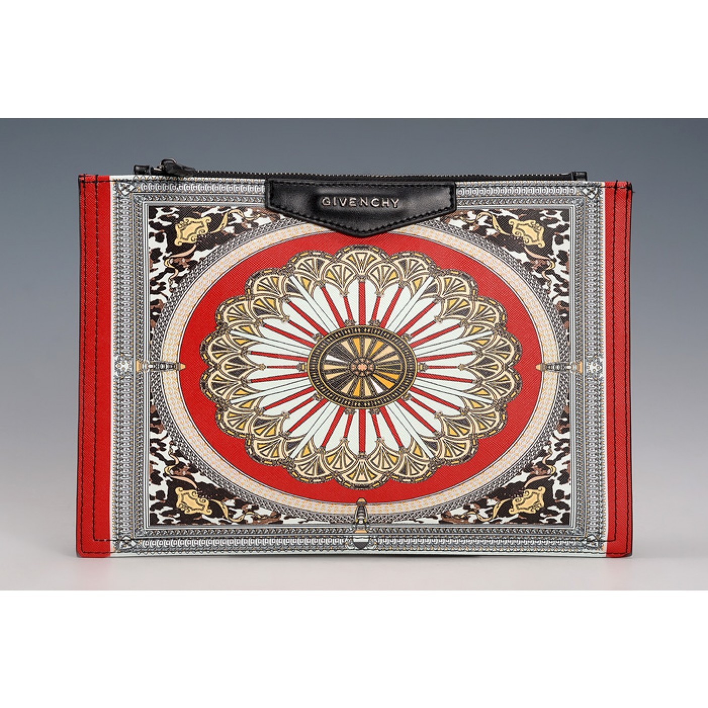 Description The contemporary floral graphic print lends a sophisticated look to this Givenchy Antigona clutch