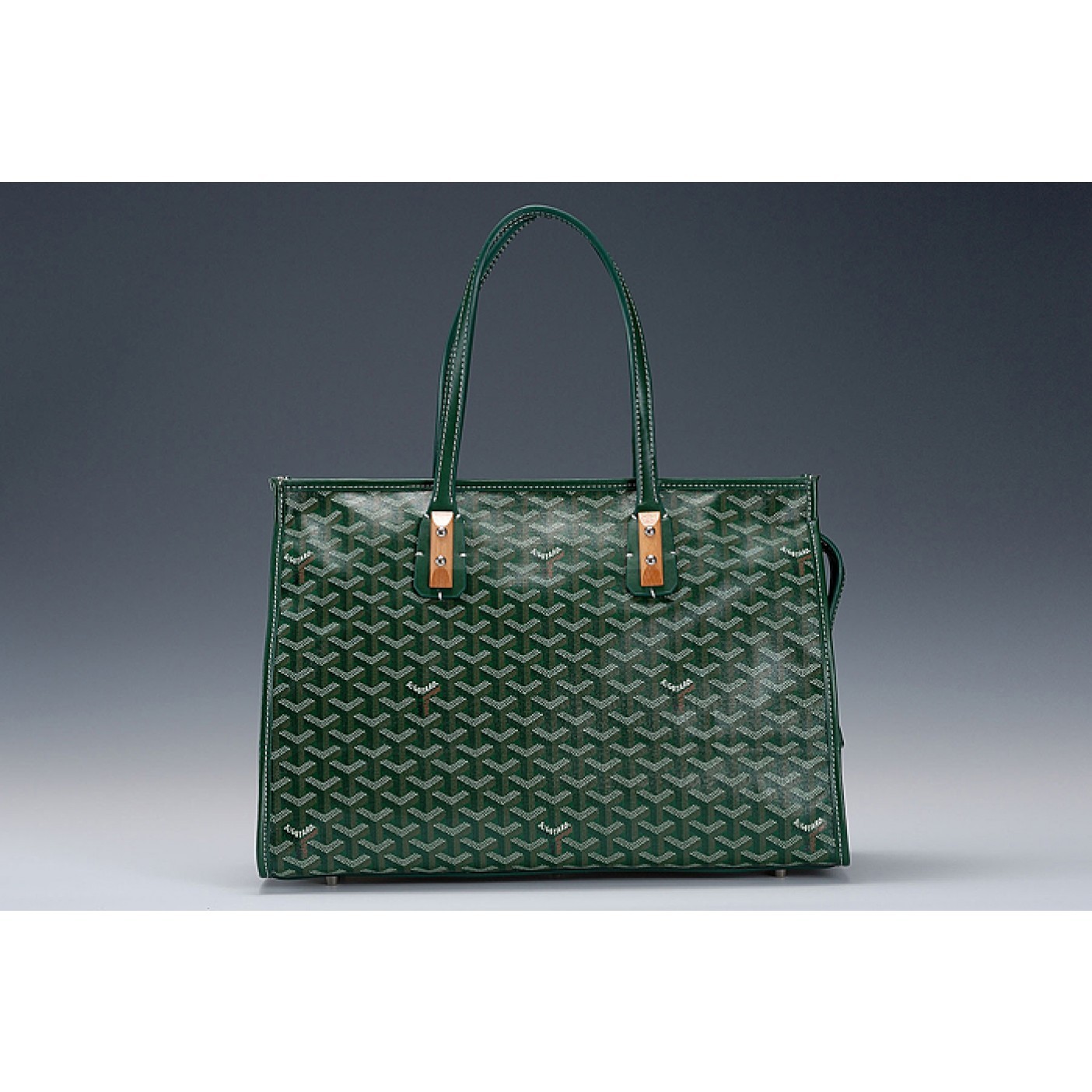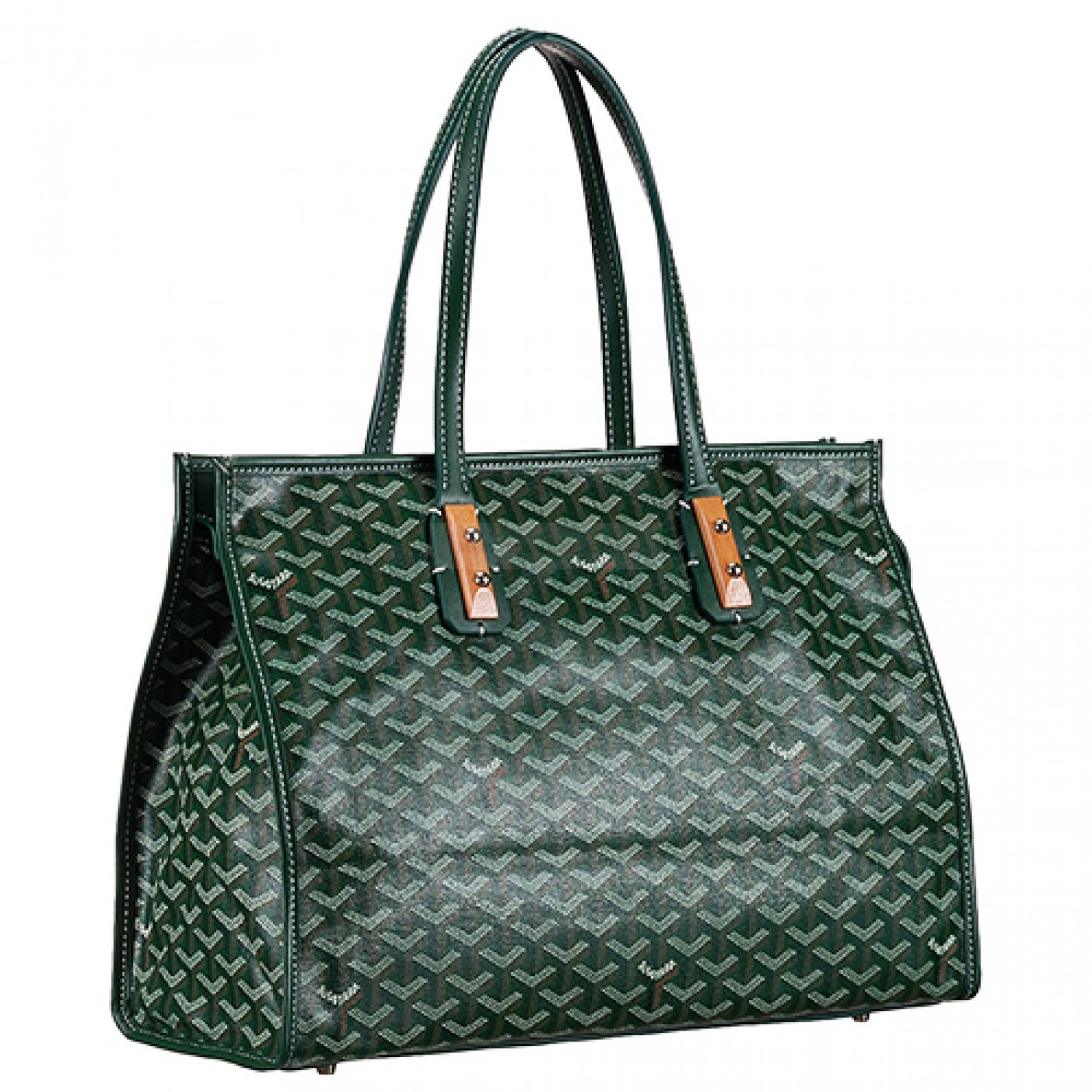Description The dark green color lends an elegant look to the 3D print exterior of this smart Goyard tote