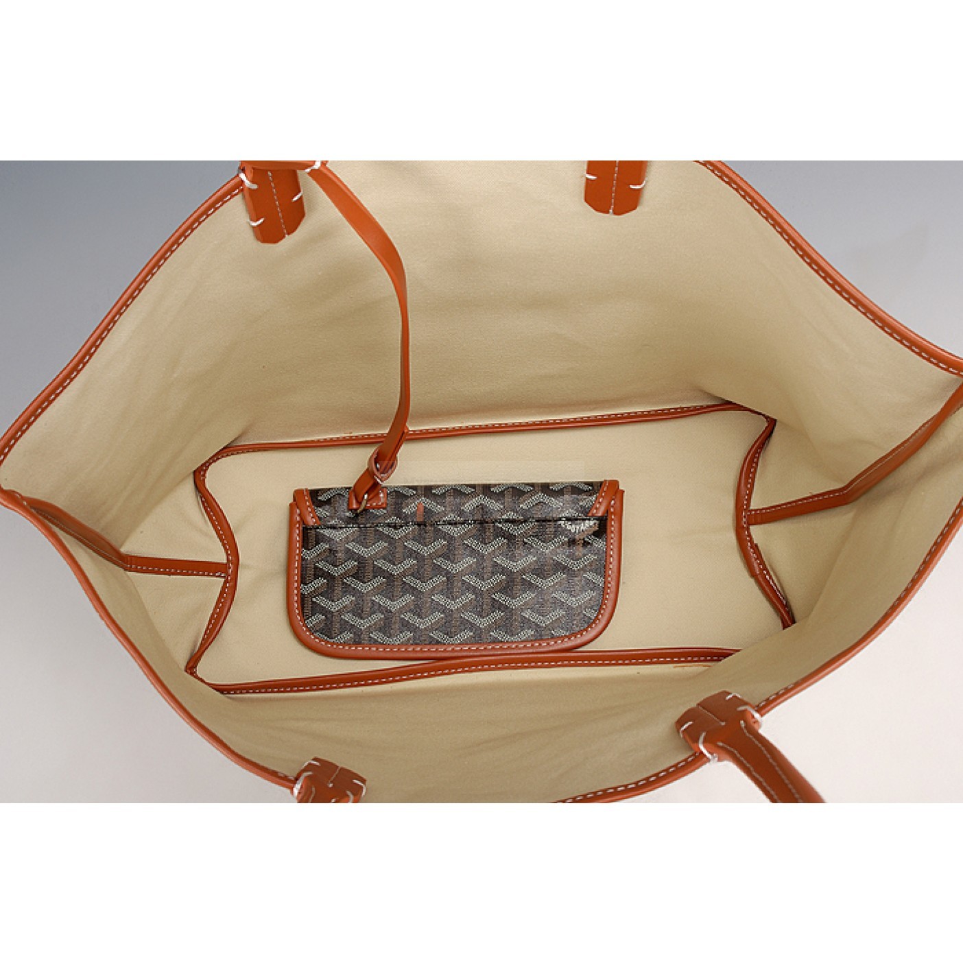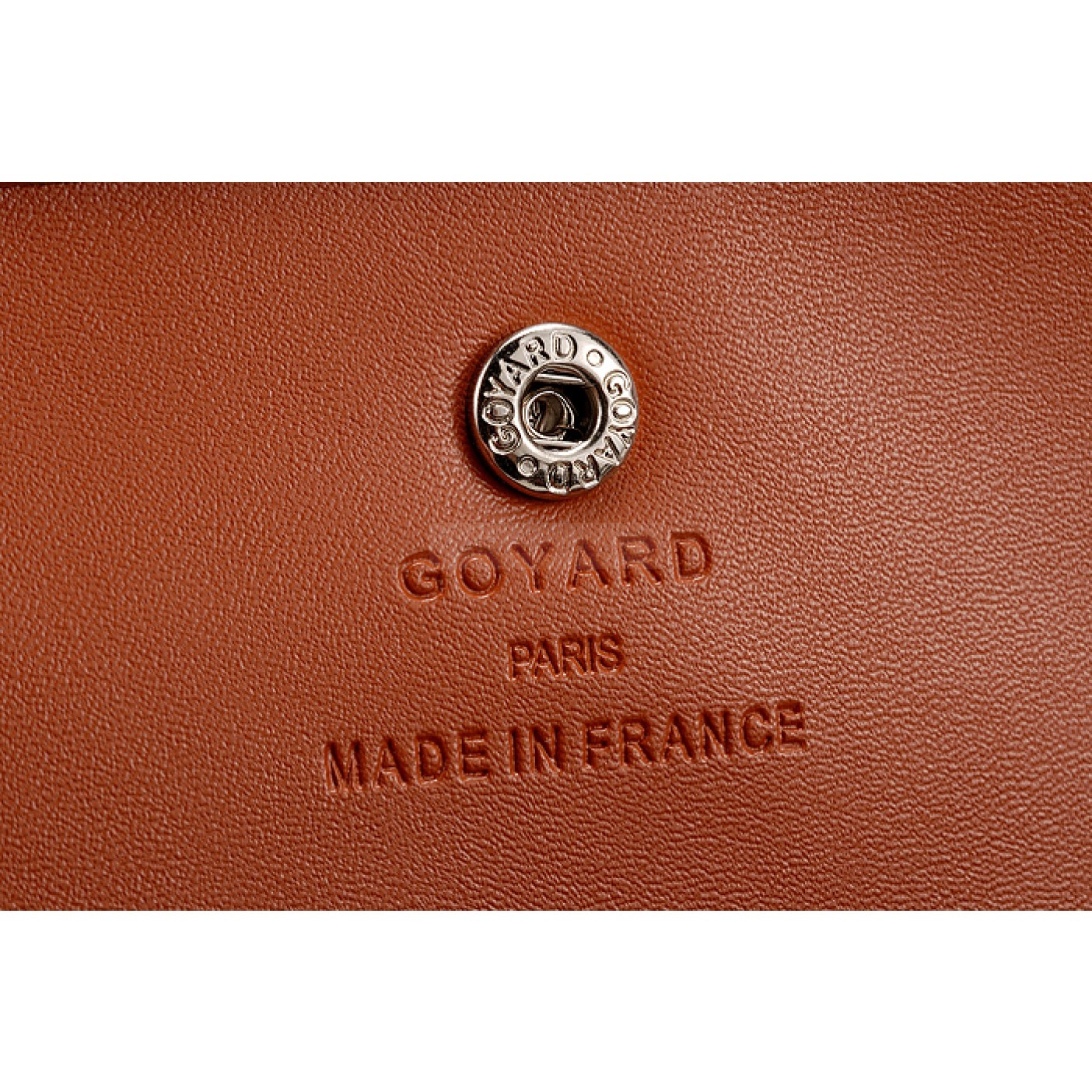 Interior Leather lining with Goyard Paris Made in France heat embossed on the zipper pouch flap