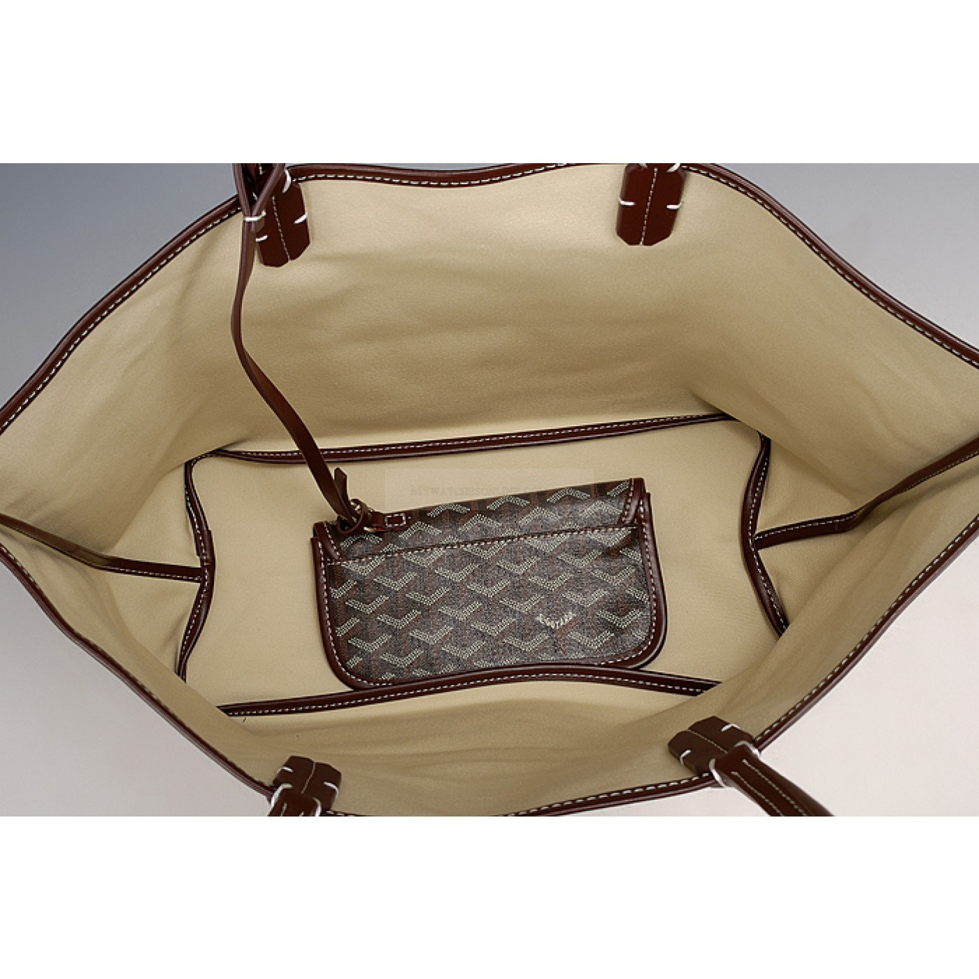 Interior Leather lining with Goyard Paris Made in France heat embossed on the zipper pouch flap