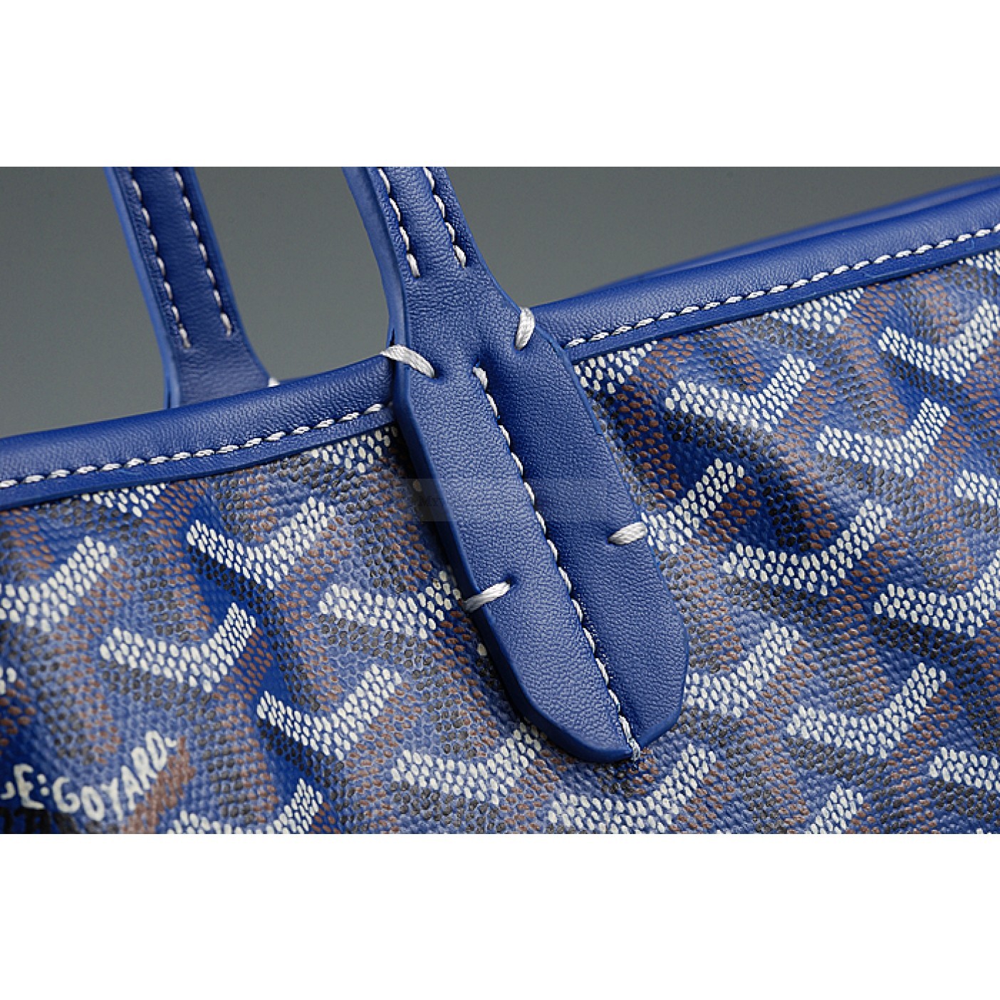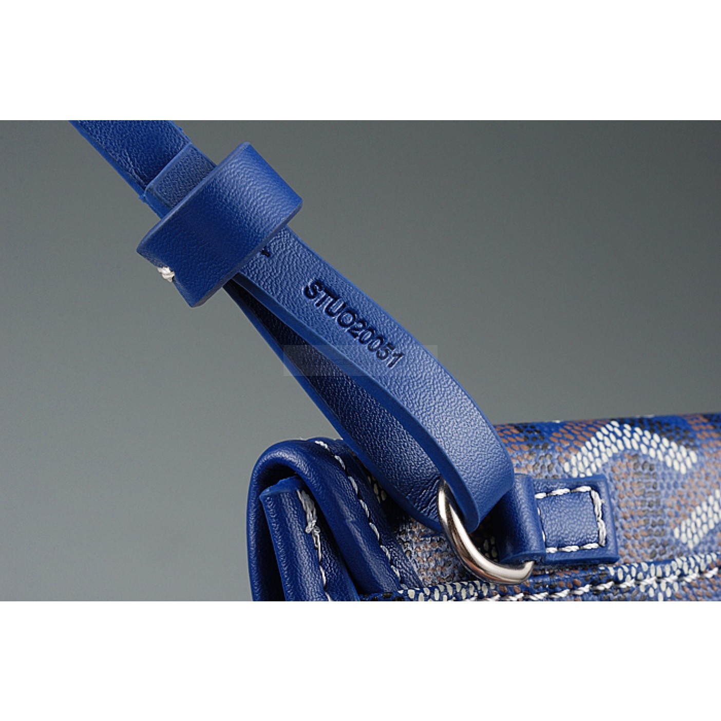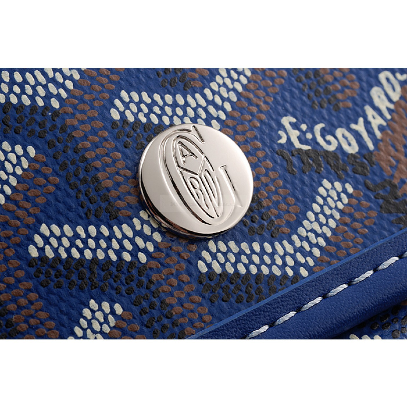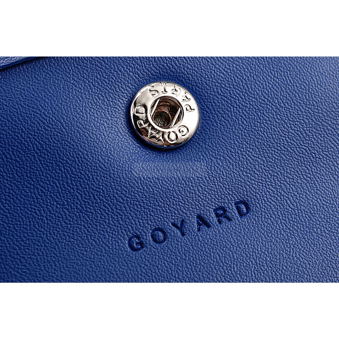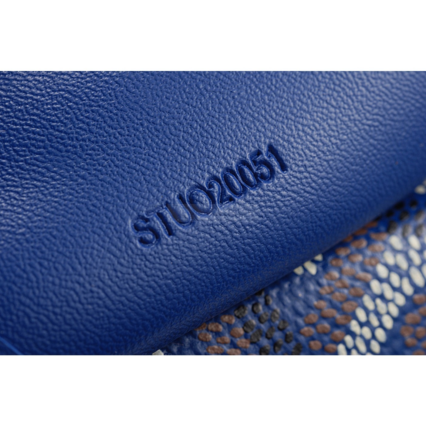 Interior Textile lining in main bag exterior and Goyard and product code heat embossed leather lining in coin purse