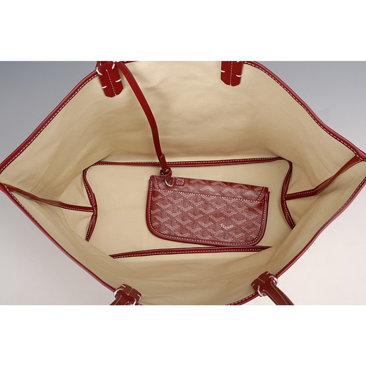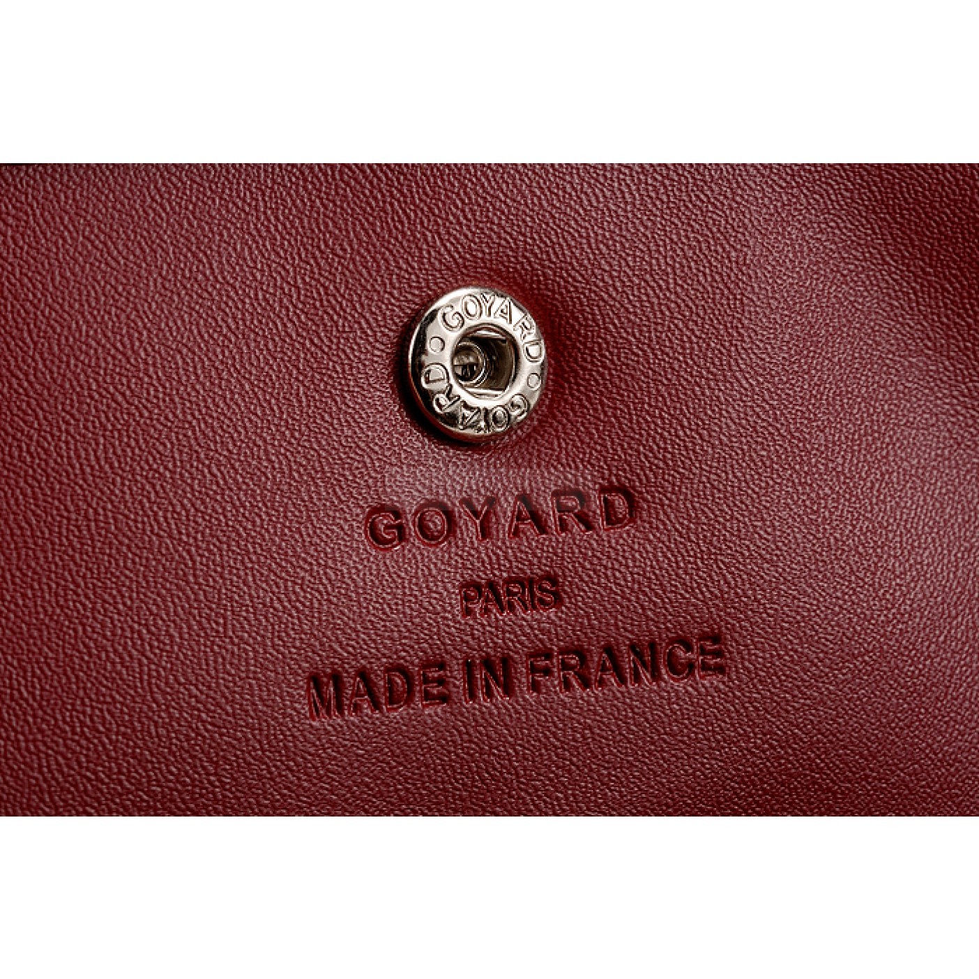 Interior Leather lining with Goyard Paris Made in France heat embossed on the zipper pouch flap