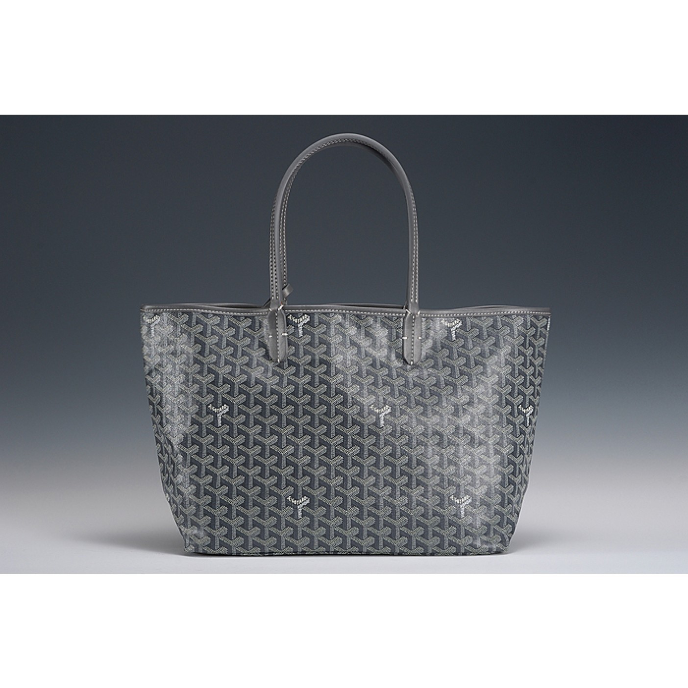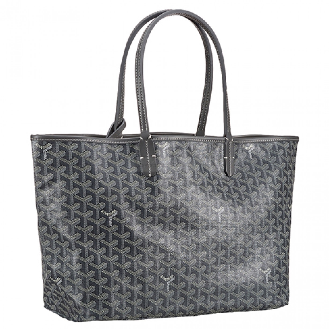 Description A dark grey calfskin leather tote with a chevron pattern print that gives it an exclusive look