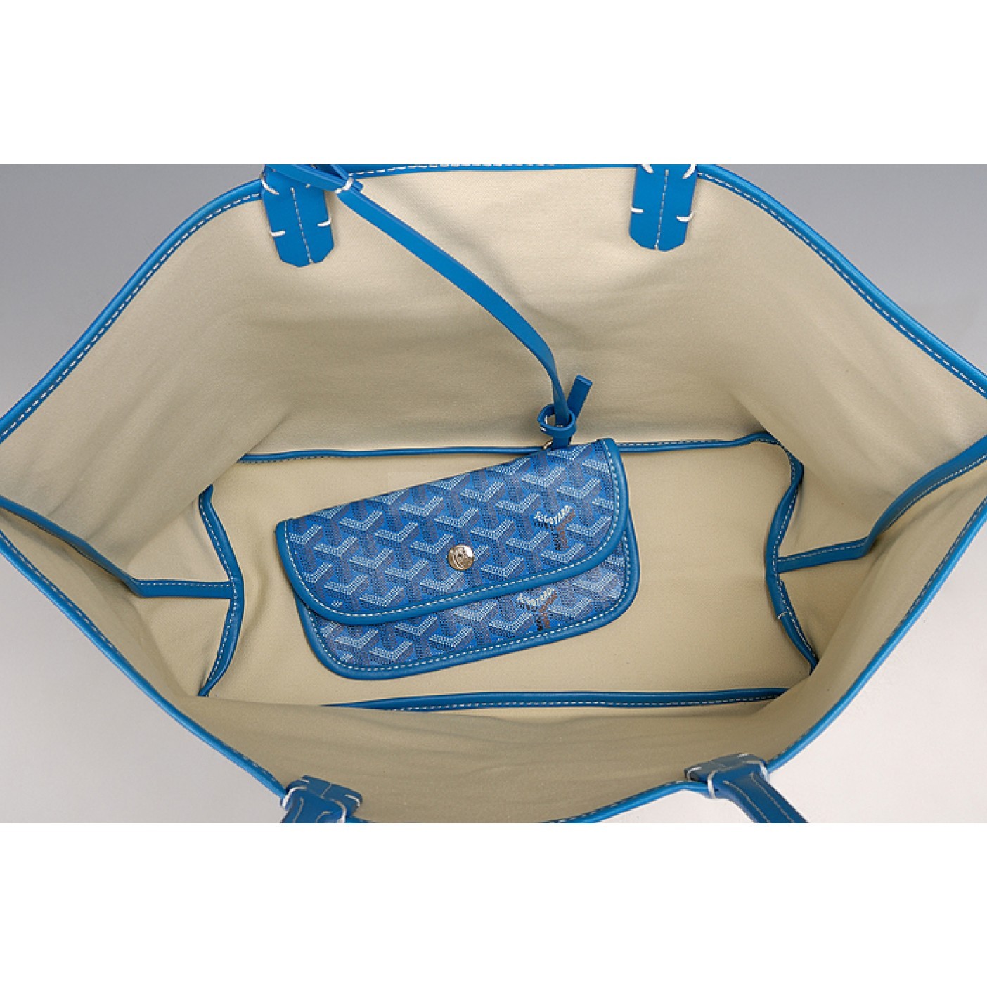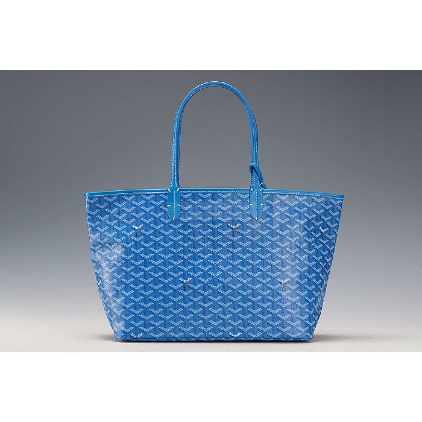 Description The lovely blue color adds to smart look of the 3D print pattern on the exterior of this Goyard tote