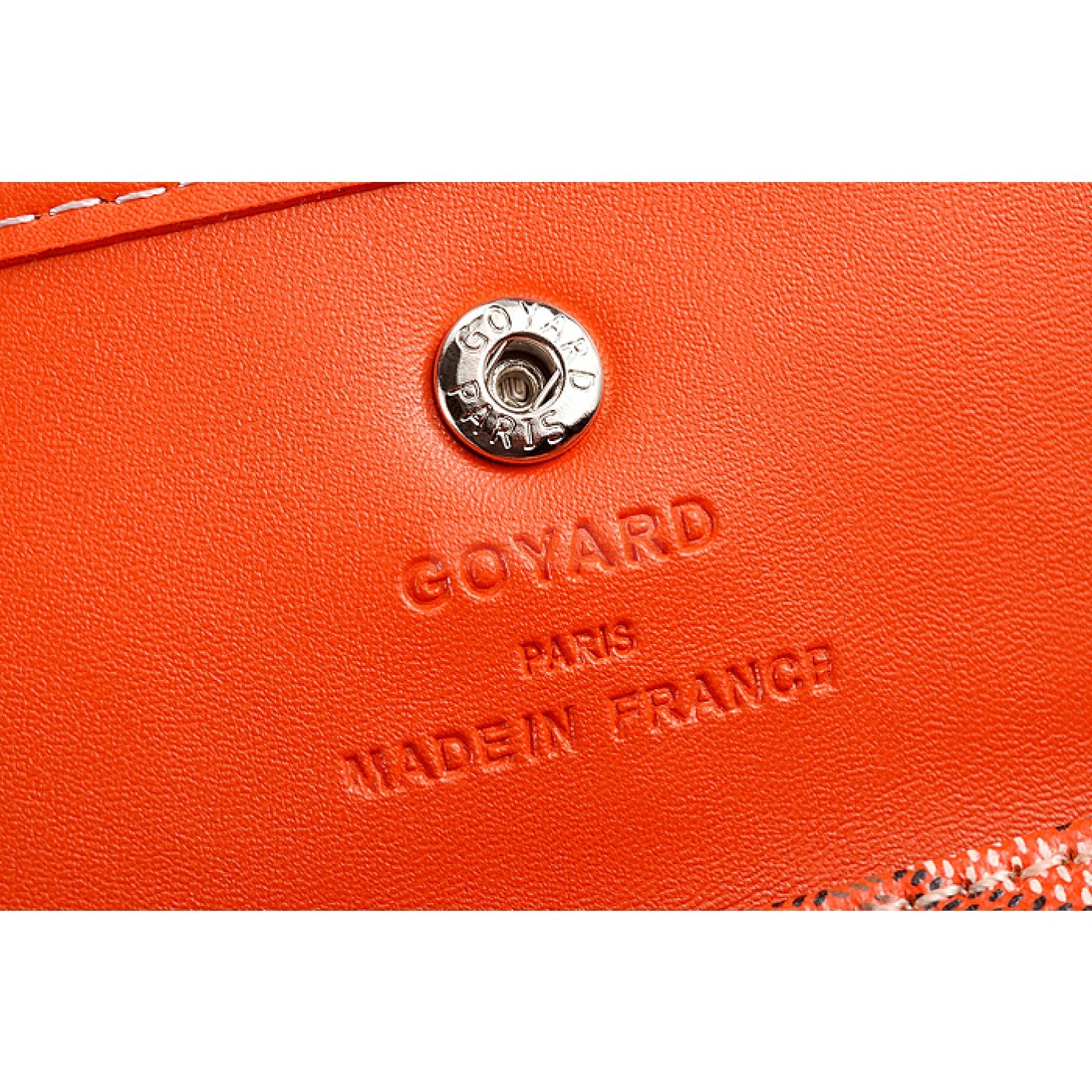 Interior Textile lining with Goyard Paris Made in France heat embossed on leather trim inside the coin purse