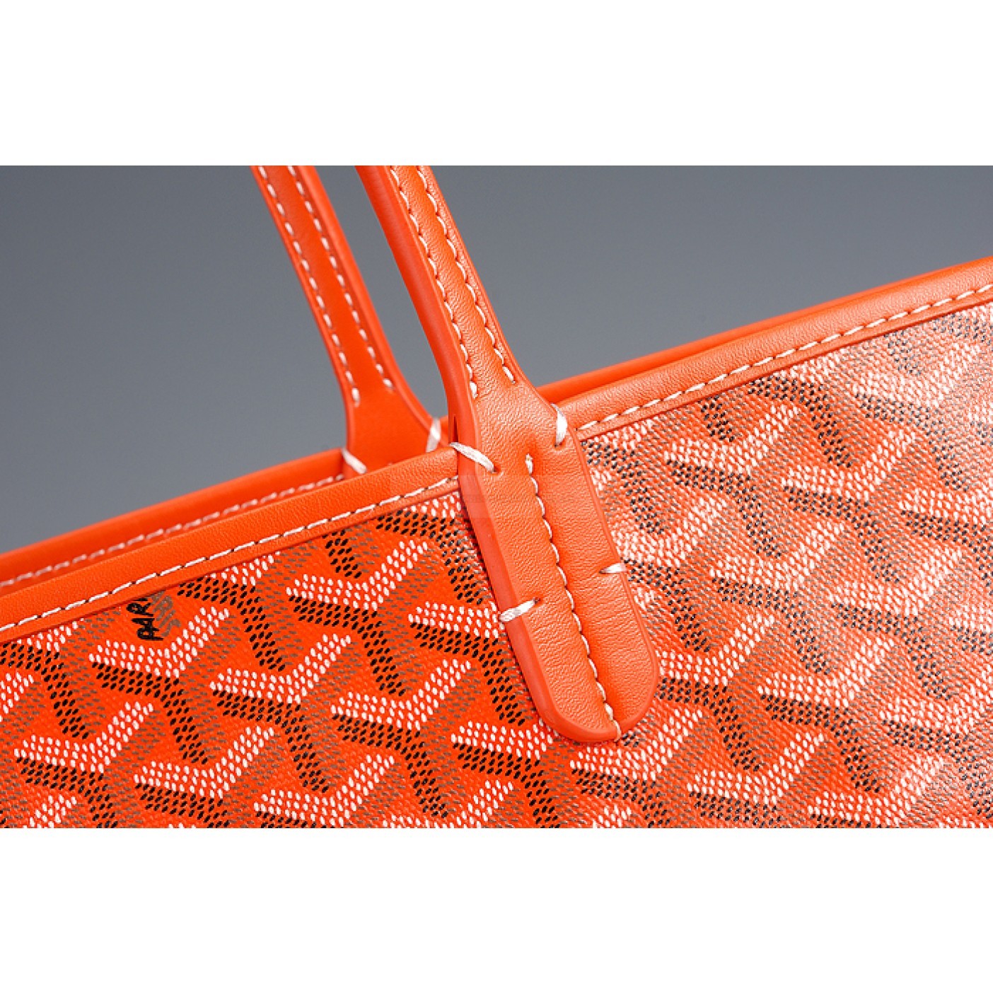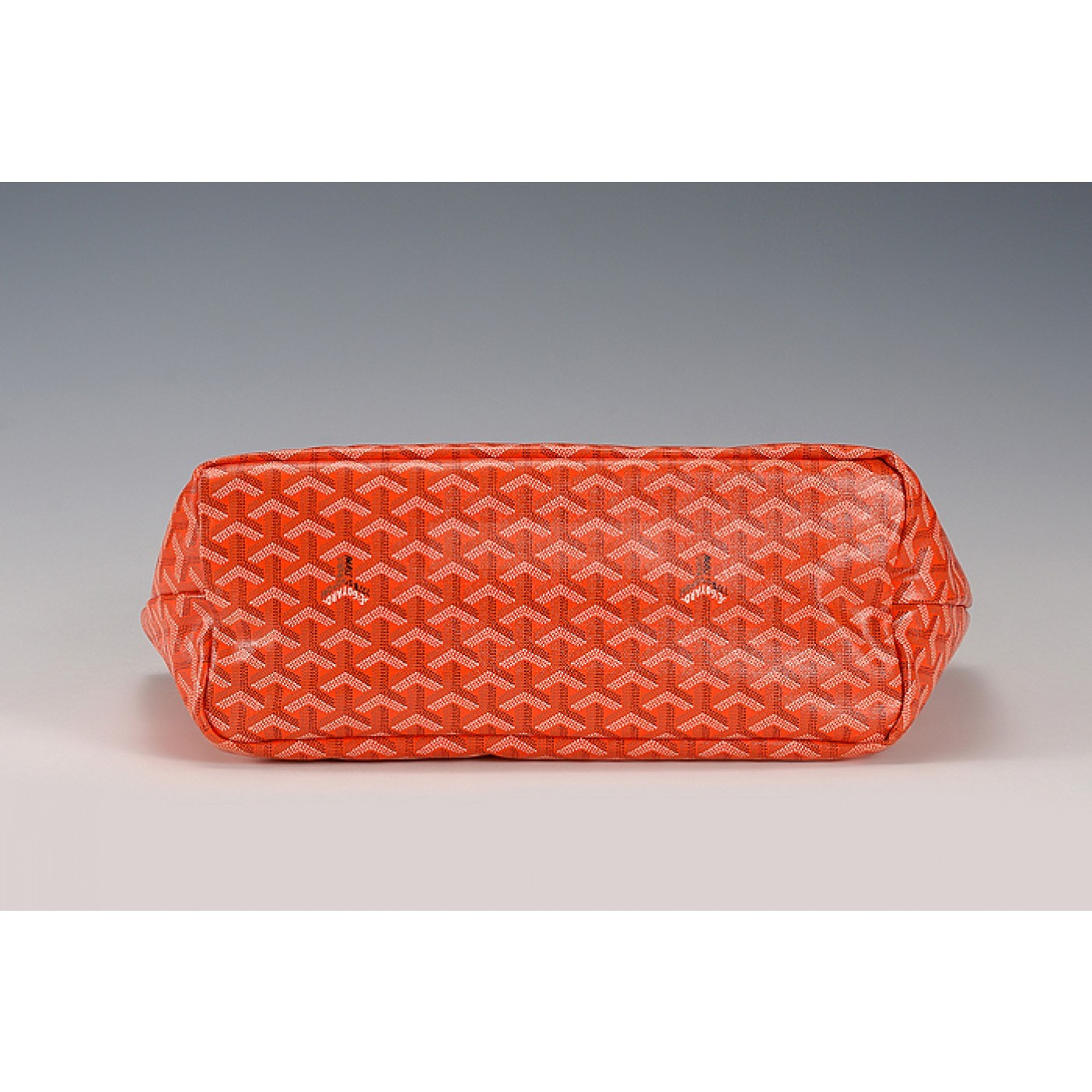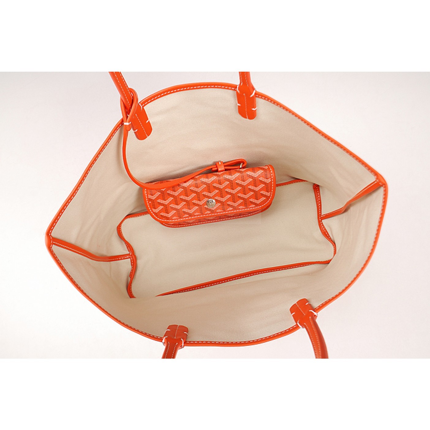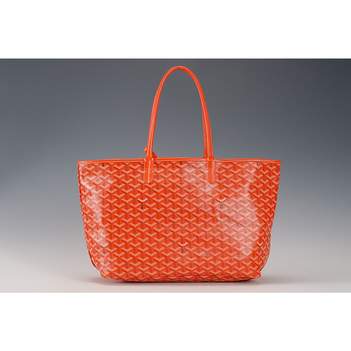 Description The fiery orange color calfskin leather with its chevron pattern print, lends immense beauty to this Goyard tote