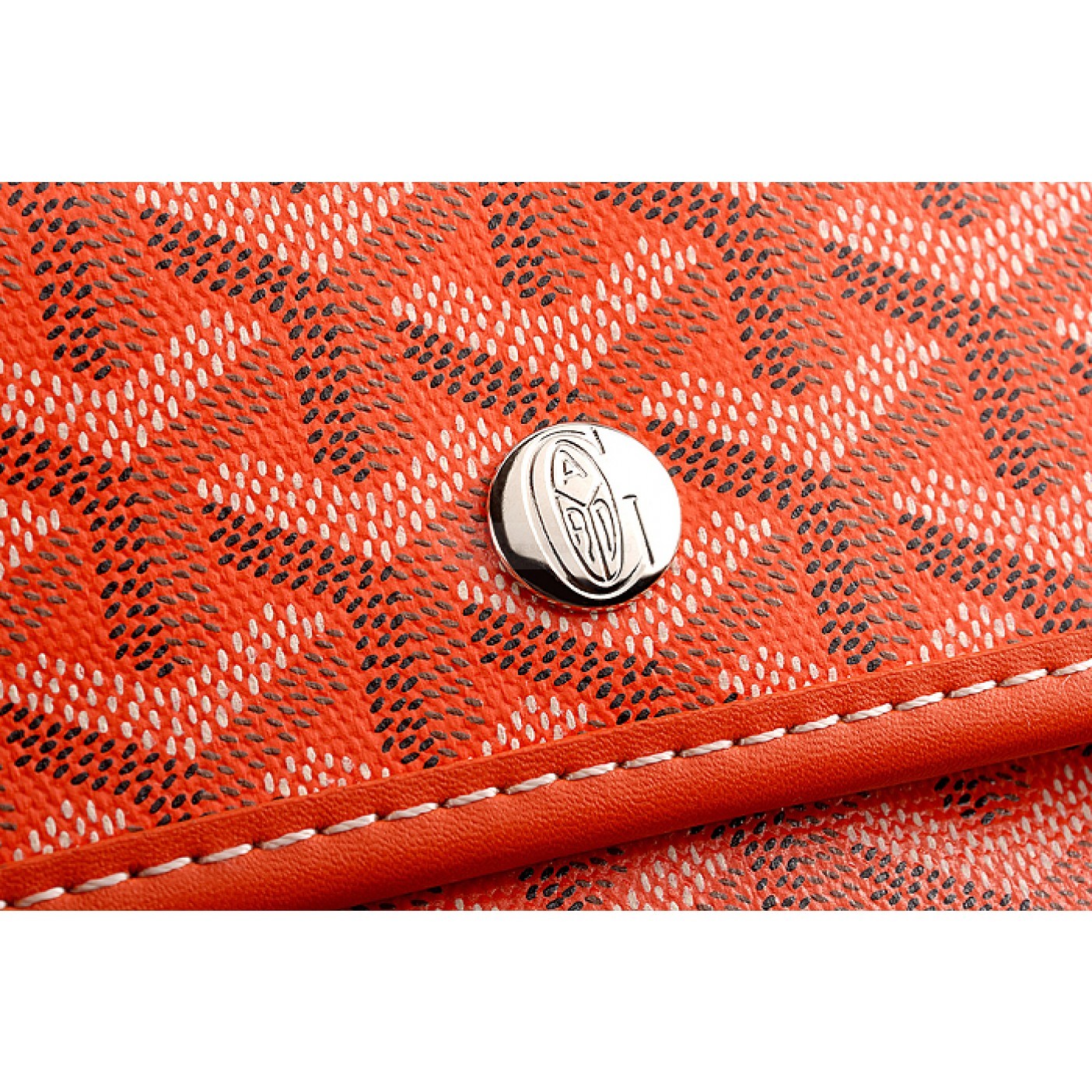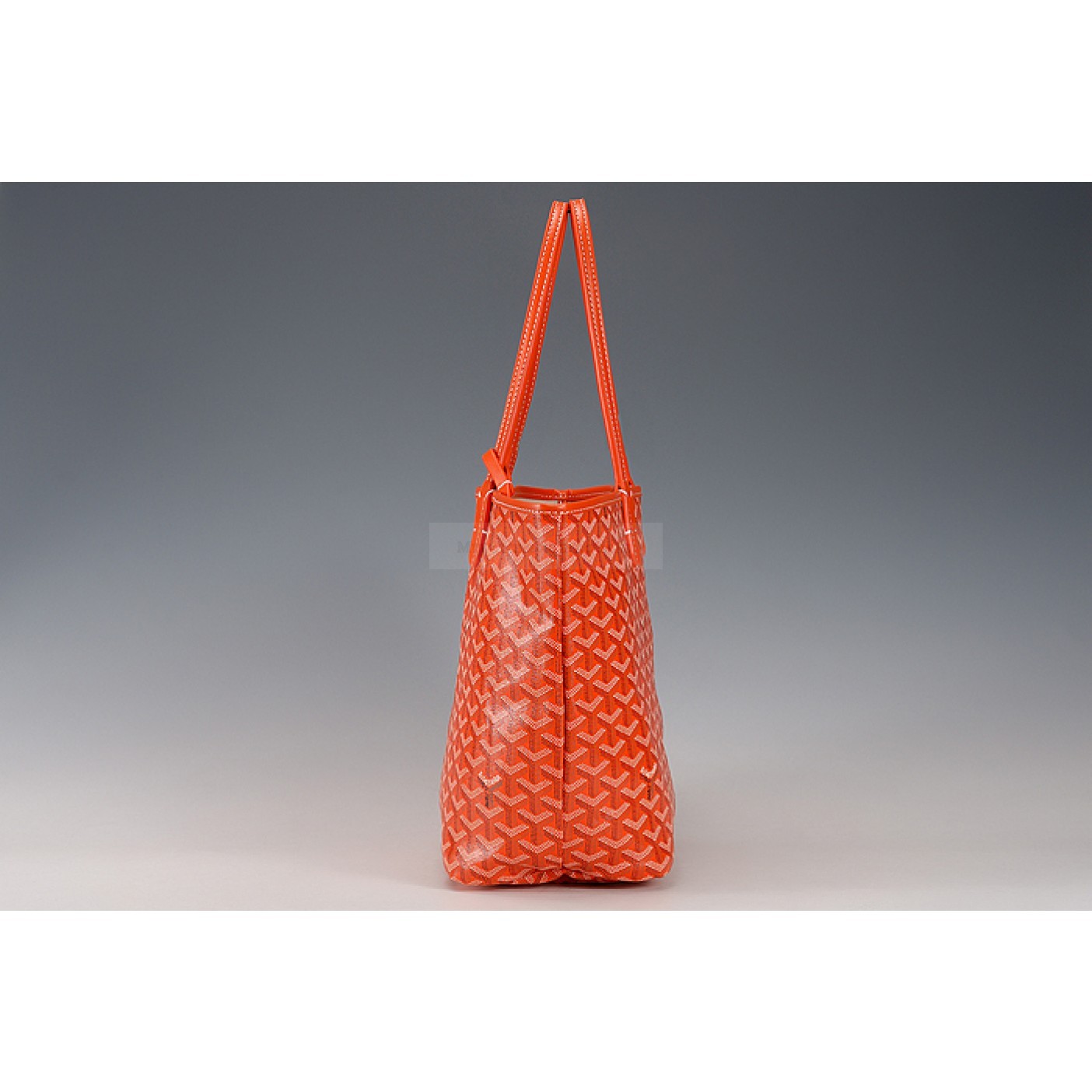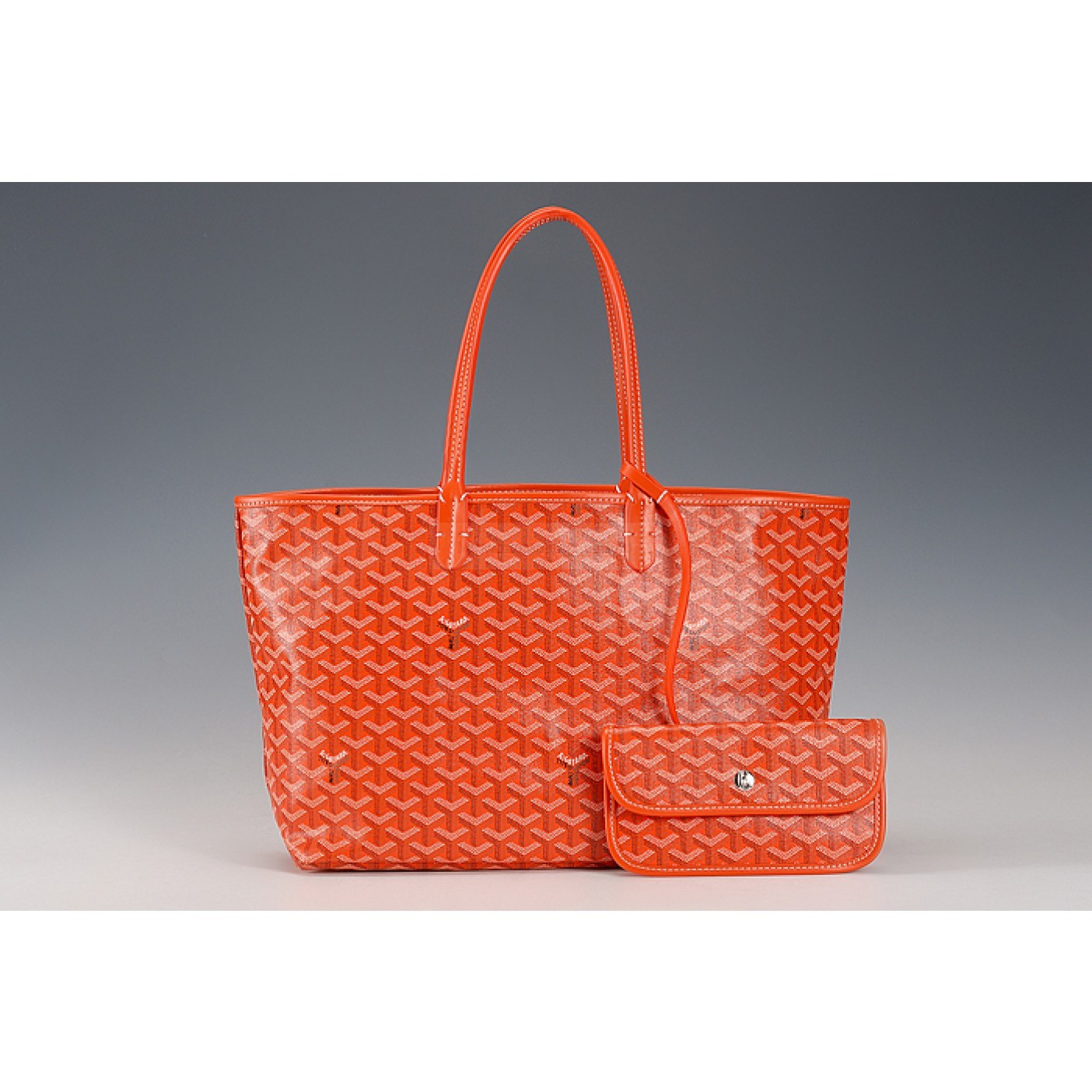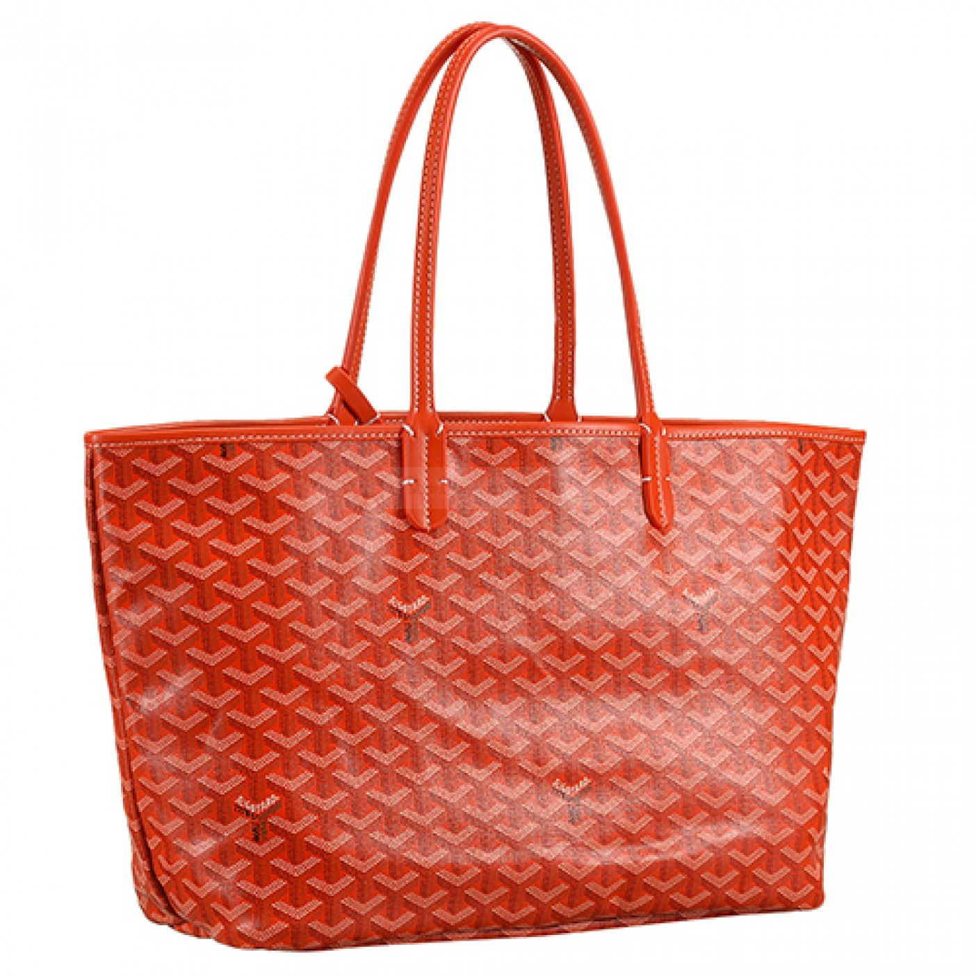 Description The fiery orange color calfskin leather with its chevron pattern print, lends immense beauty to this Goyard tote