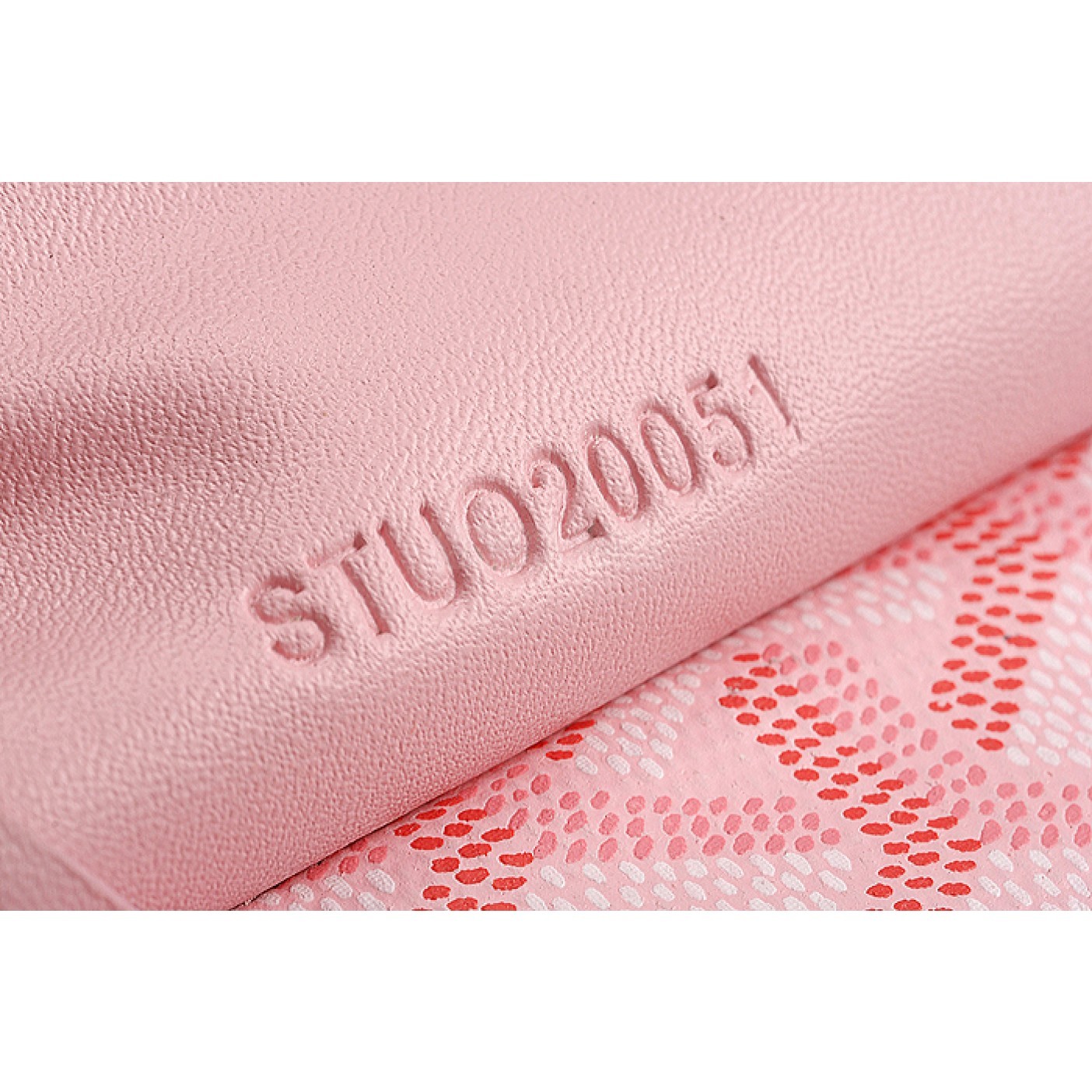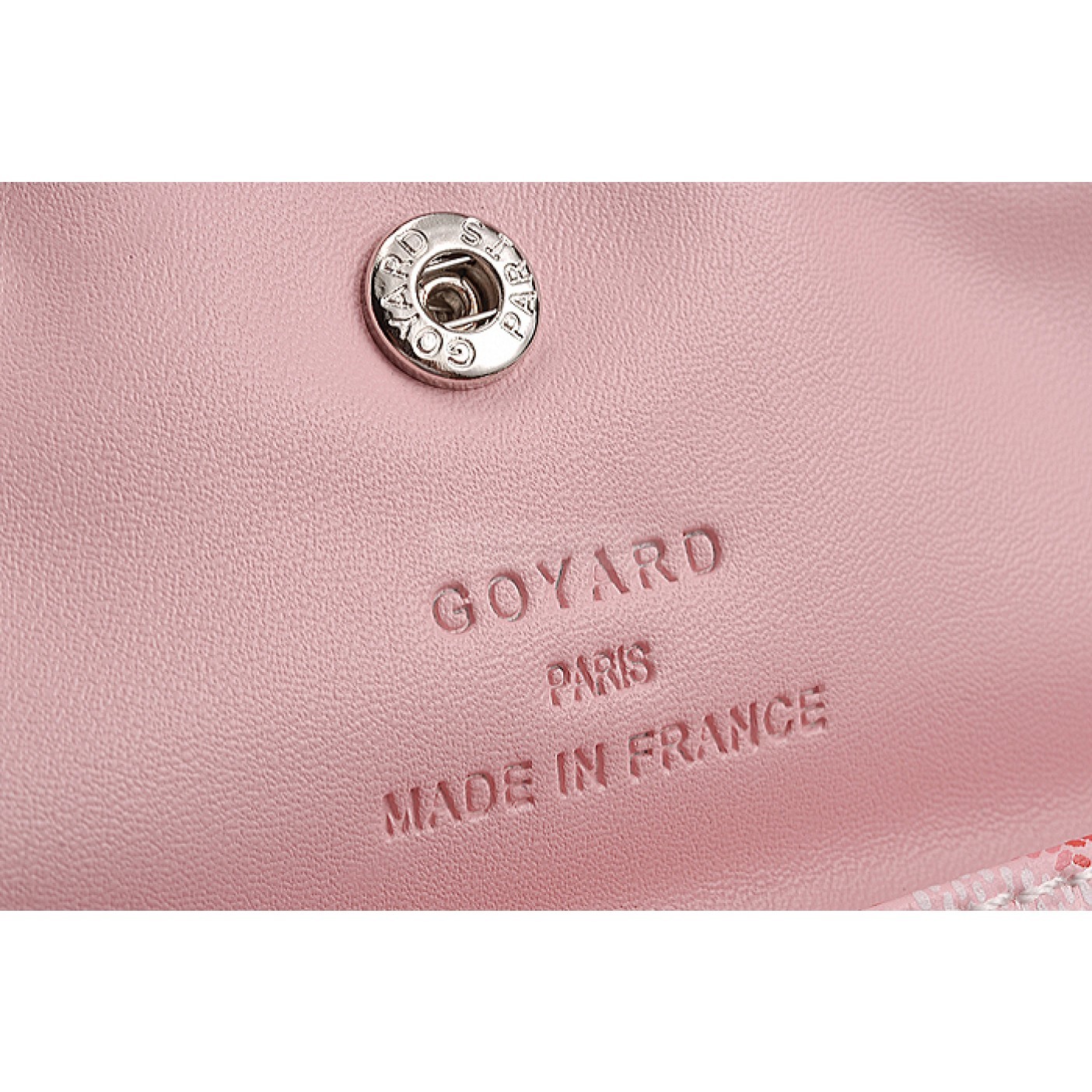 Interior Textile lining in main bag exterior and Goyard and product code heat embossed leather lining in coin purse