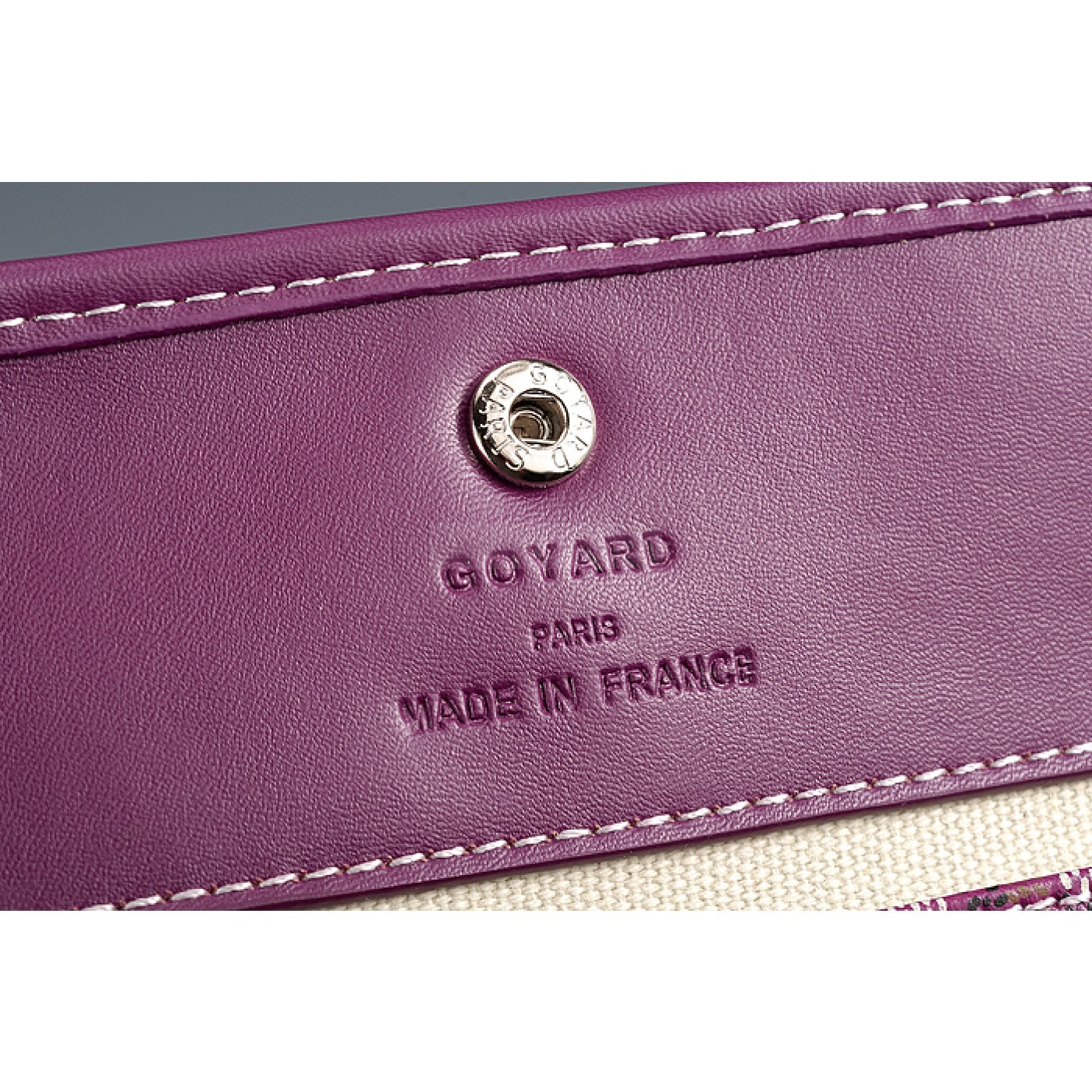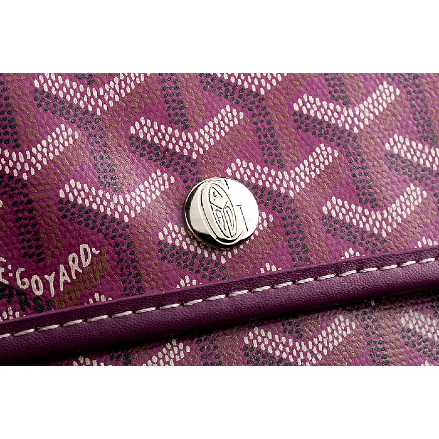 Interior Textile lining with Goyard Paris Made in France heat embossed on leather trim inside the coin purse