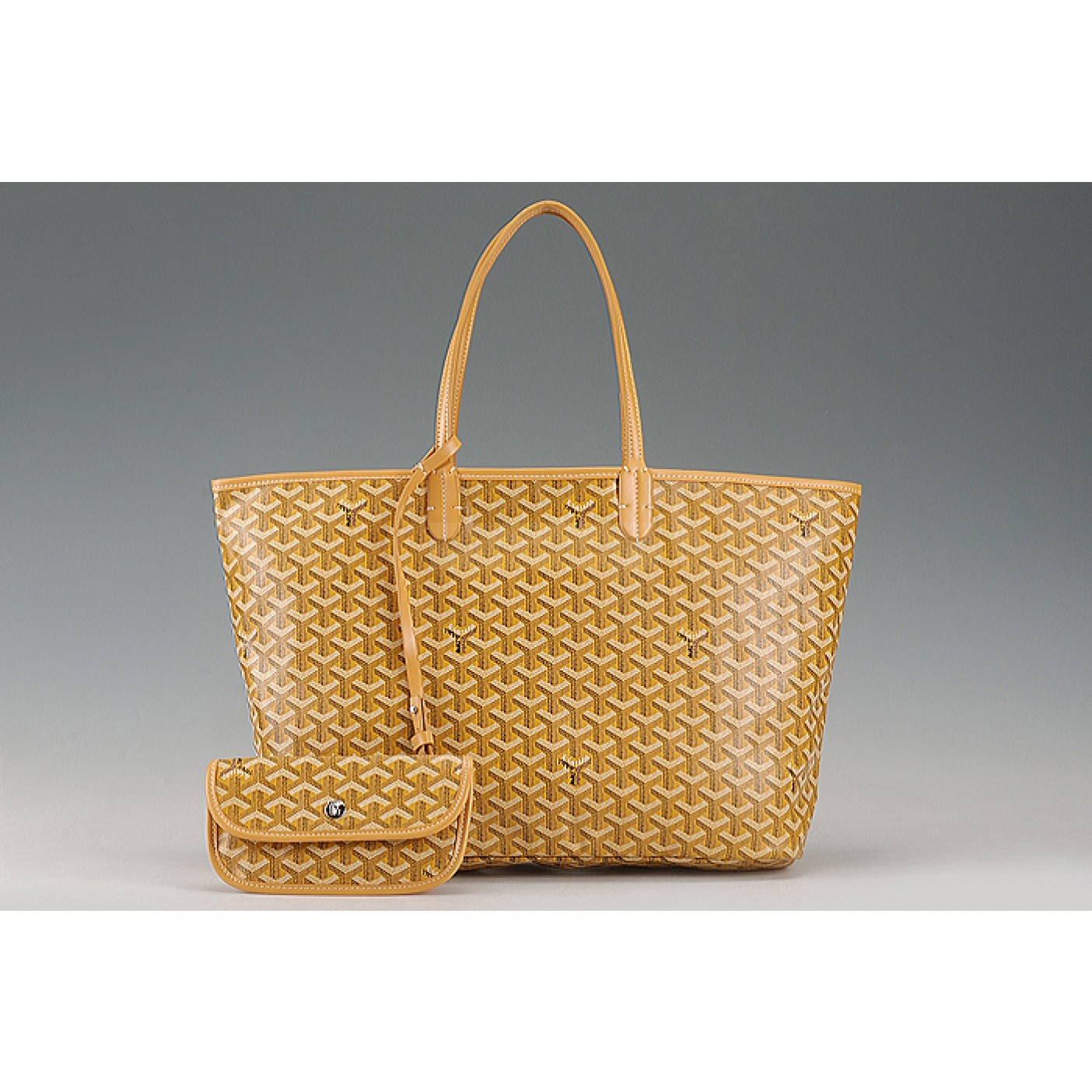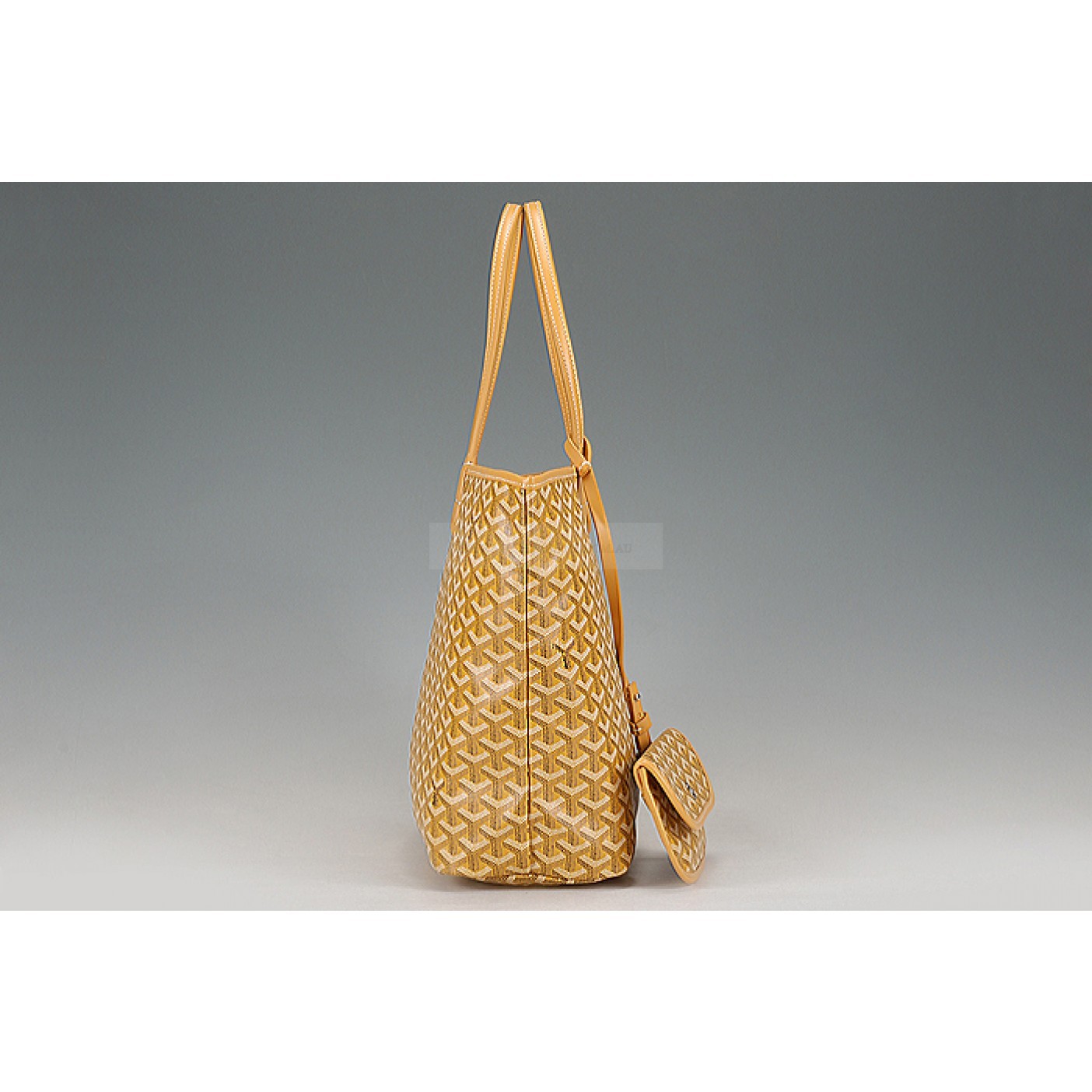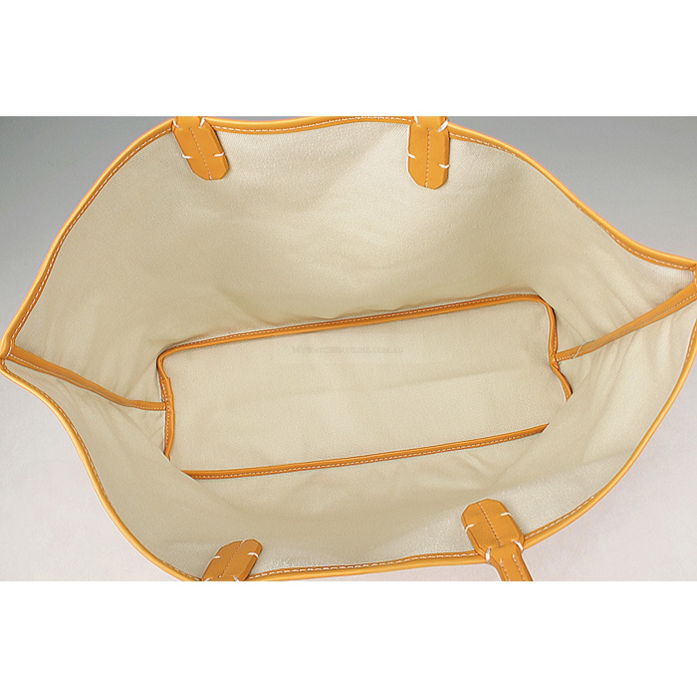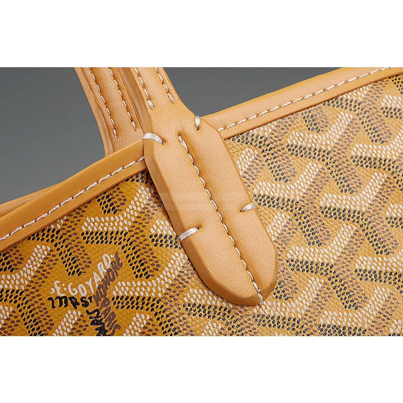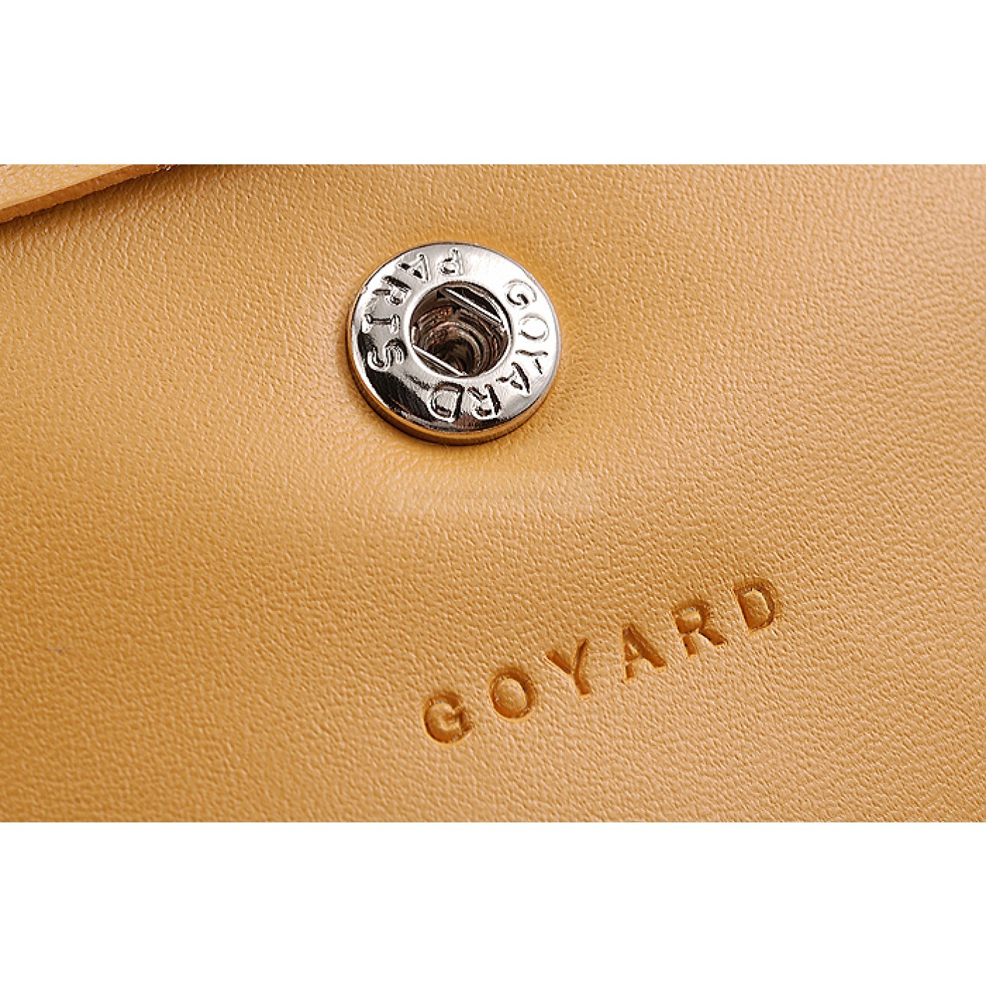 Interior Textile lining in main bag exterior and Goyard and product code heat embossed leather lining in coin purse