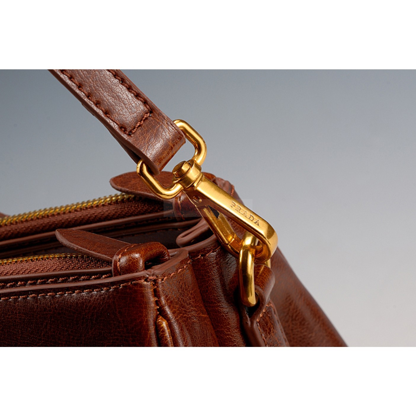 Description An elegant brown color and a stylish design make this Prada satchel a great addition to the wardrobe