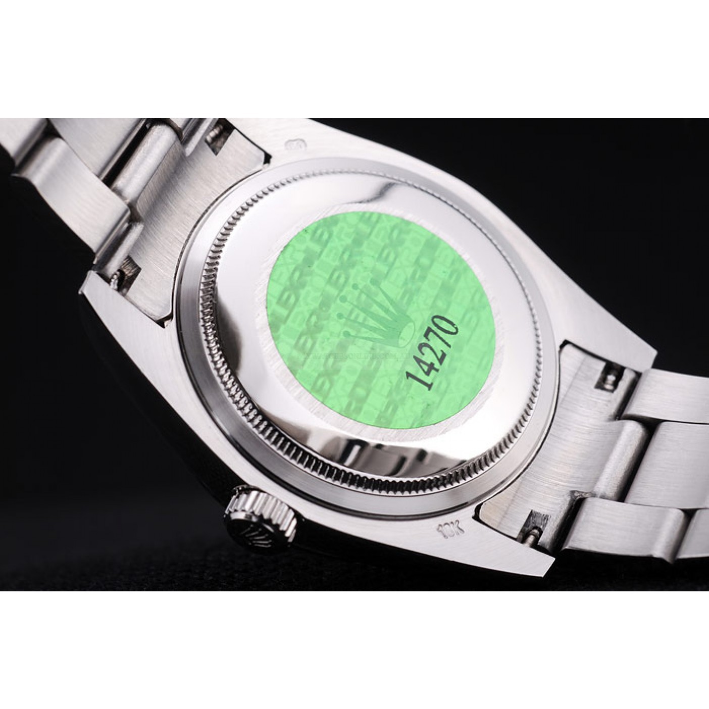 Back Stainless steel snap-in back with green Rolex logo authenticity stamp