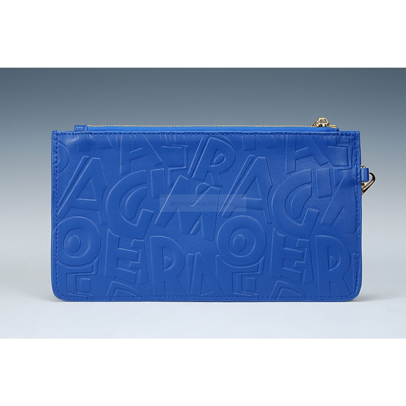 Salvatore Ferragamo Embossed Blue Leather Wristlet 18927371