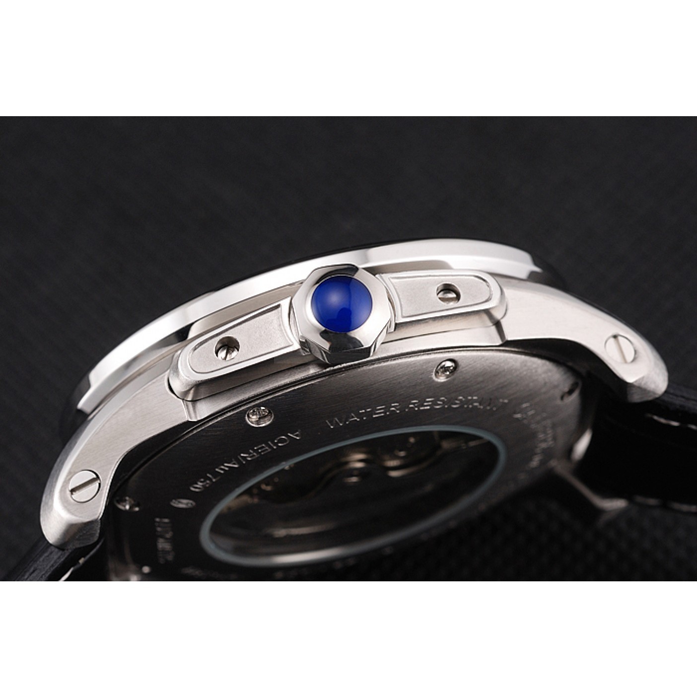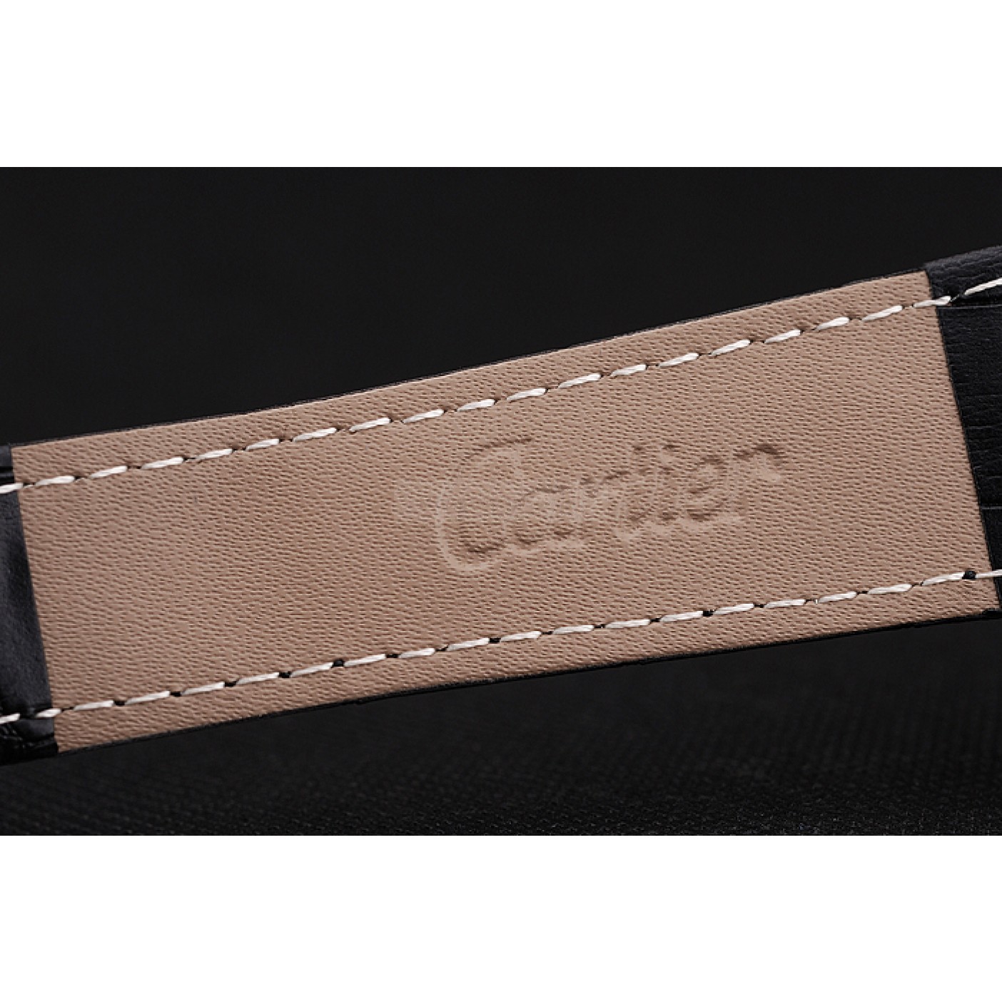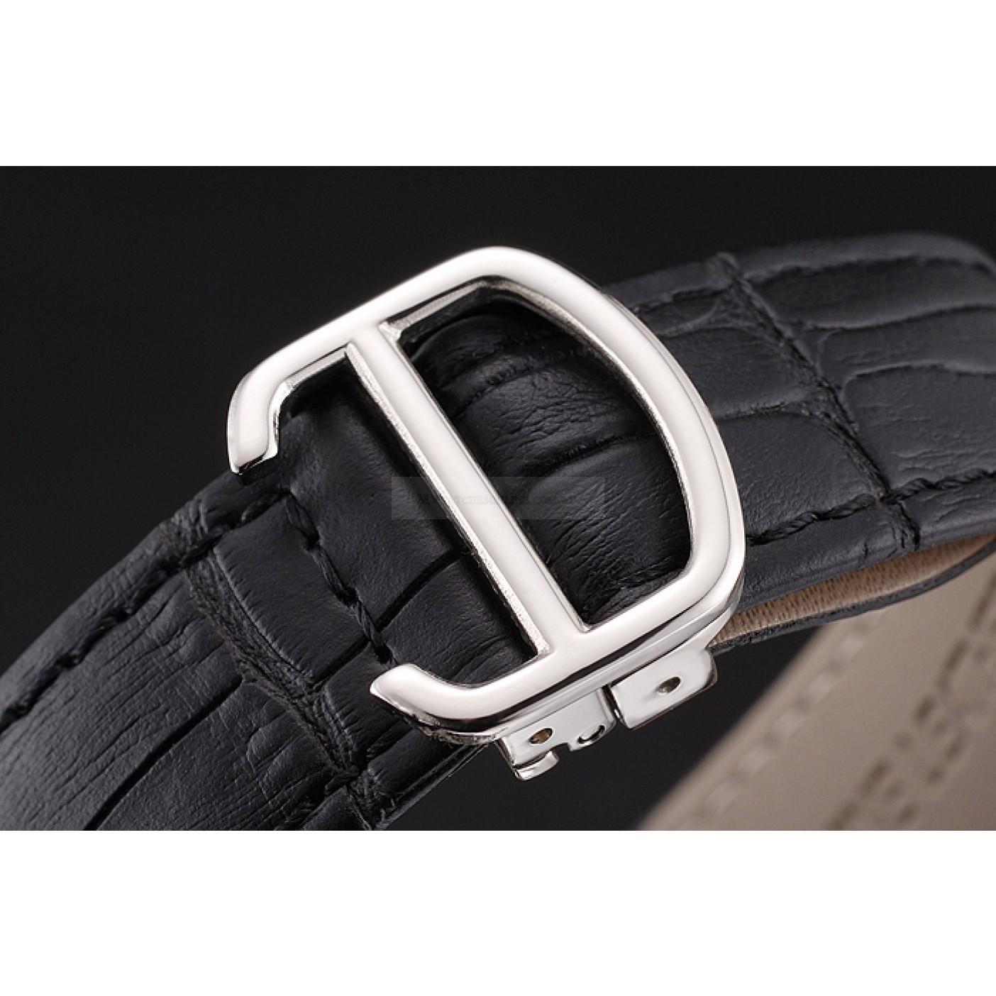 Cartier Calibre De Cartier Small Seconds Black And White Dial Stainless Steel Case Black Leather Strap