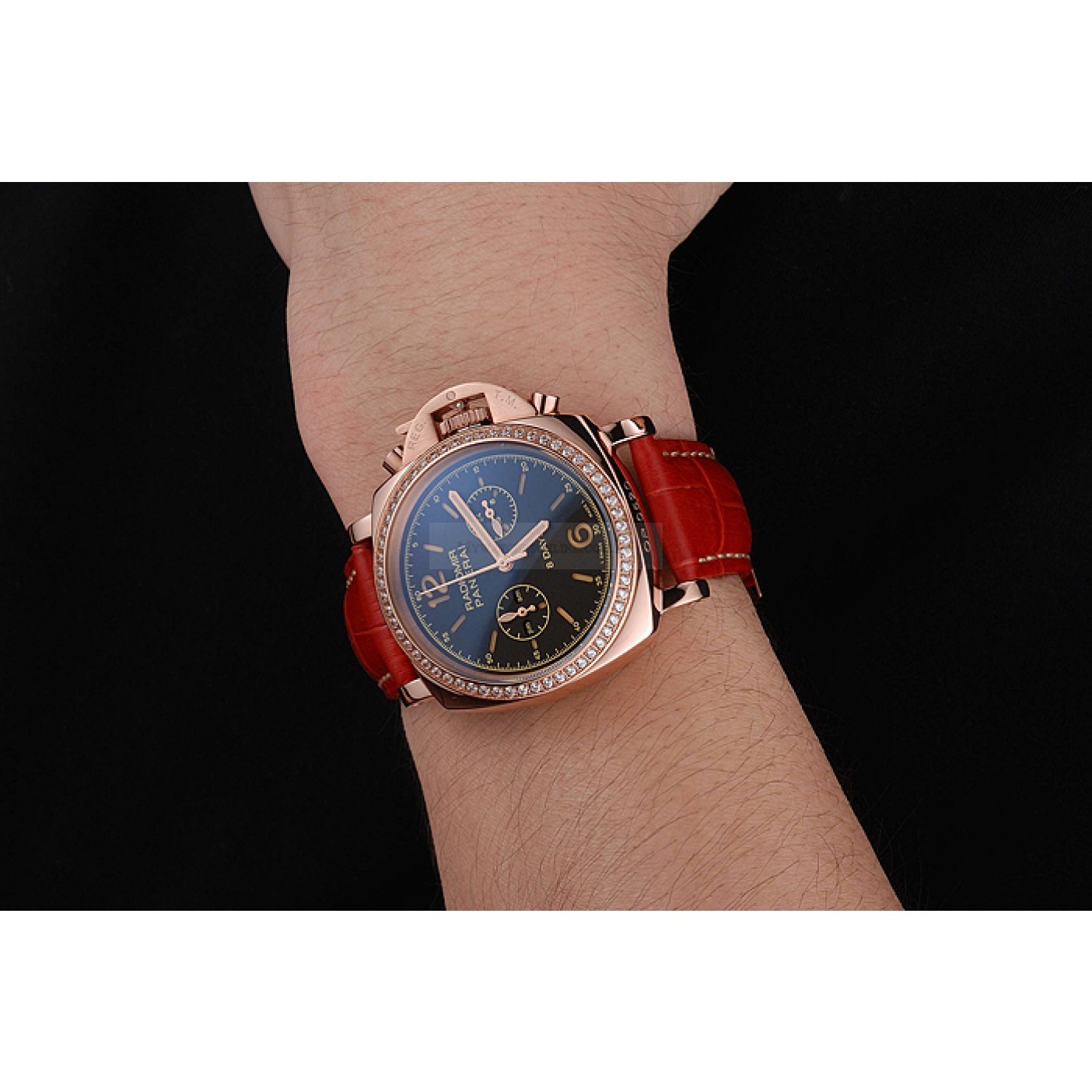 Panerai Radiomir 8 Days Chronograph Black Dial Diamond Bezel Rose Gold Case Red Leather Strap 1453797