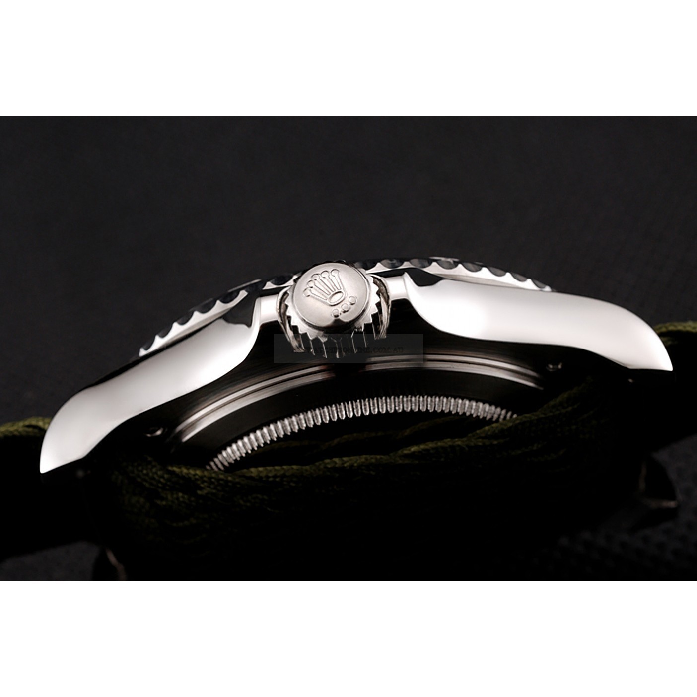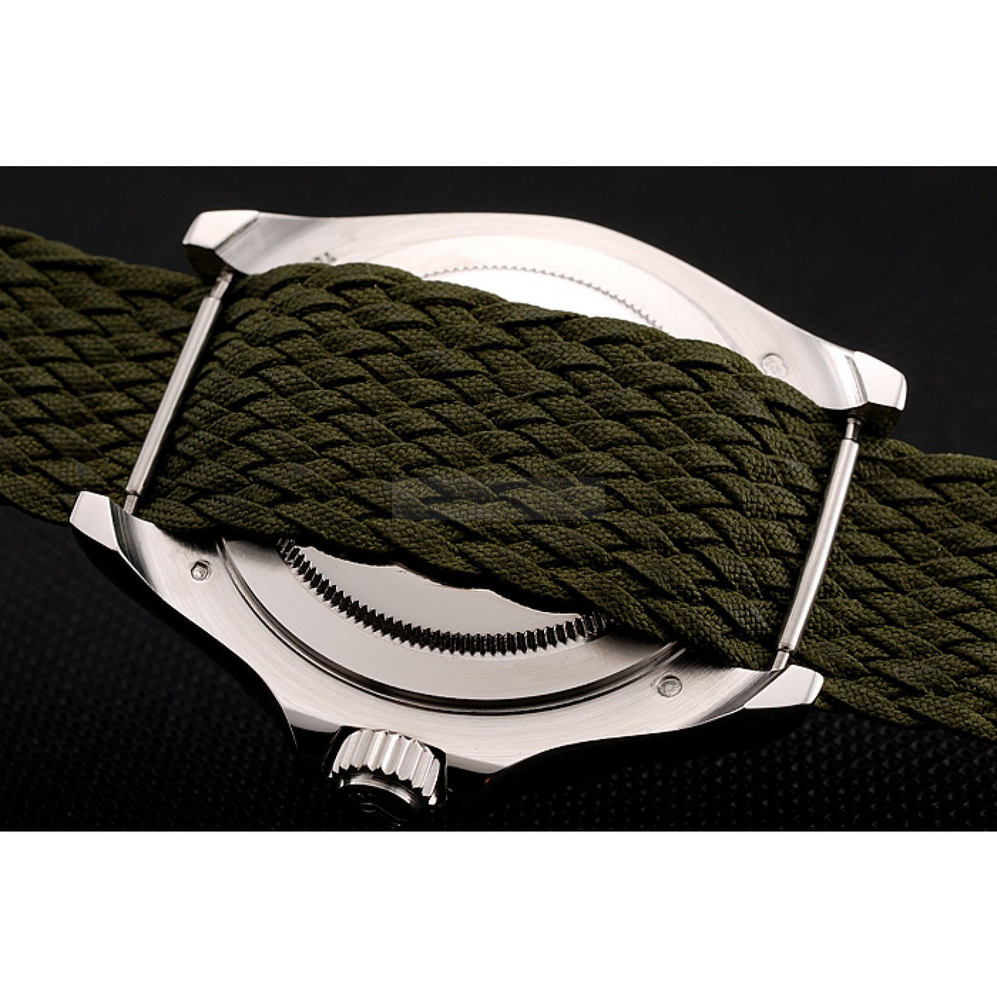 Bracelet Green fabric strap with Rolex and logo inscribed polished stainless steel hook-buckle clasp