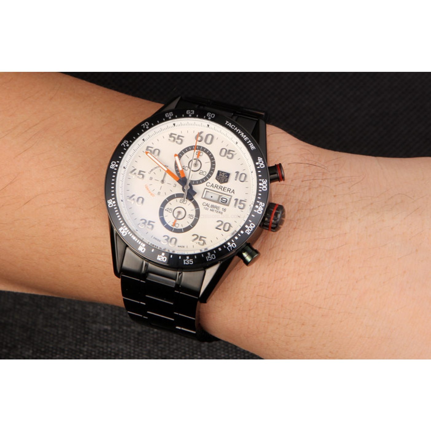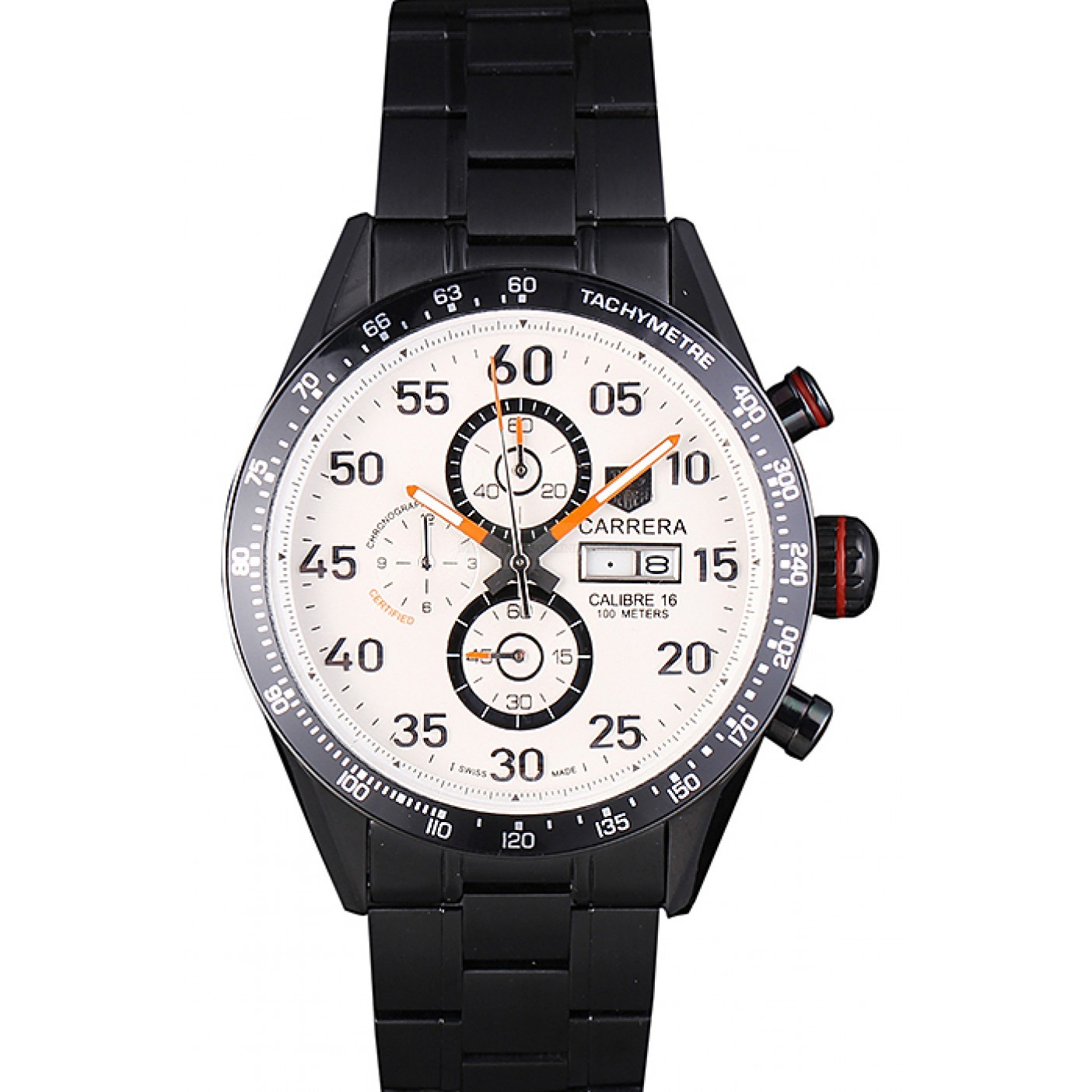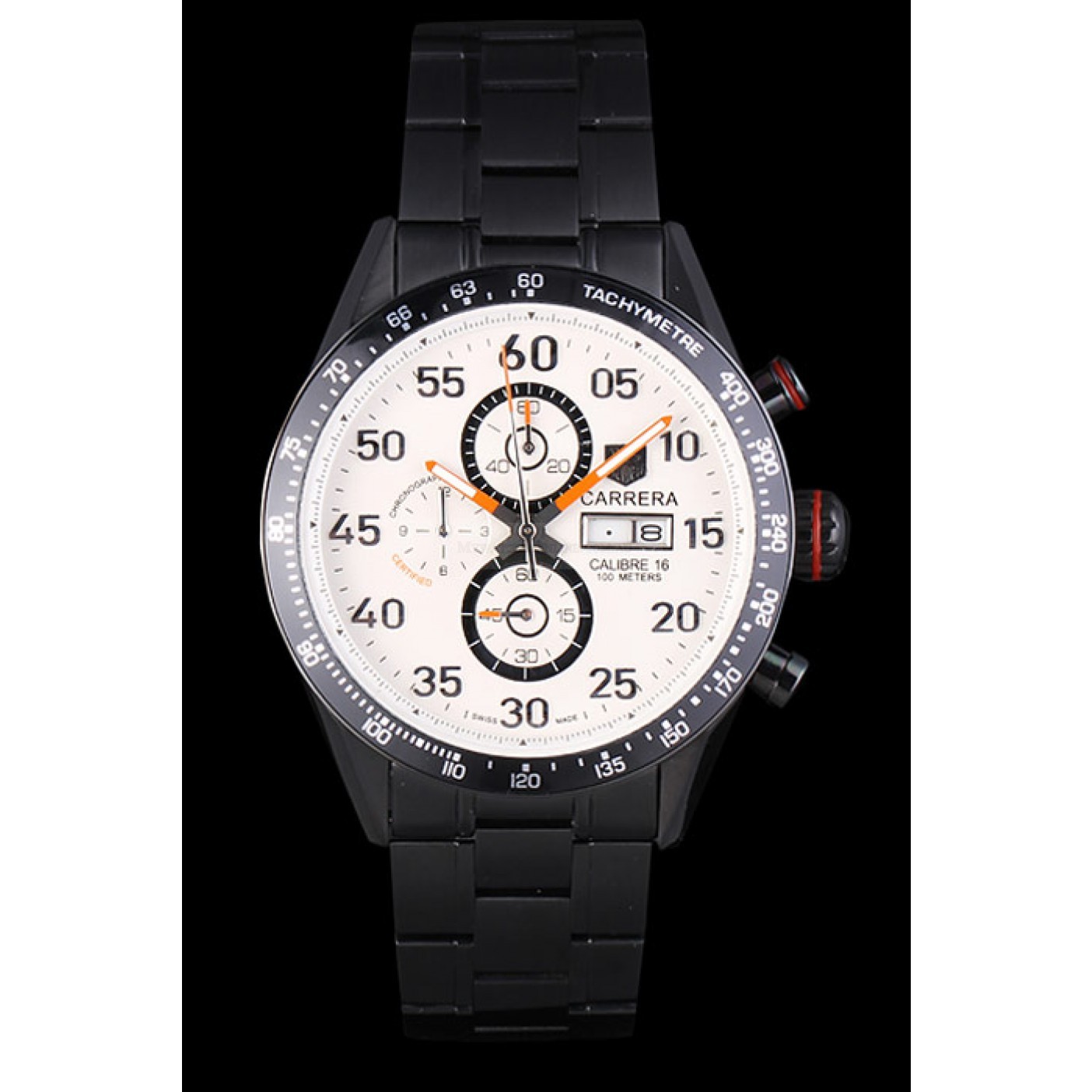 Tag Heuer Carrera Ion Plated Stainless Steel Bracelet White Dial 801444
