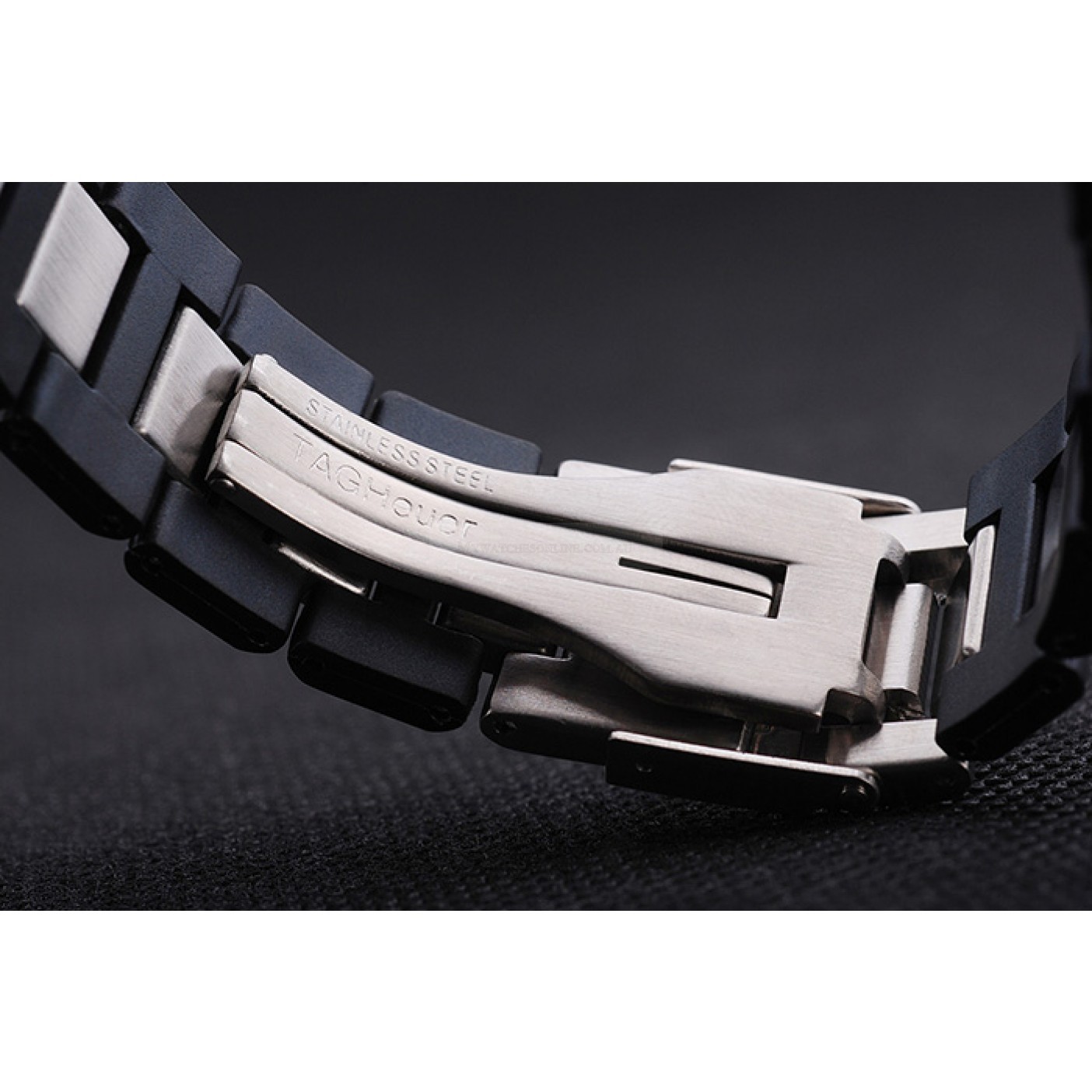 Crown Polished stainless steel cutwork crown with Tag Heuer logo plus two additional crowns on either side and one on the opposite top corner