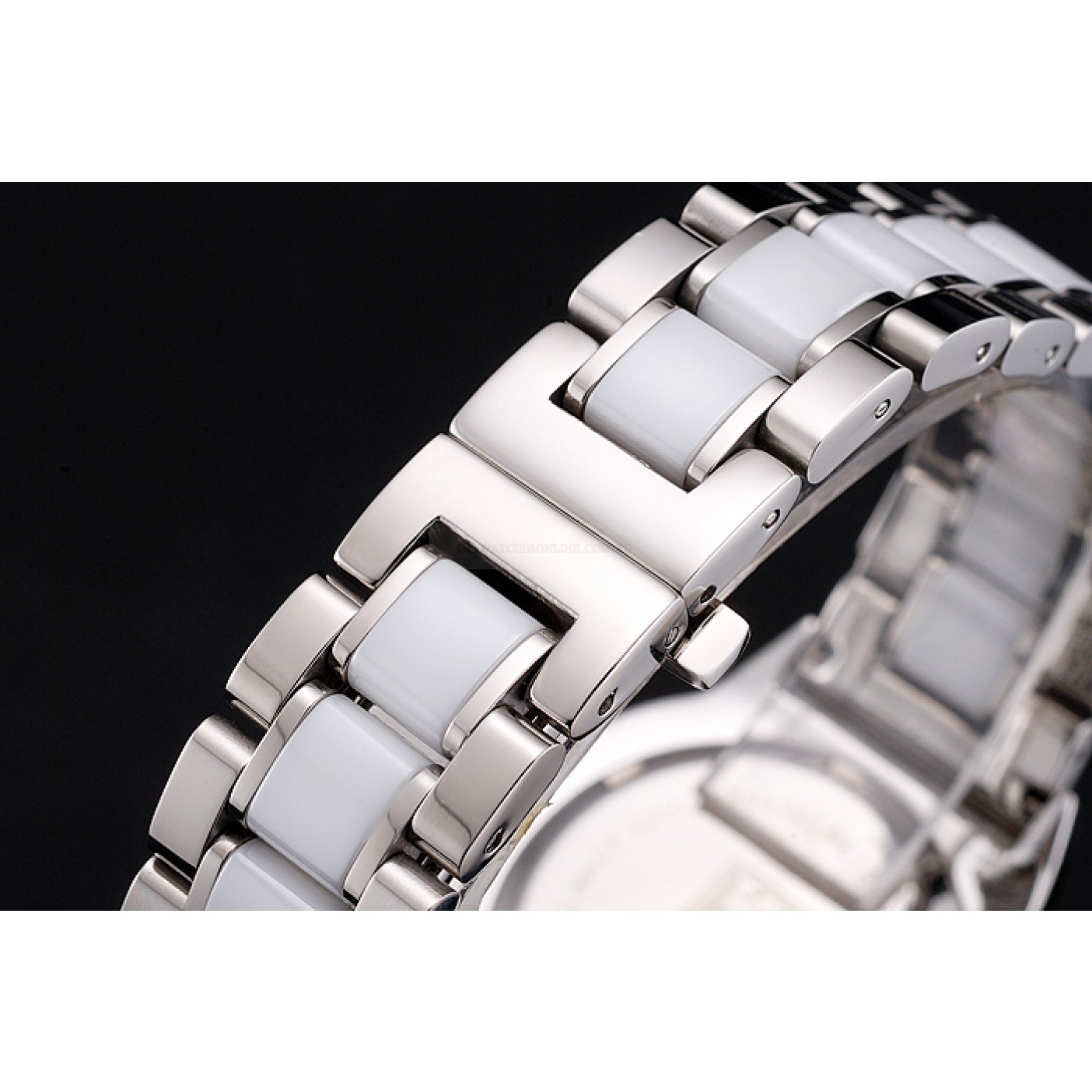 Bezel White ceramic bezel with silver Arabic numeral minute markers