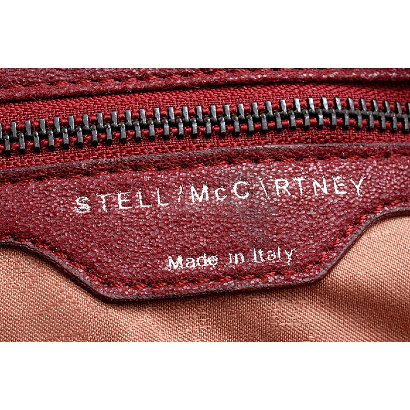Interior Textile lining with Stella McCartney Made in Italy heat embossed zipper leather trim