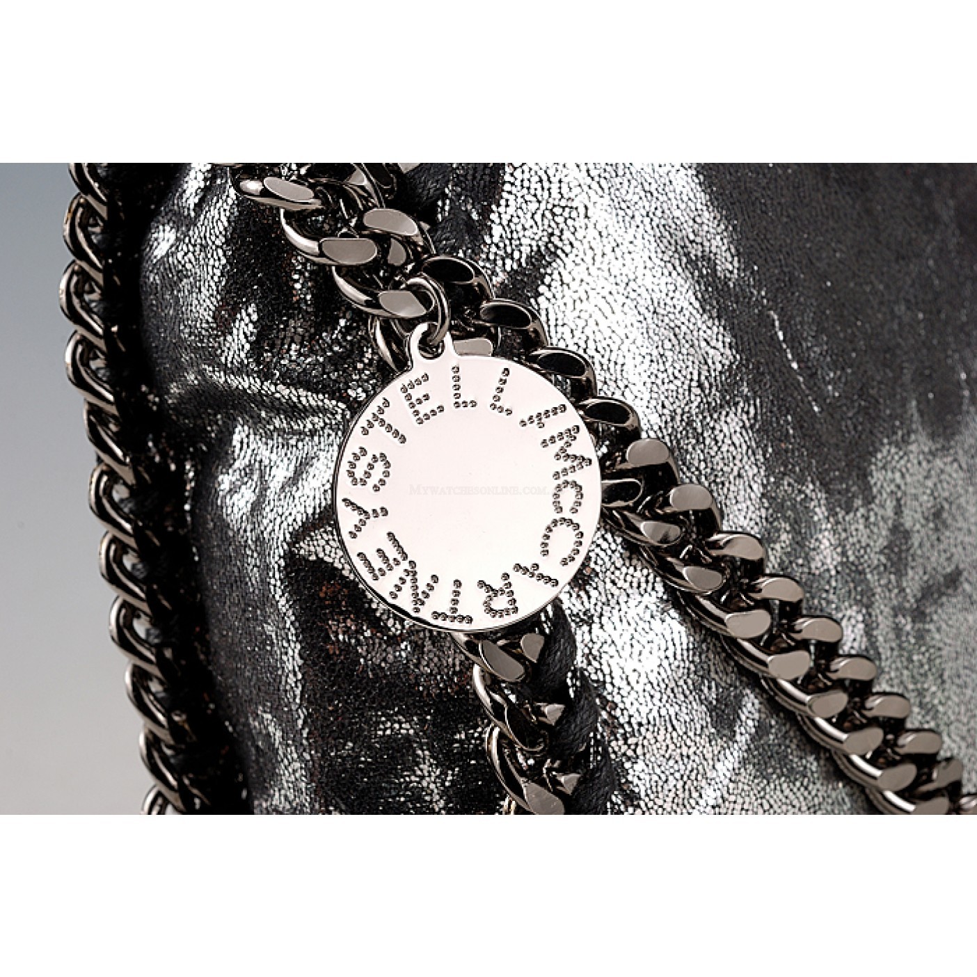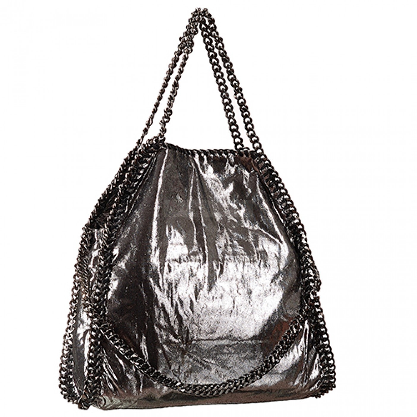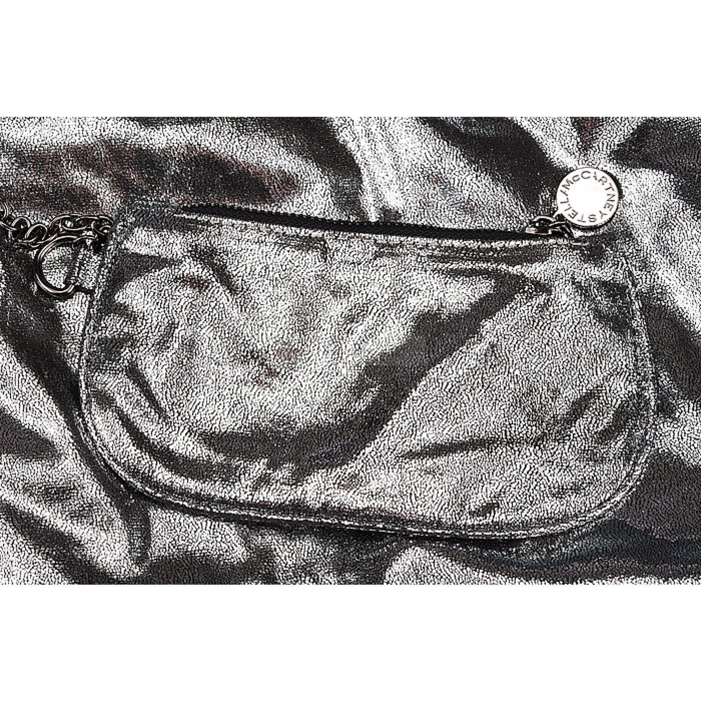 Description The glittery finish of silver leather gives this Stella McCartney handbag a stunning look