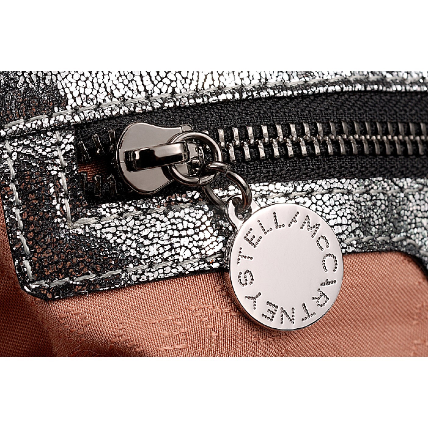 Interior Textile lining with Stella McCartney Made in Italy heat embossed zipper leather trim