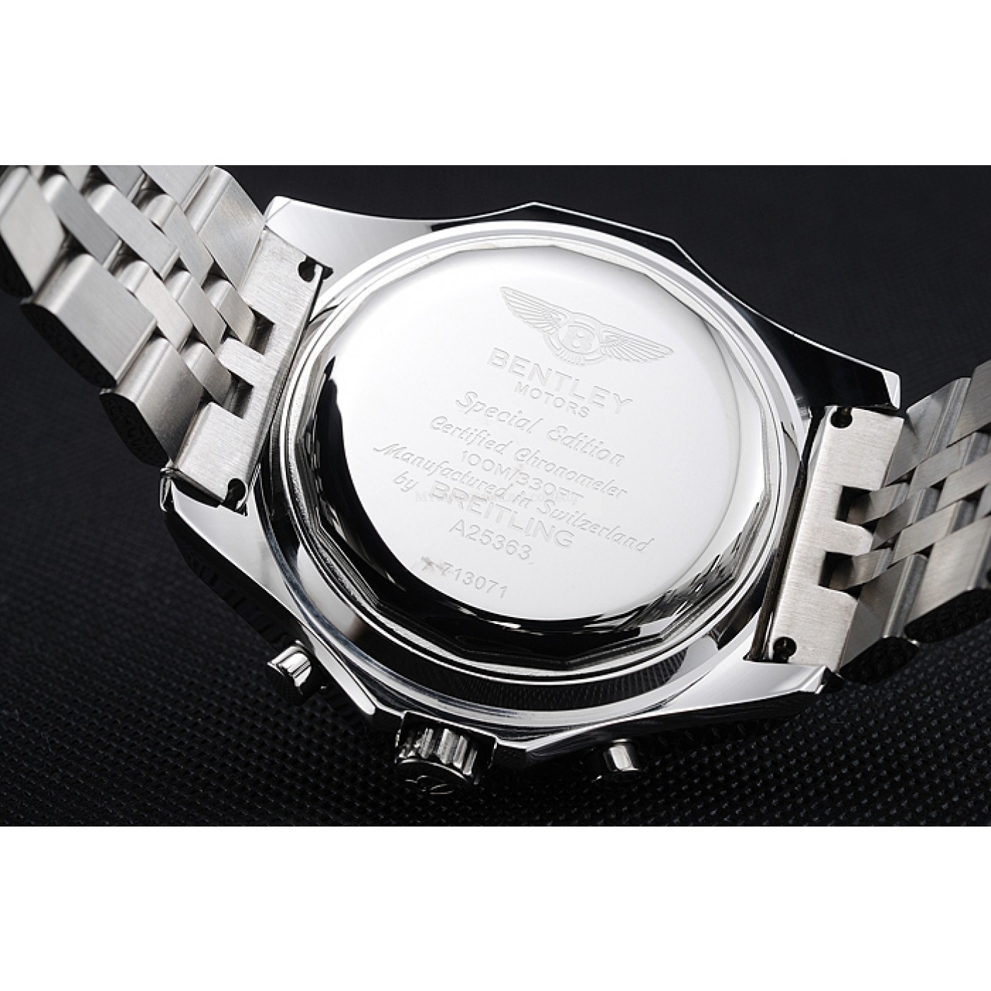 Back Polished stainless steel snap-in back with Bentley Motors Special Edition Breitling inscriptions