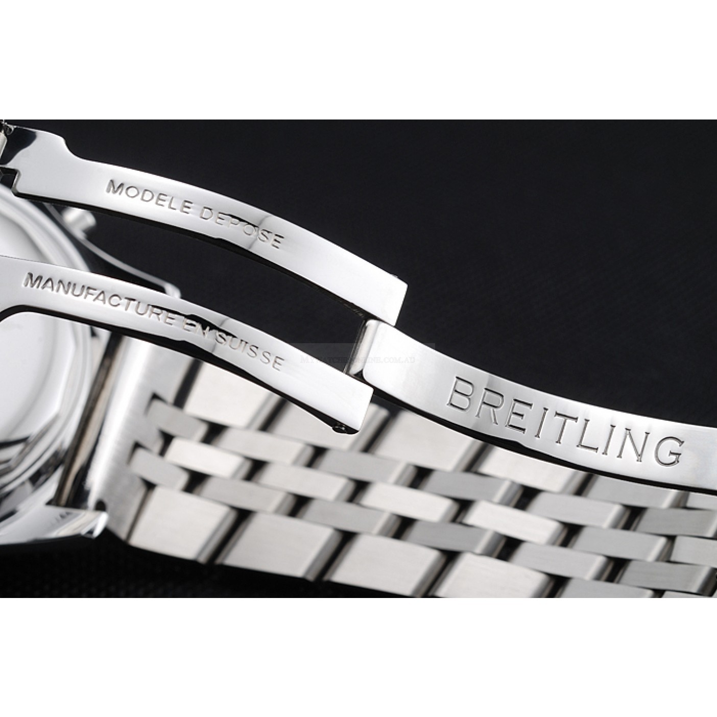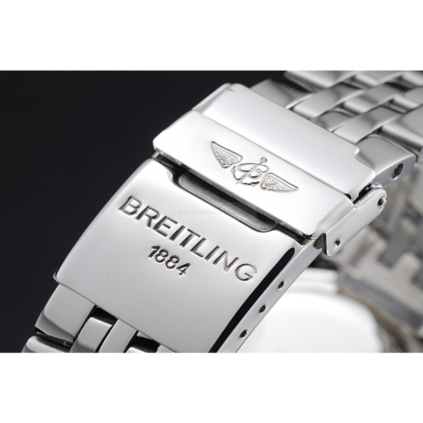 Bracelet Polished stainless steel link bracelet with Breitling 1884 and logo engraved push-release fold-in clasp