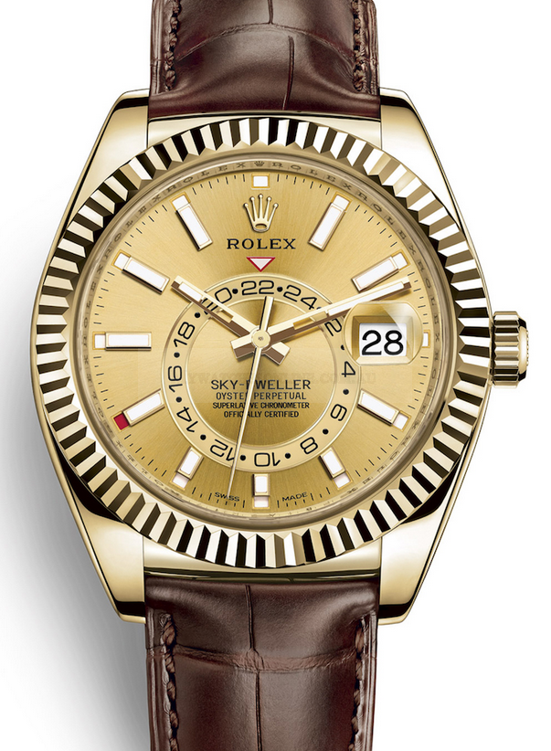 AAA Replica Rolex Sky-Dweller GMT 42mm Gold Dial Mens Watch 326138-0006 Description: