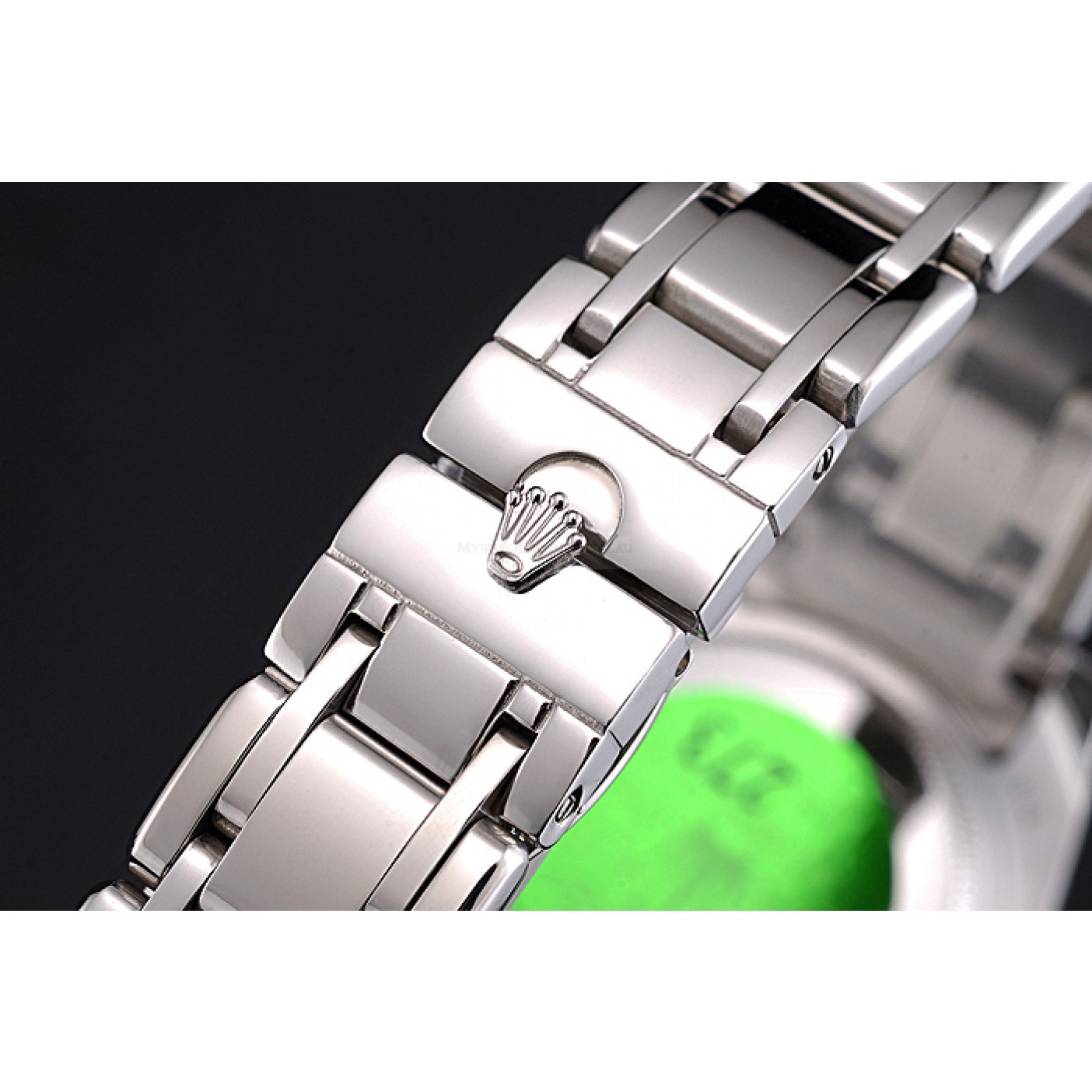 Back Polished stainless steel snap-in back with Rolex green hologram sticker