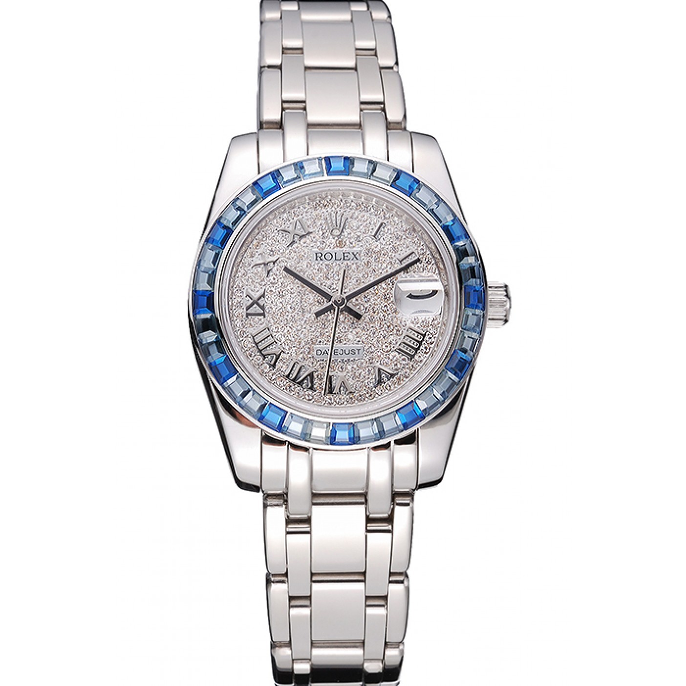 Rolex Datejust Diamond Dial Blue Jewels Bezel Stainless Steel Case And Bracelet  622834