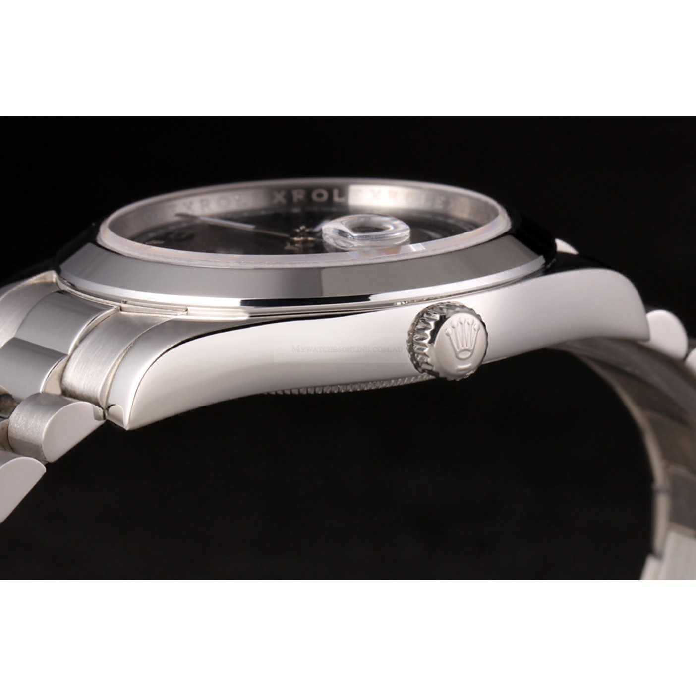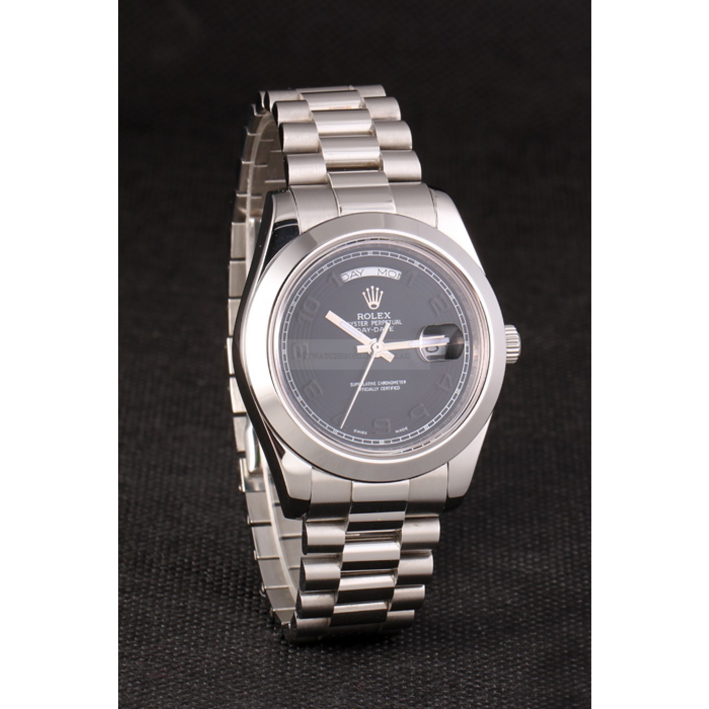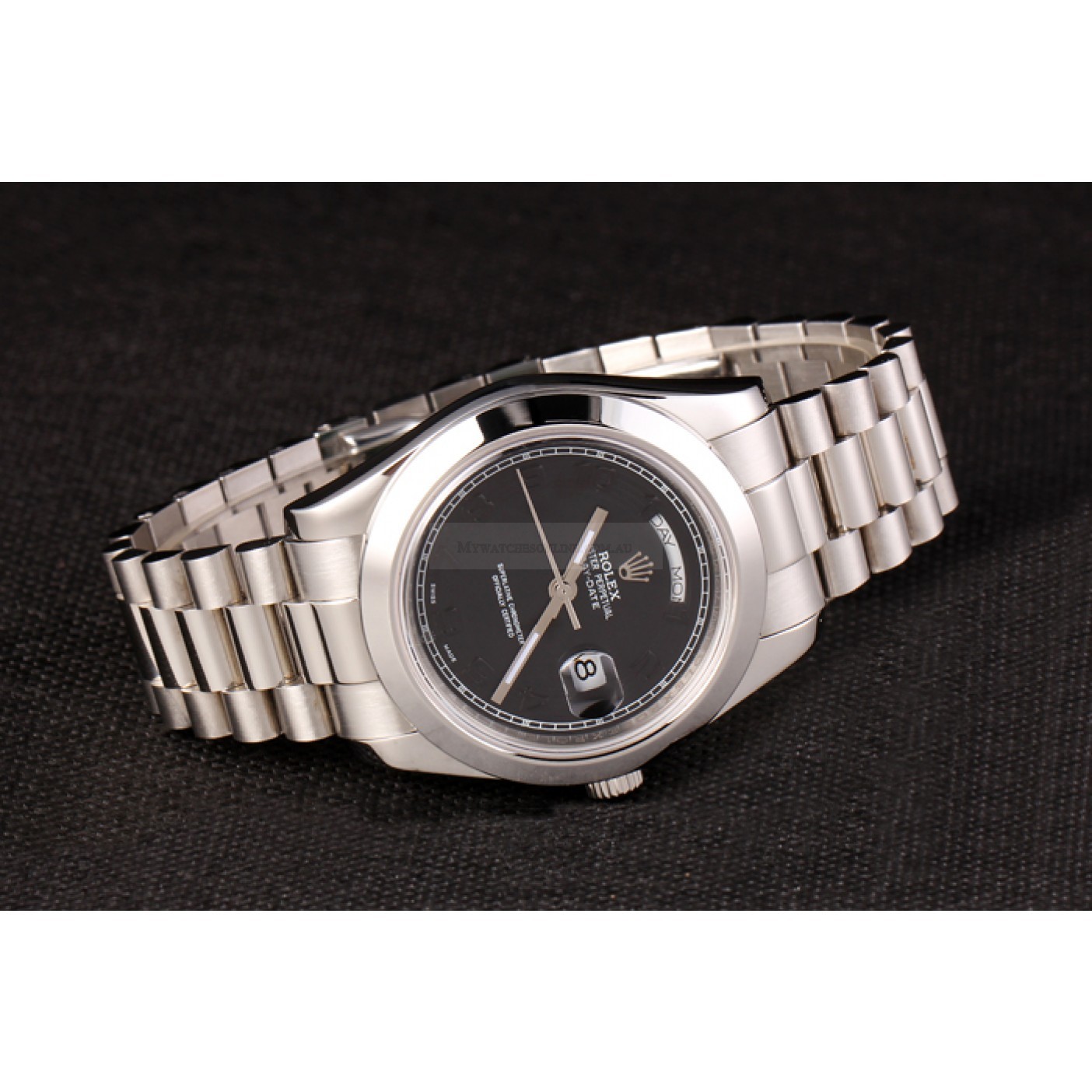 Swiss Rolex Daydate Stainless Steel Bracelet Black Dial 80294