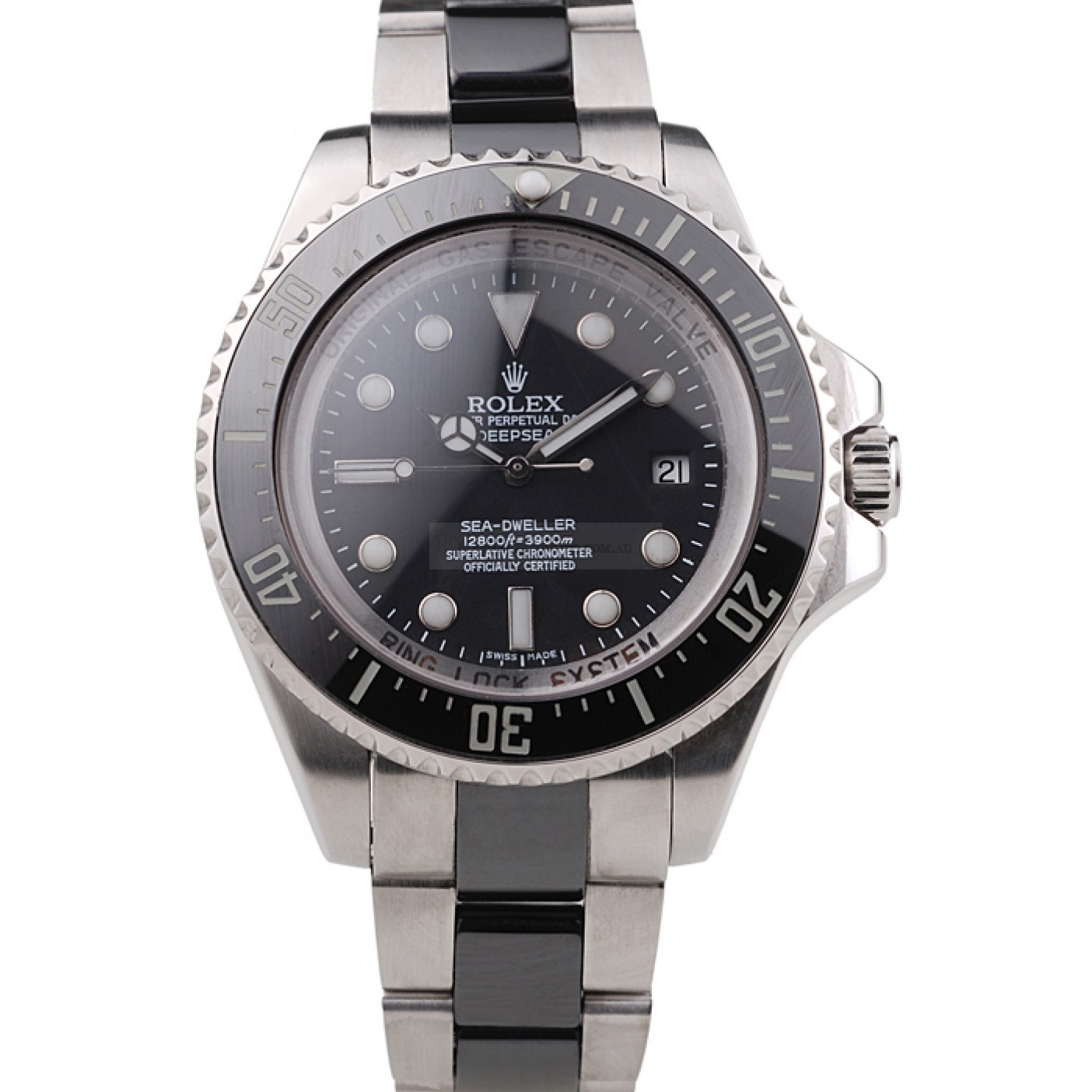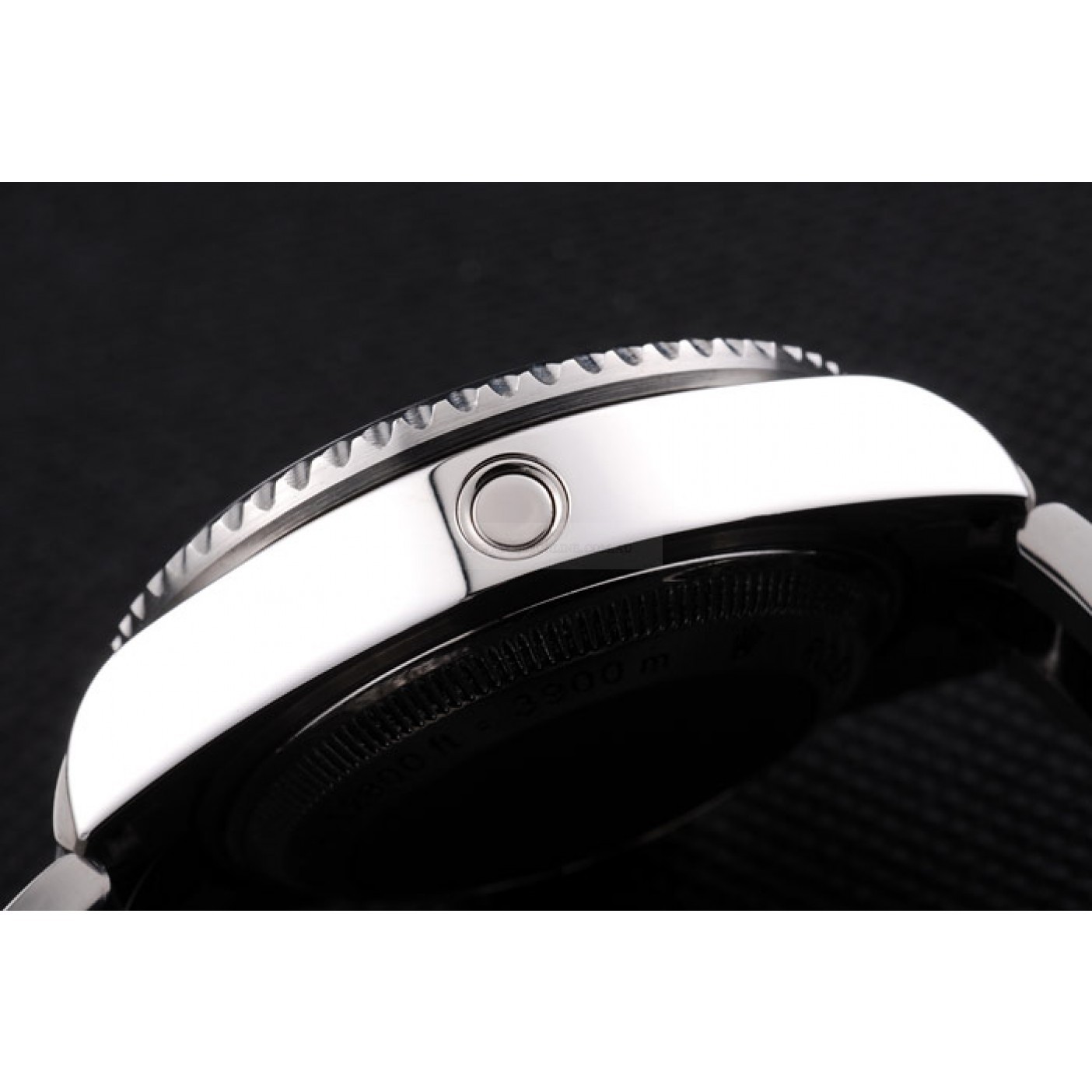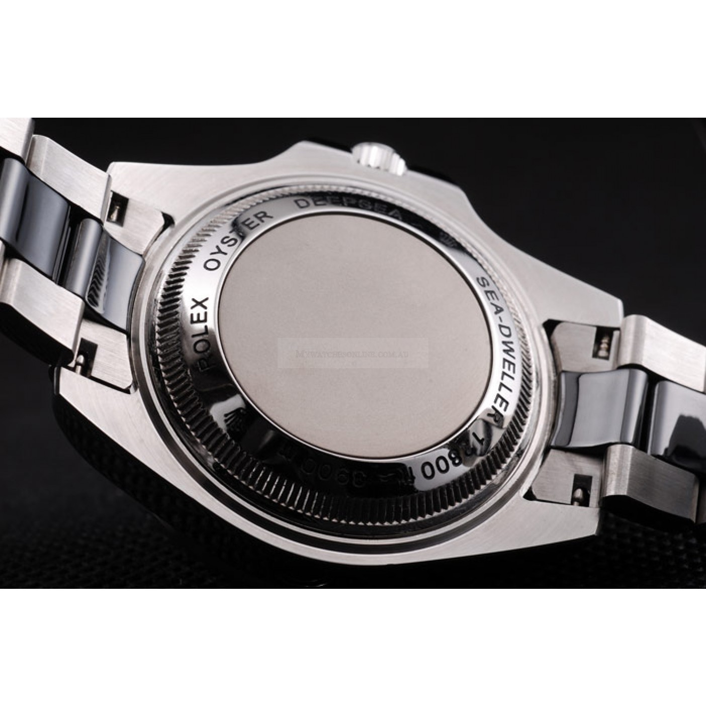 Back Polished stainless steel snap in back with Rolex Oyster Deepsea engravings