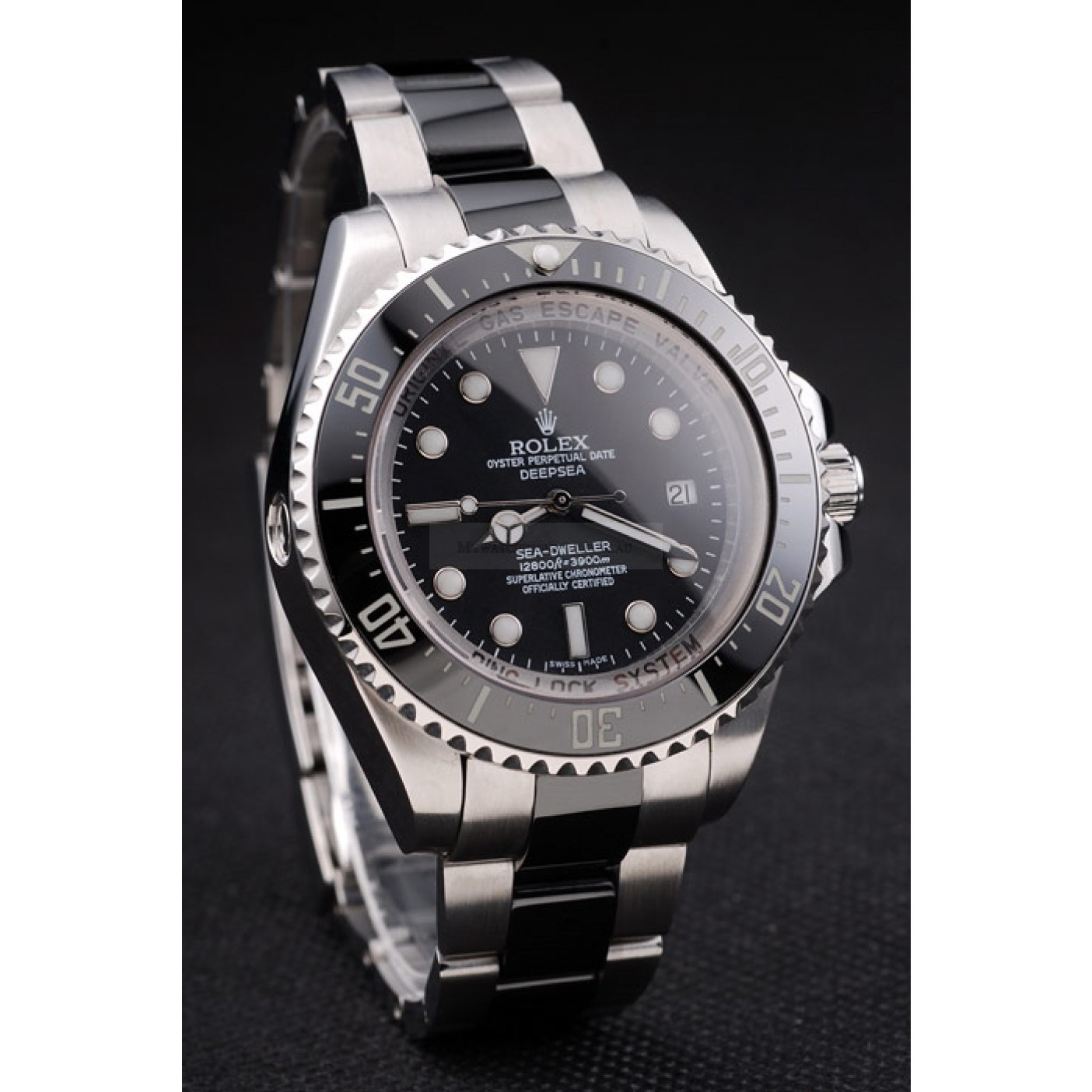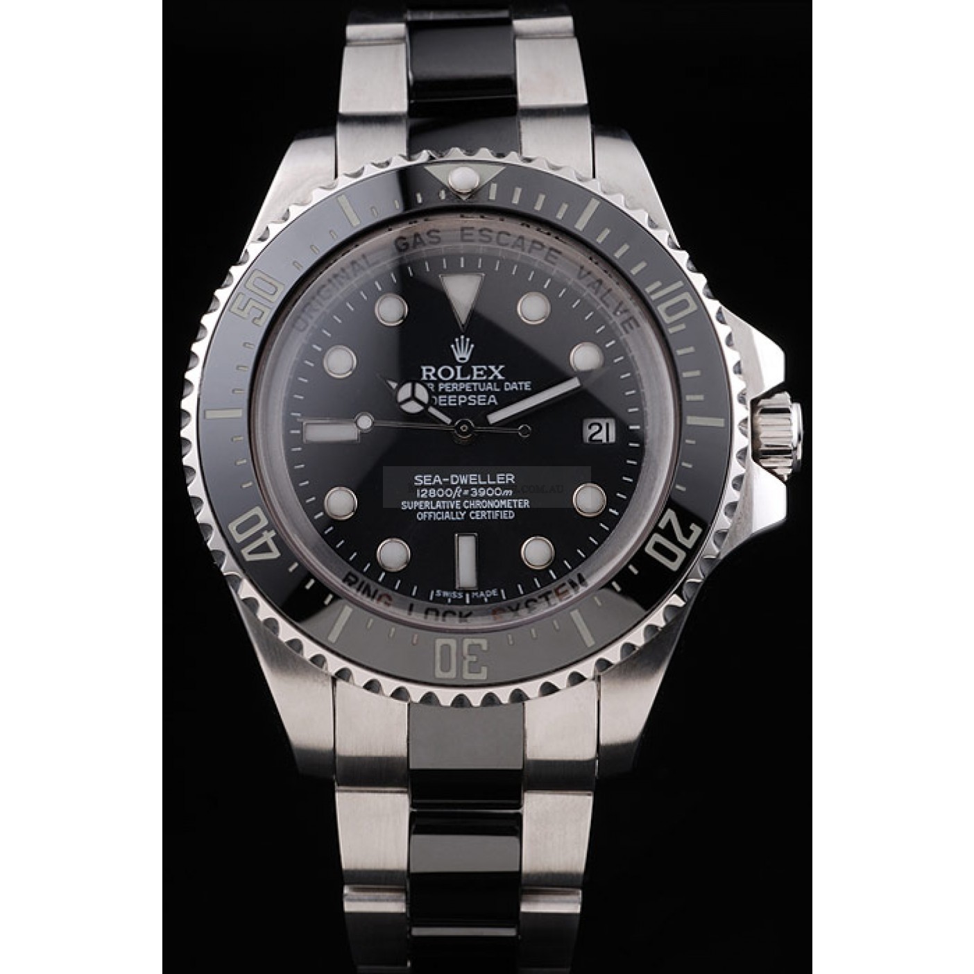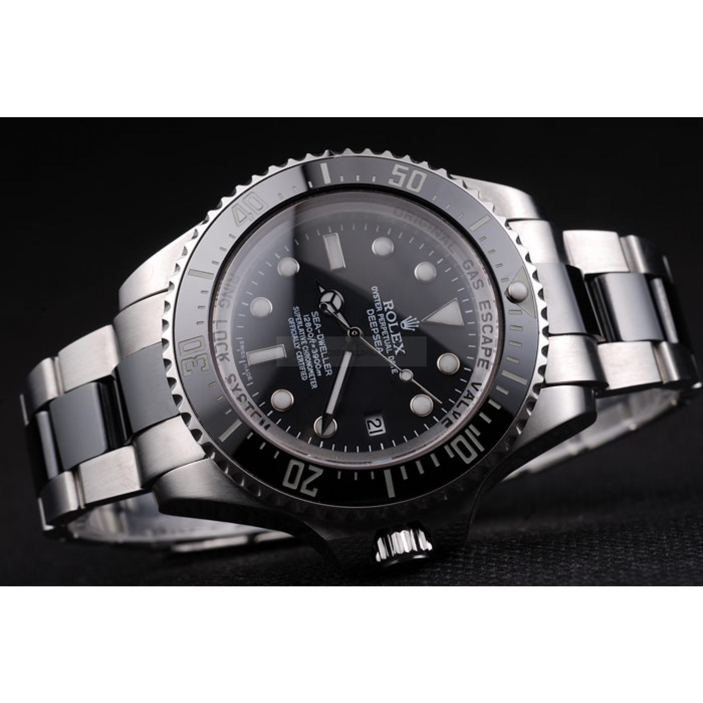 Back Polished stainless steel snap in back with Rolex Oyster Deepsea engravings