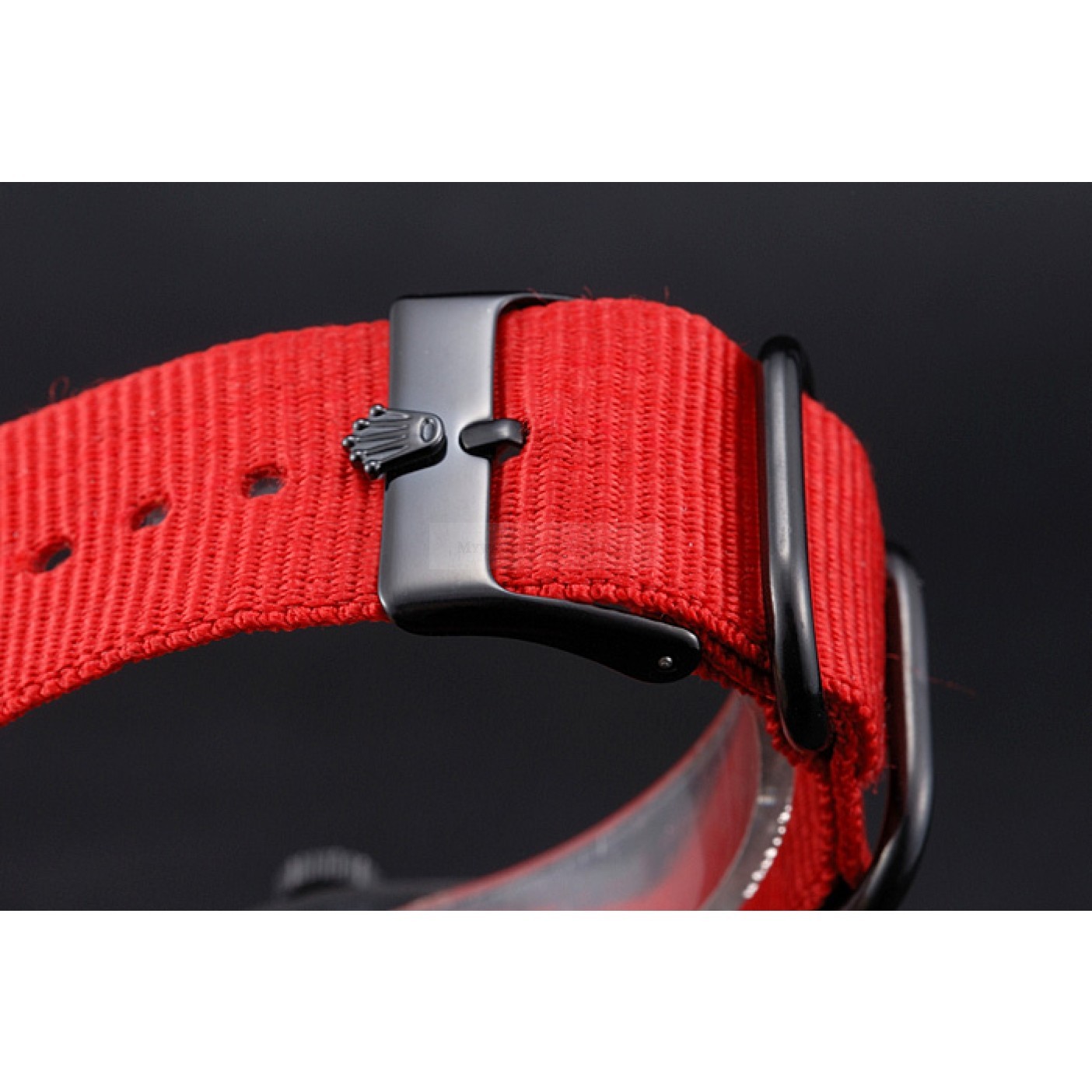 Bracelet Red nylon strap with cutwork Rolex logo ion-plated hook-buckle clasp