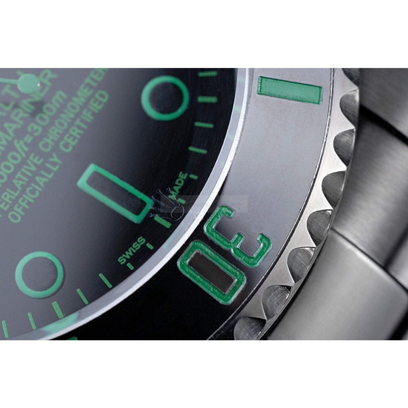 Bezel Ion-plated cutwork bezel with ceramic top green minute markers