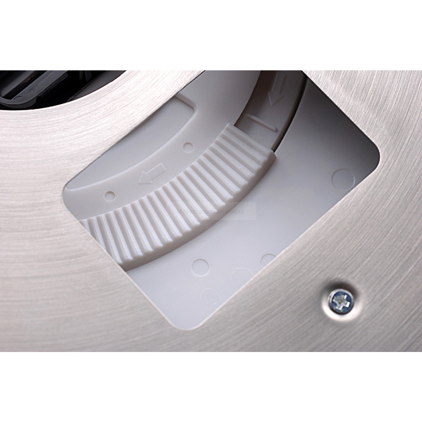 Back Screwed down brushed stainless steel back with battery unit in the center and wall hook