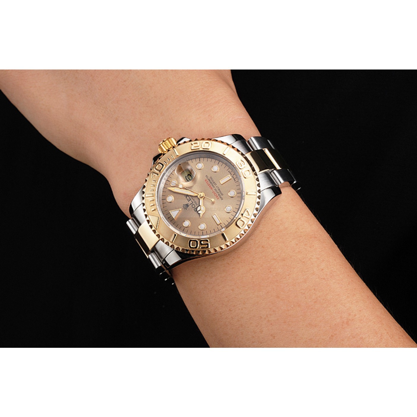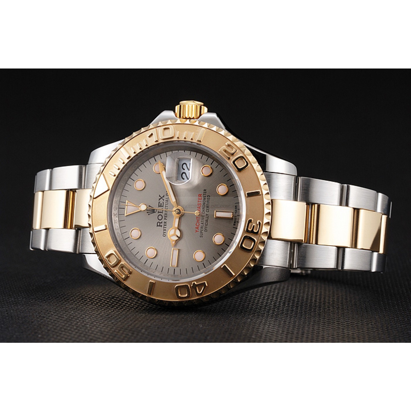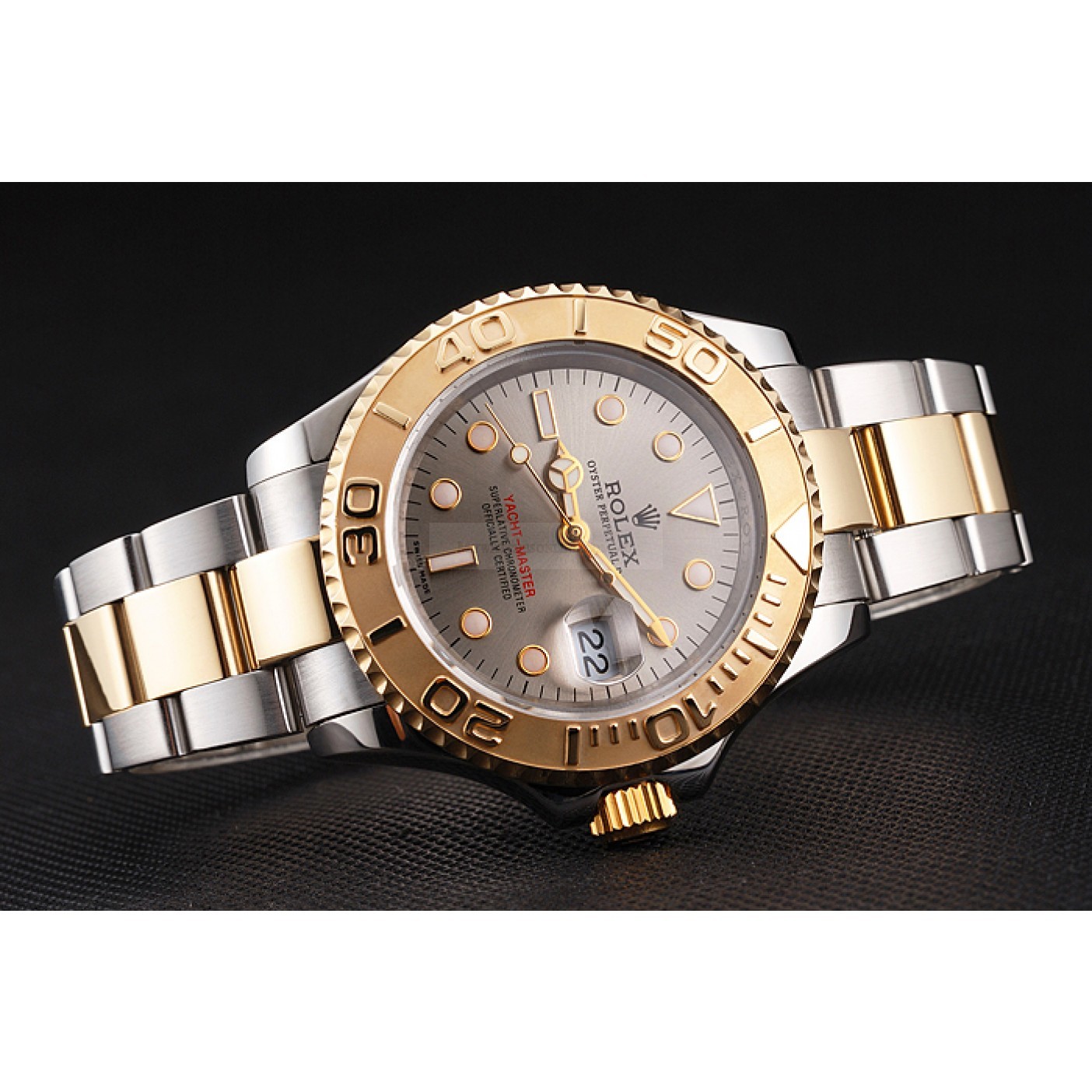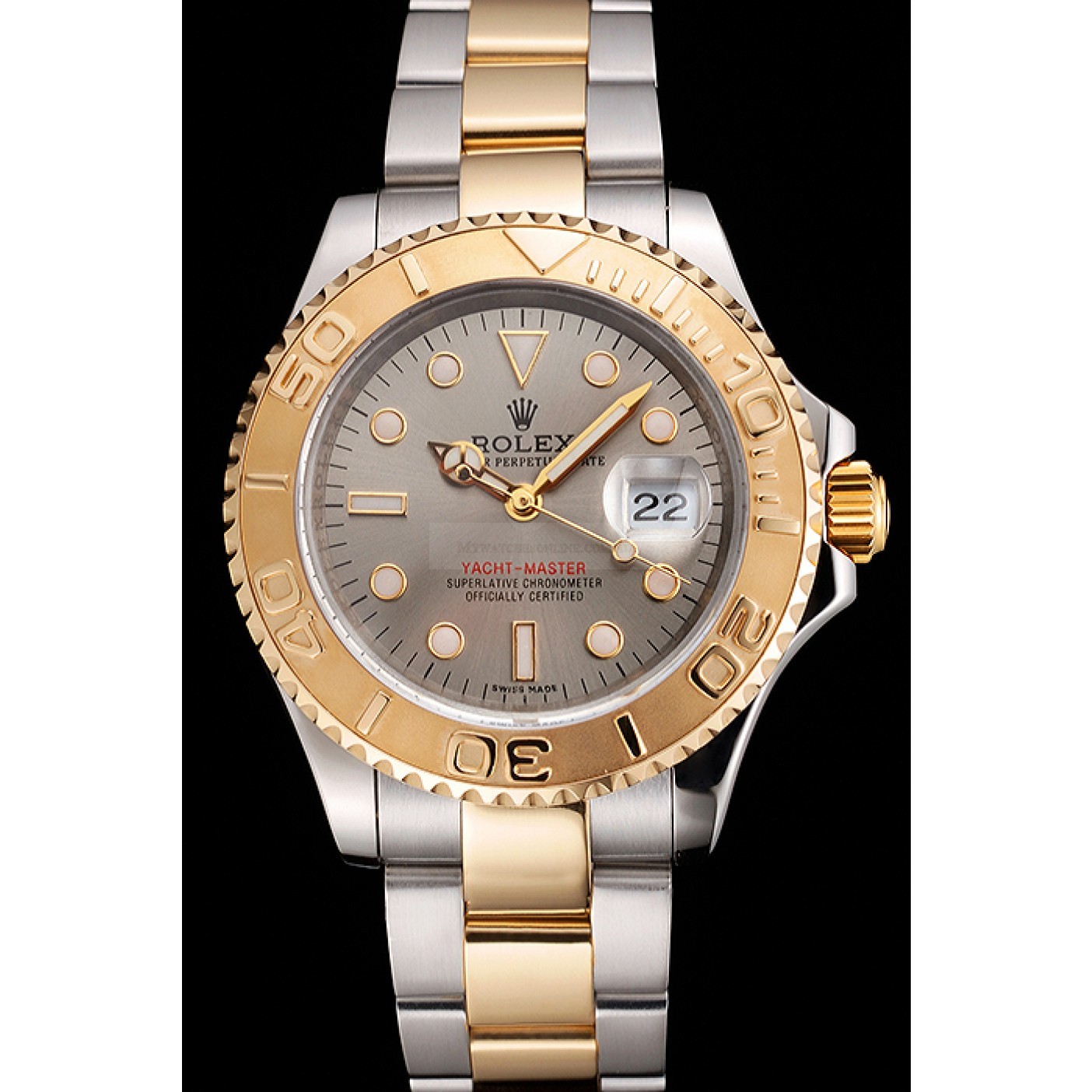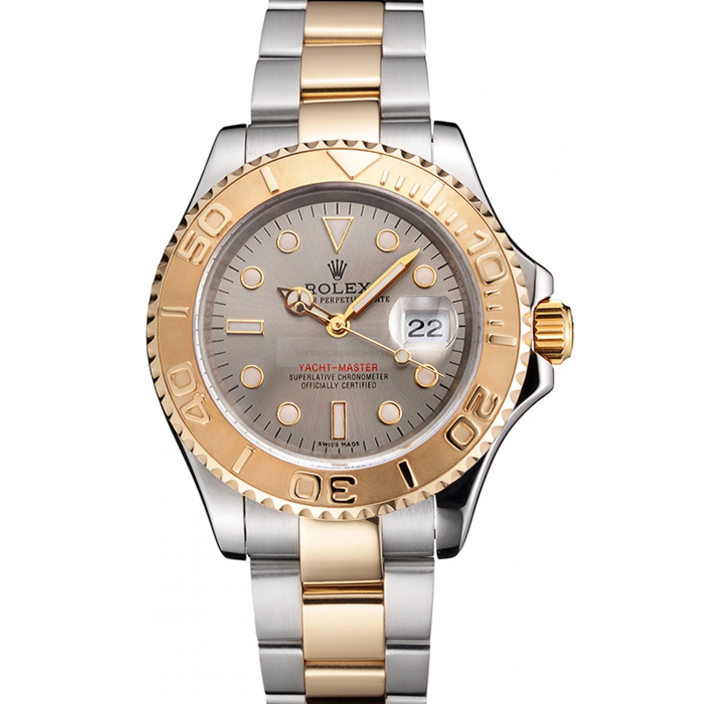 Swiss Rolex Yacht-Master Gray Dial Gold Bezel Stainless Steel Case Two Tone Dial
